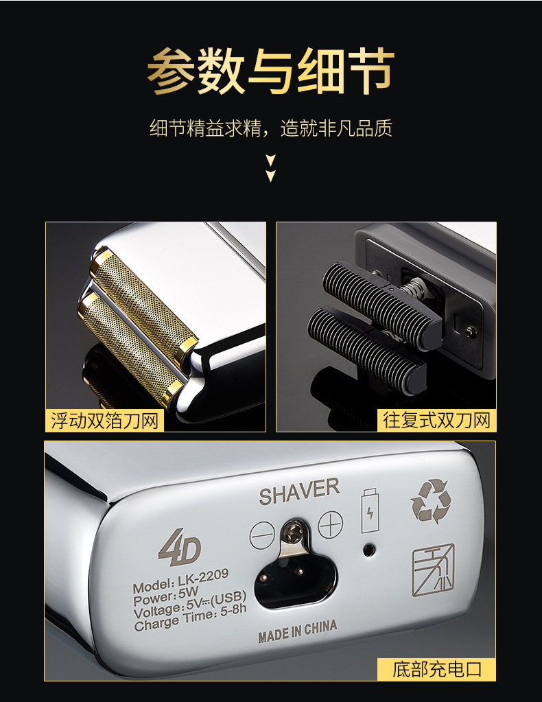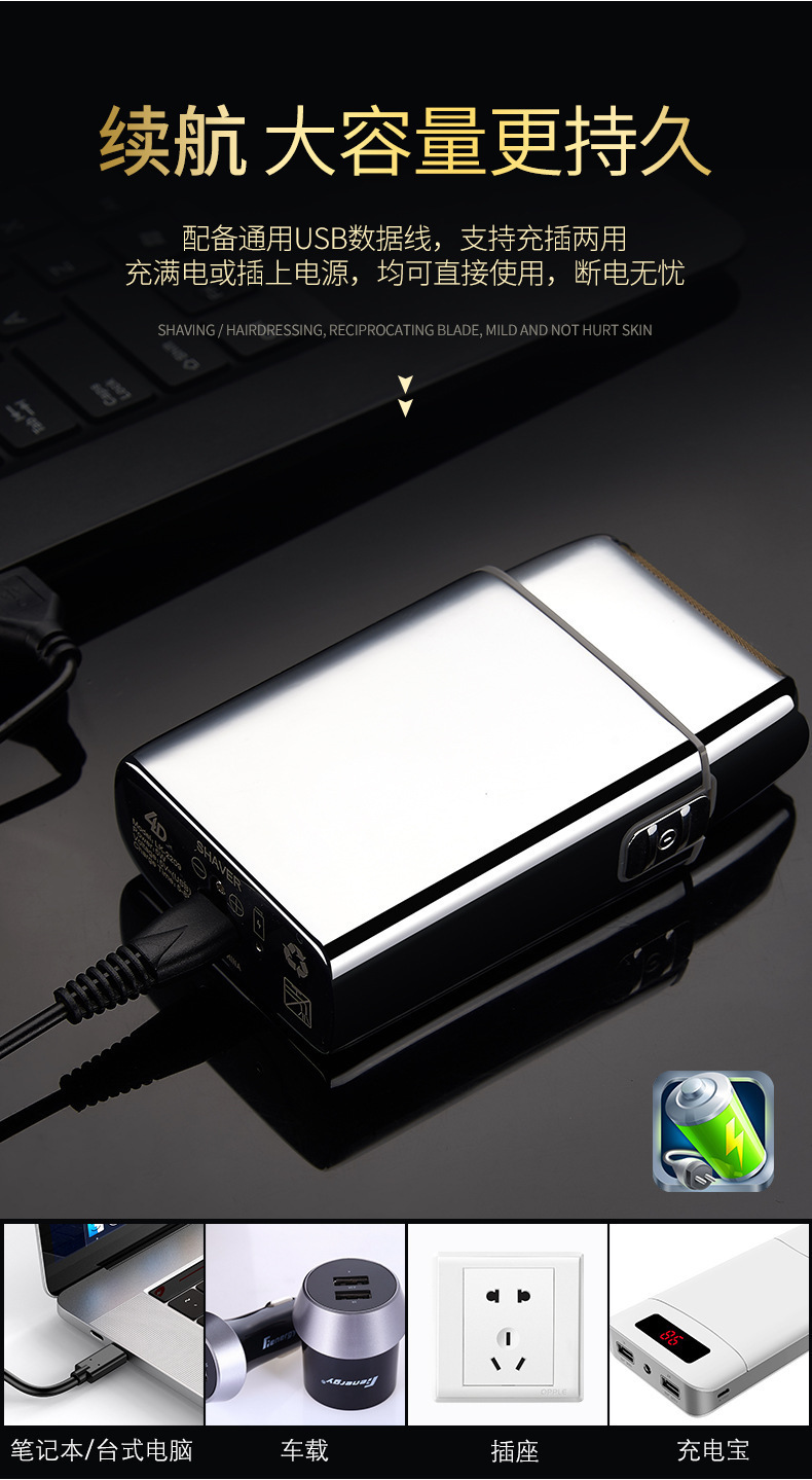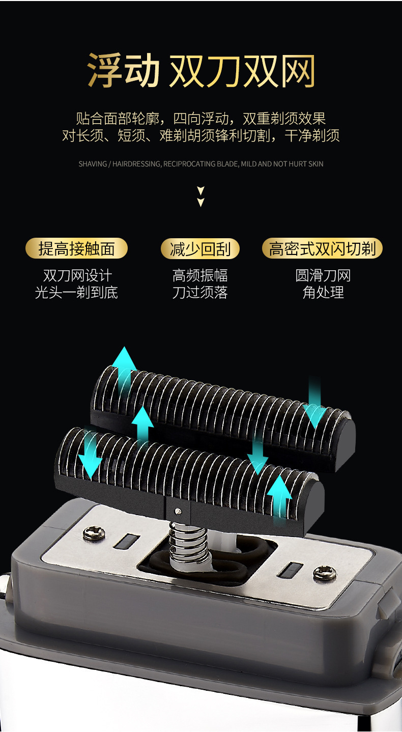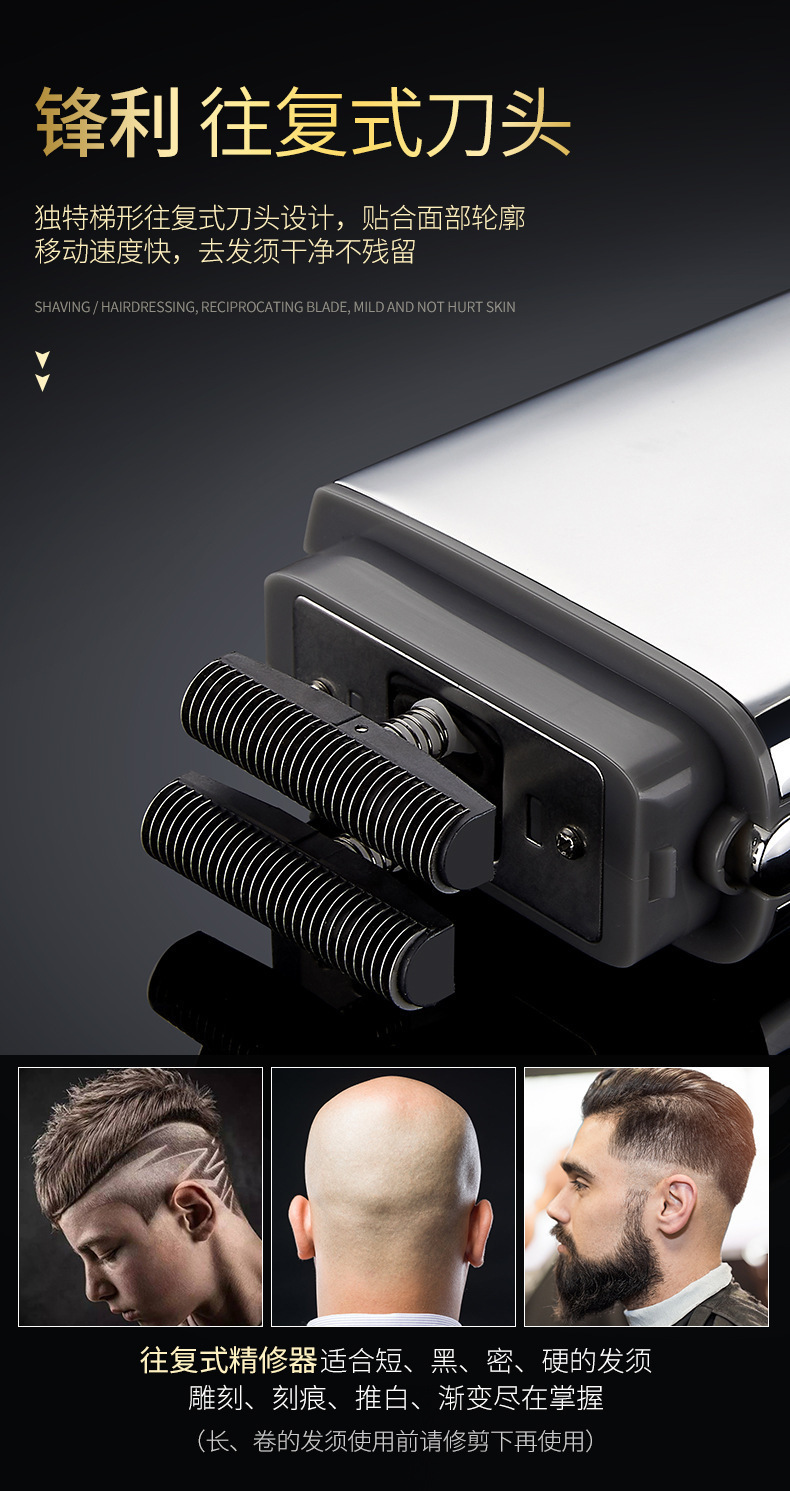 남자 복고풍 금속 바디 왕복 더블 헤드 전기 면도기 강한 면도기 헤어 클리퍼 푸시 화이트