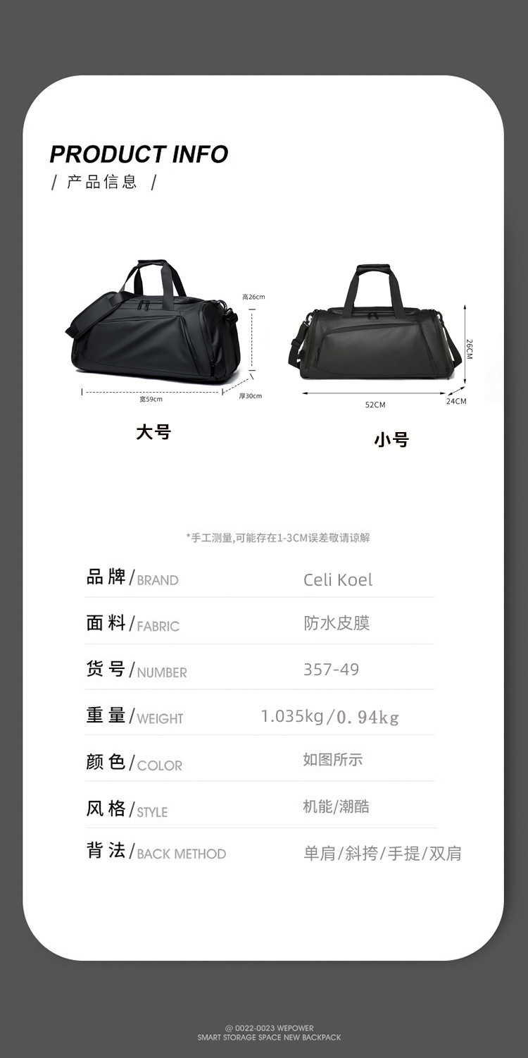 방수 여행 가방 야외 대용량 배낭 건조하고 젖은 스포츠 별도의 수영 피트니스 보관 휴대용 수하물 가방