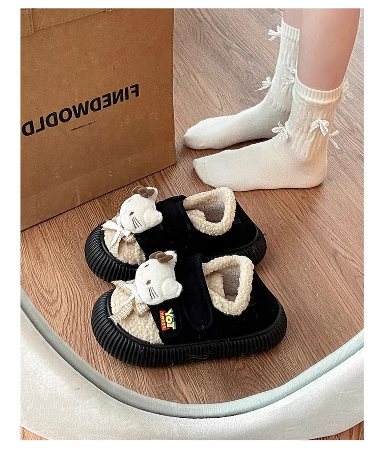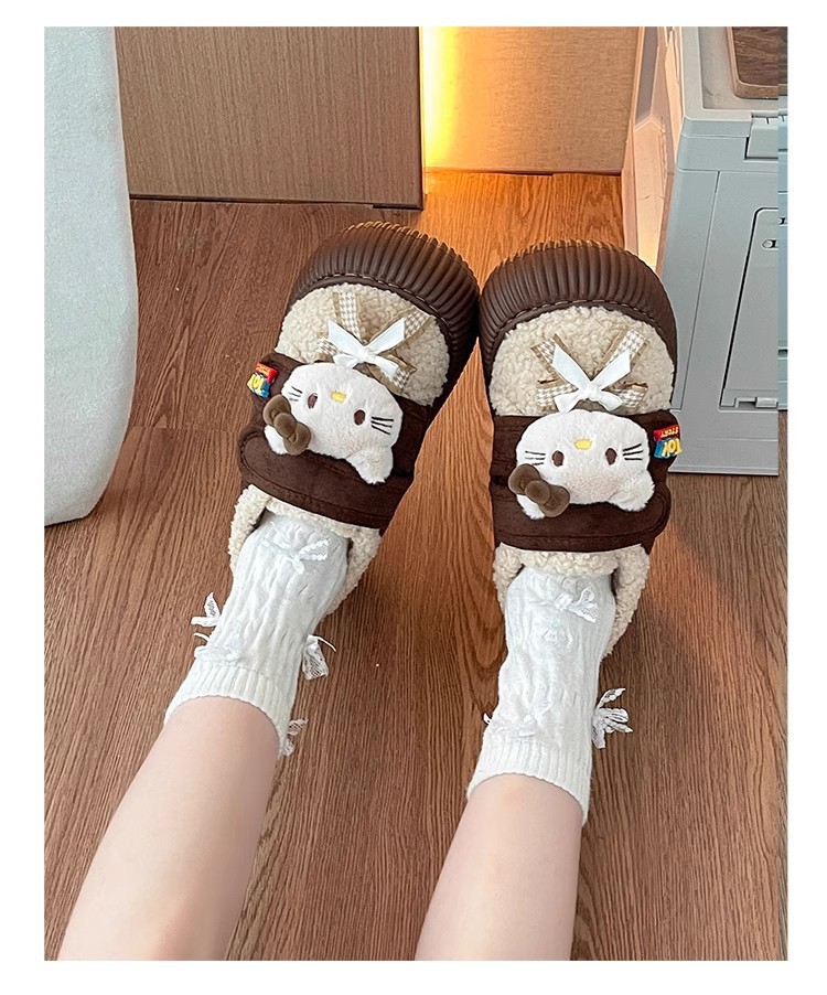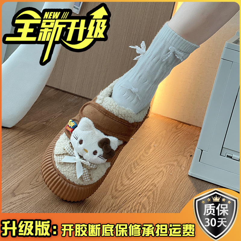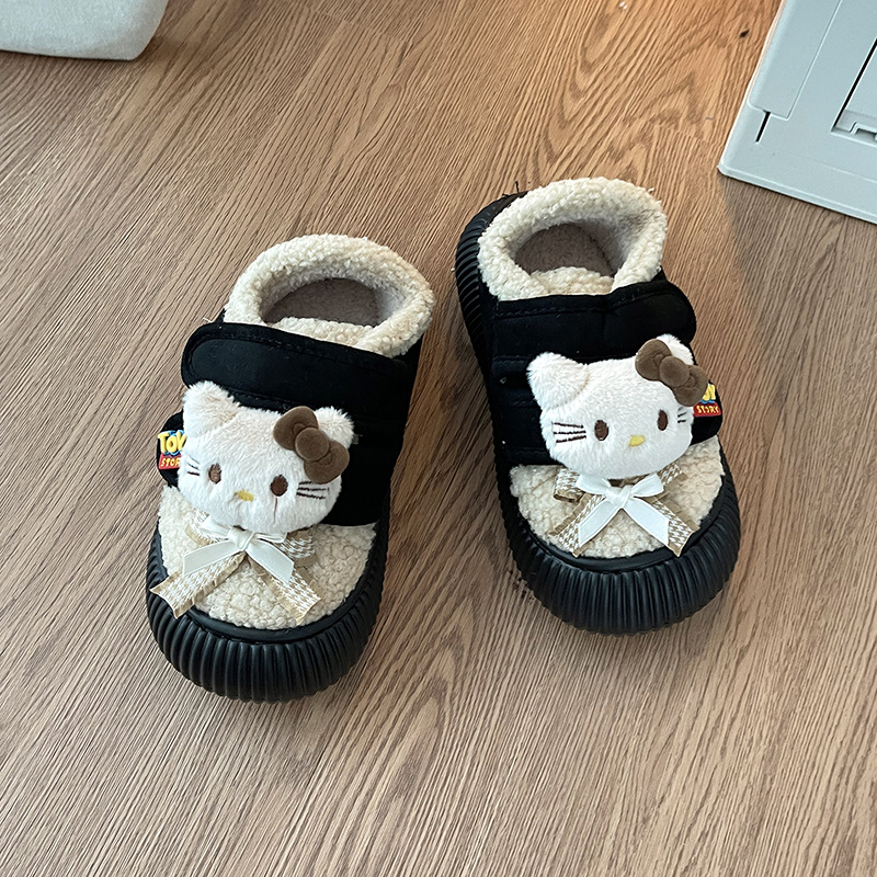 패션 캐주얼 헬로 키티 마오 신발 여성의 2024 가을과 겨울 새로운 의상 기모 두꺼운 신발 유행 여성