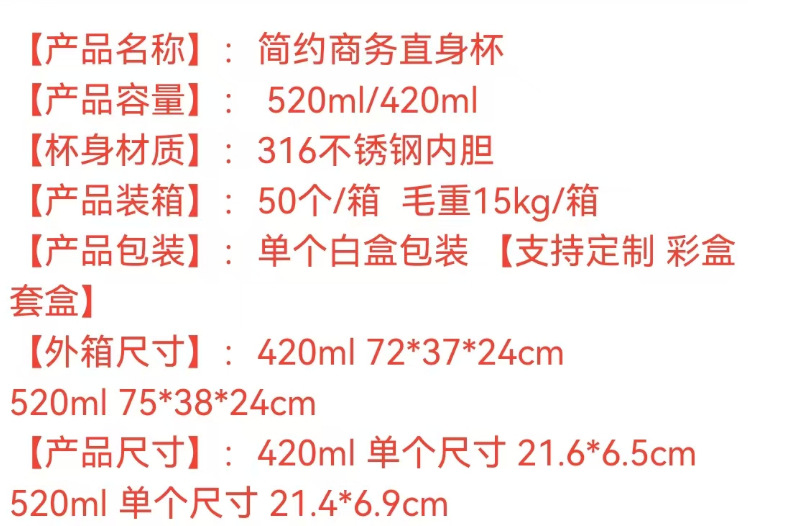 420ml口径 5.0 单杯242g