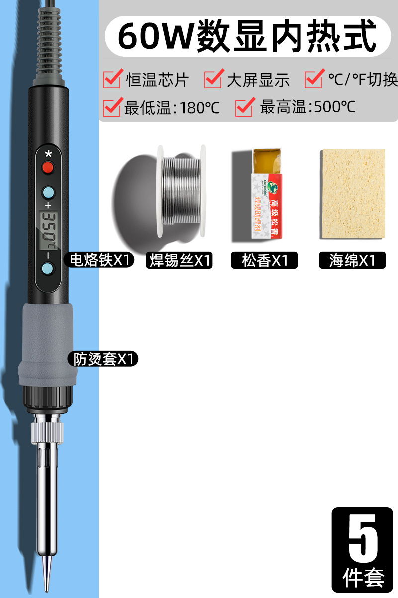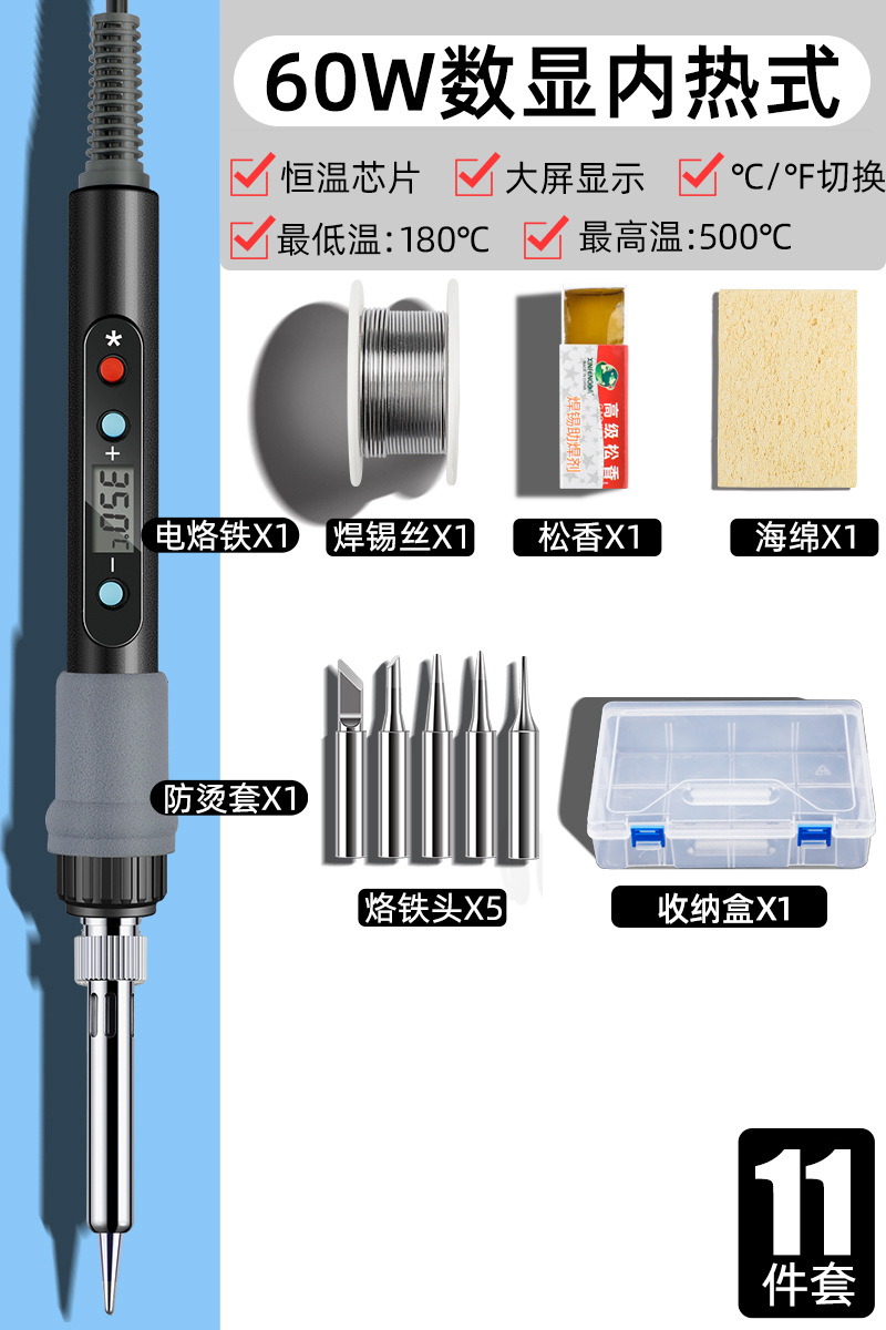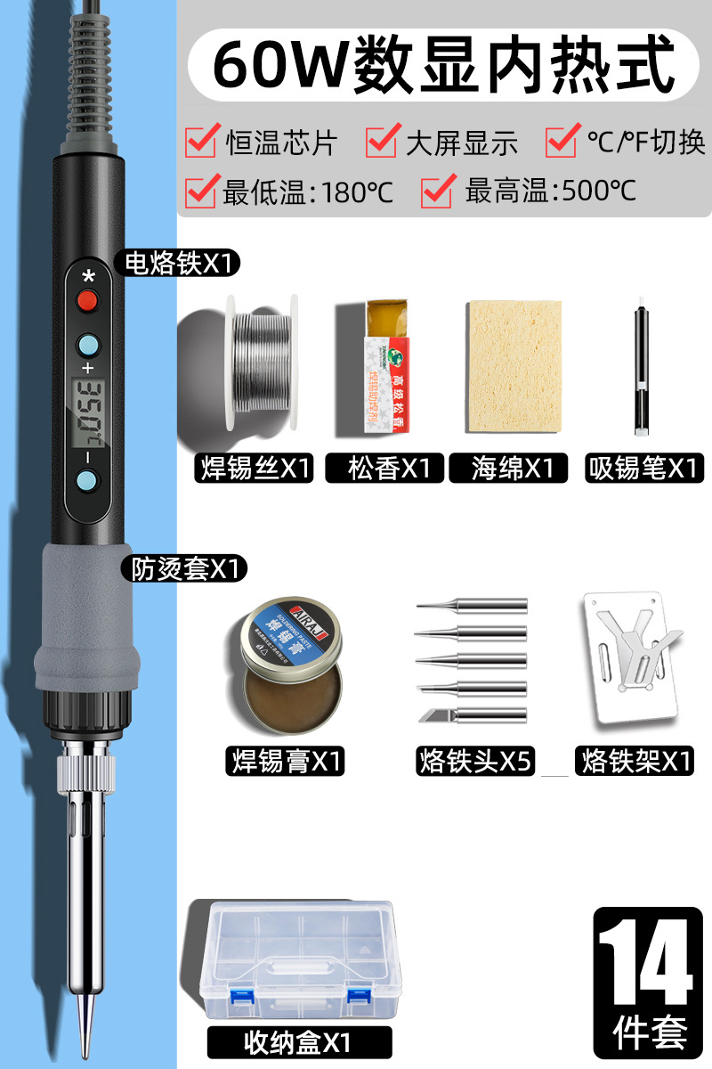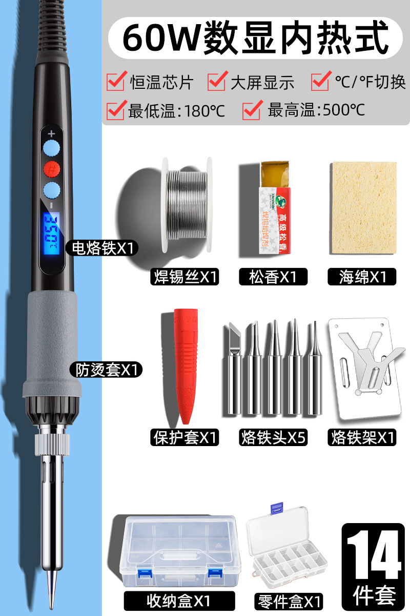 • 60W 지능형 온도 조절(디지털 디스플레이, 빠른 가열 및 일정한 온도) 17개 세트[멀티미터 포함]