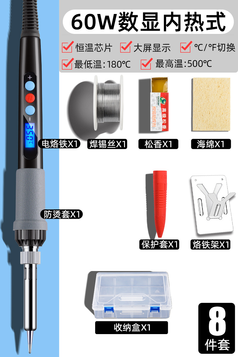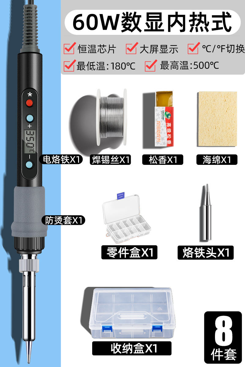 • 60W 지능형 온도 조절(디지털 디스플레이, 급속 가열 및 항온) 8종 세트 [보관함 포함]