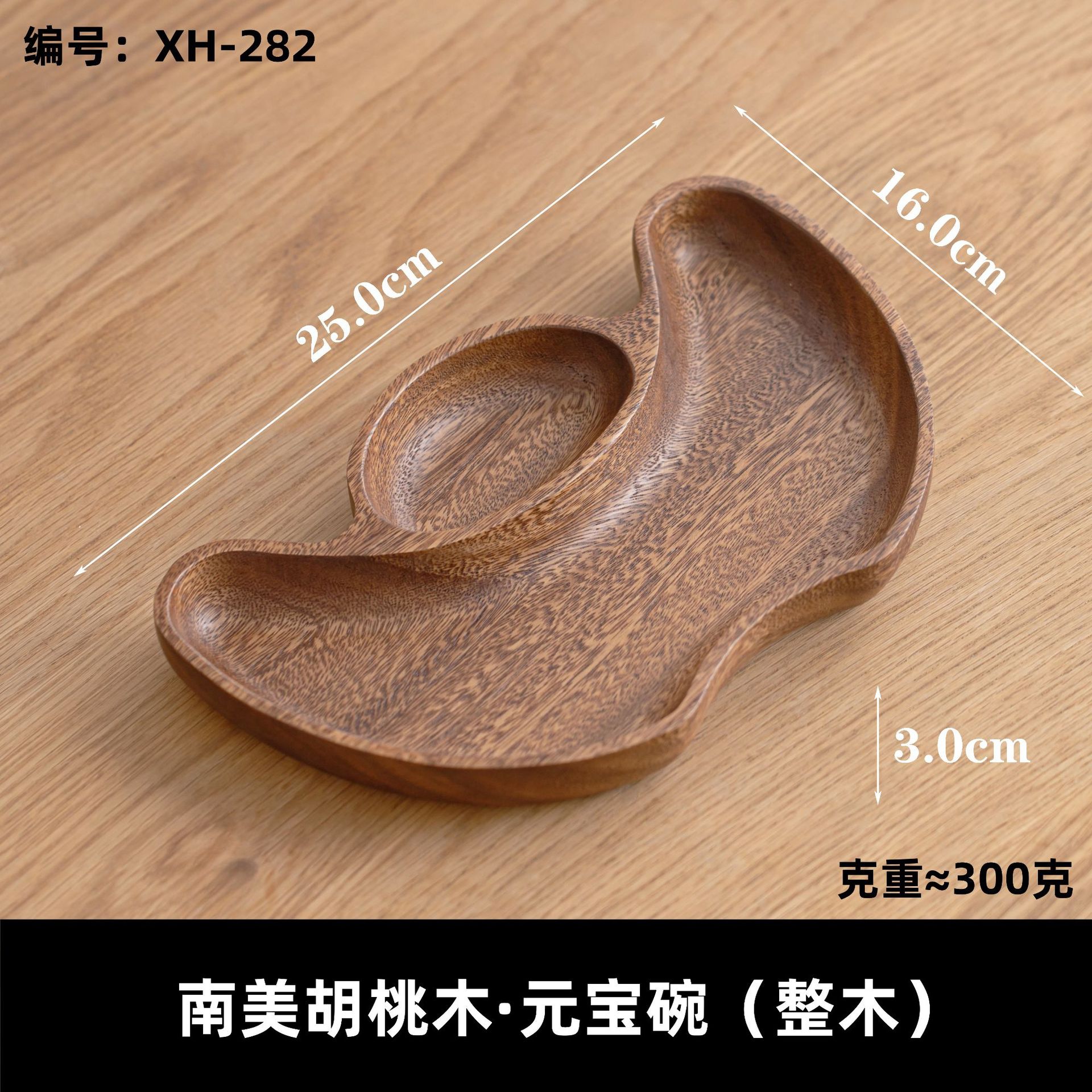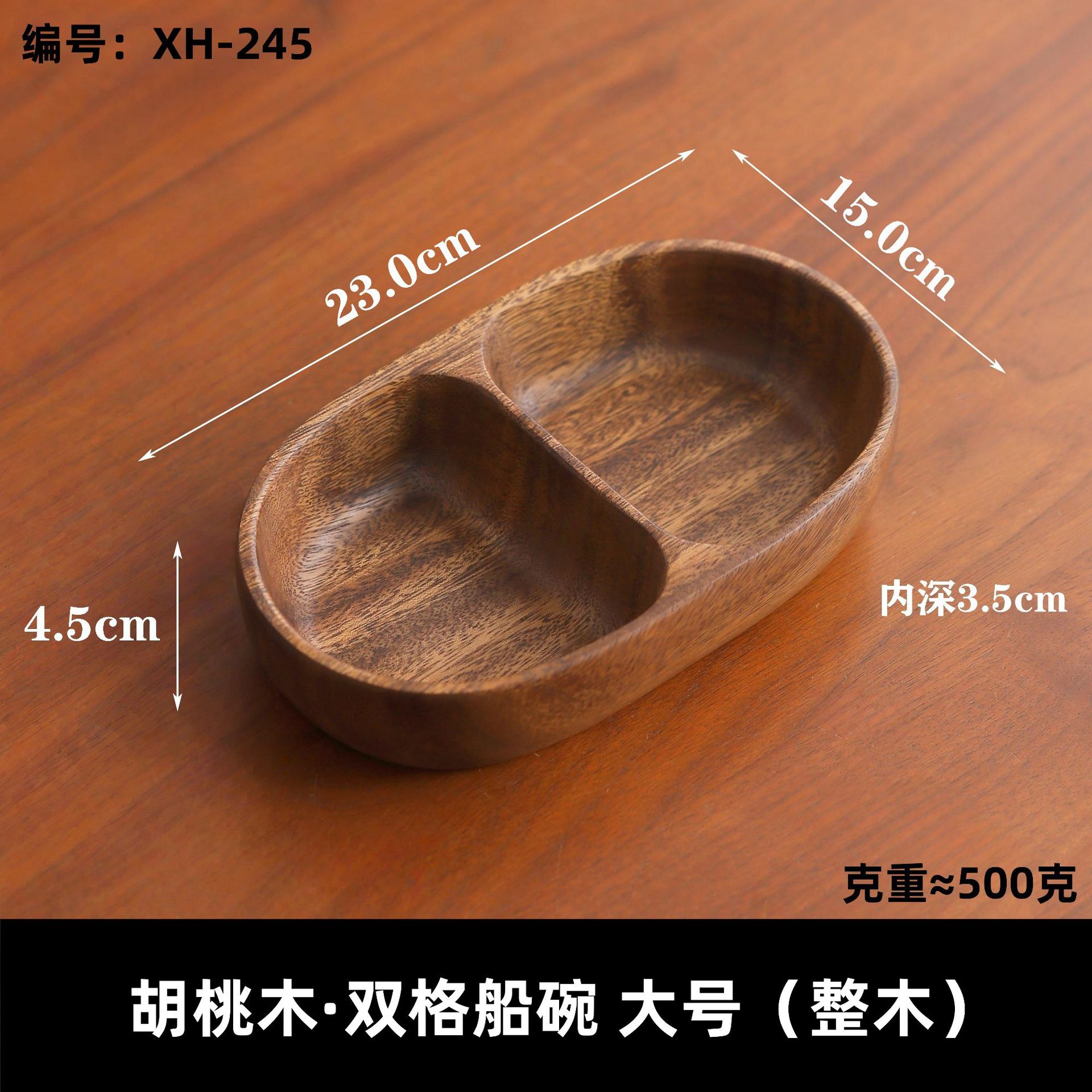 라이트 럭셔리 스타일 호두나무 소형 배 모양 이중 칸 나무 그릇, 원목 분할형 가정용 간식 접시, 과일 접시, 스낵 접시