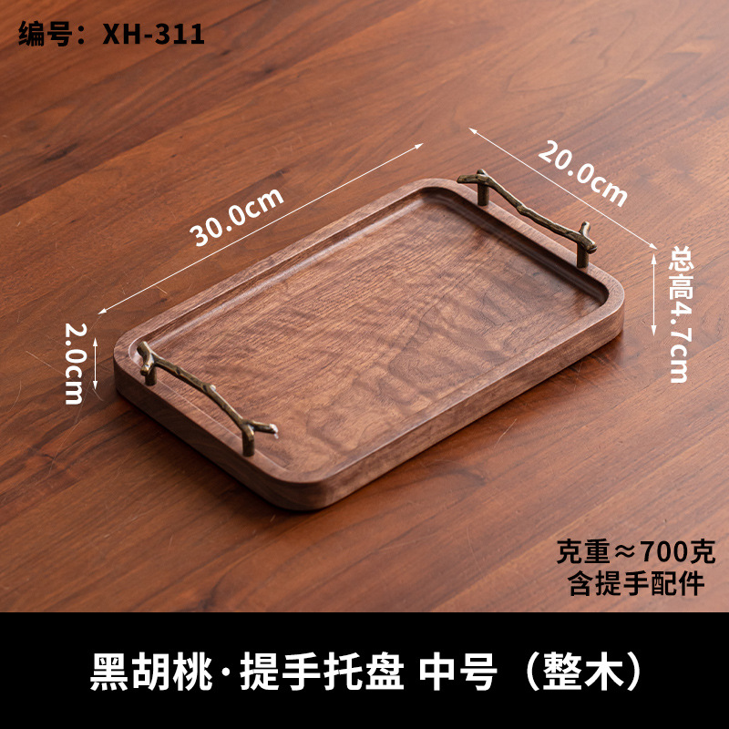 • 검은 호두나무 손잡이 직사각 트레이 (원목)