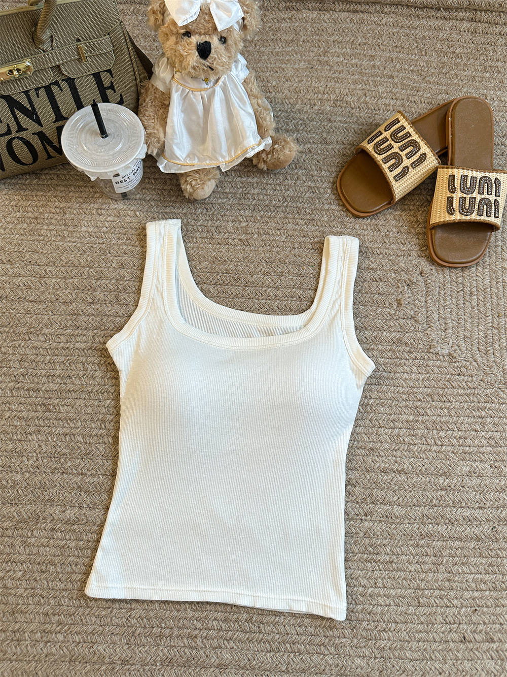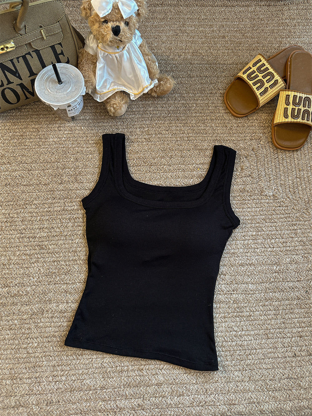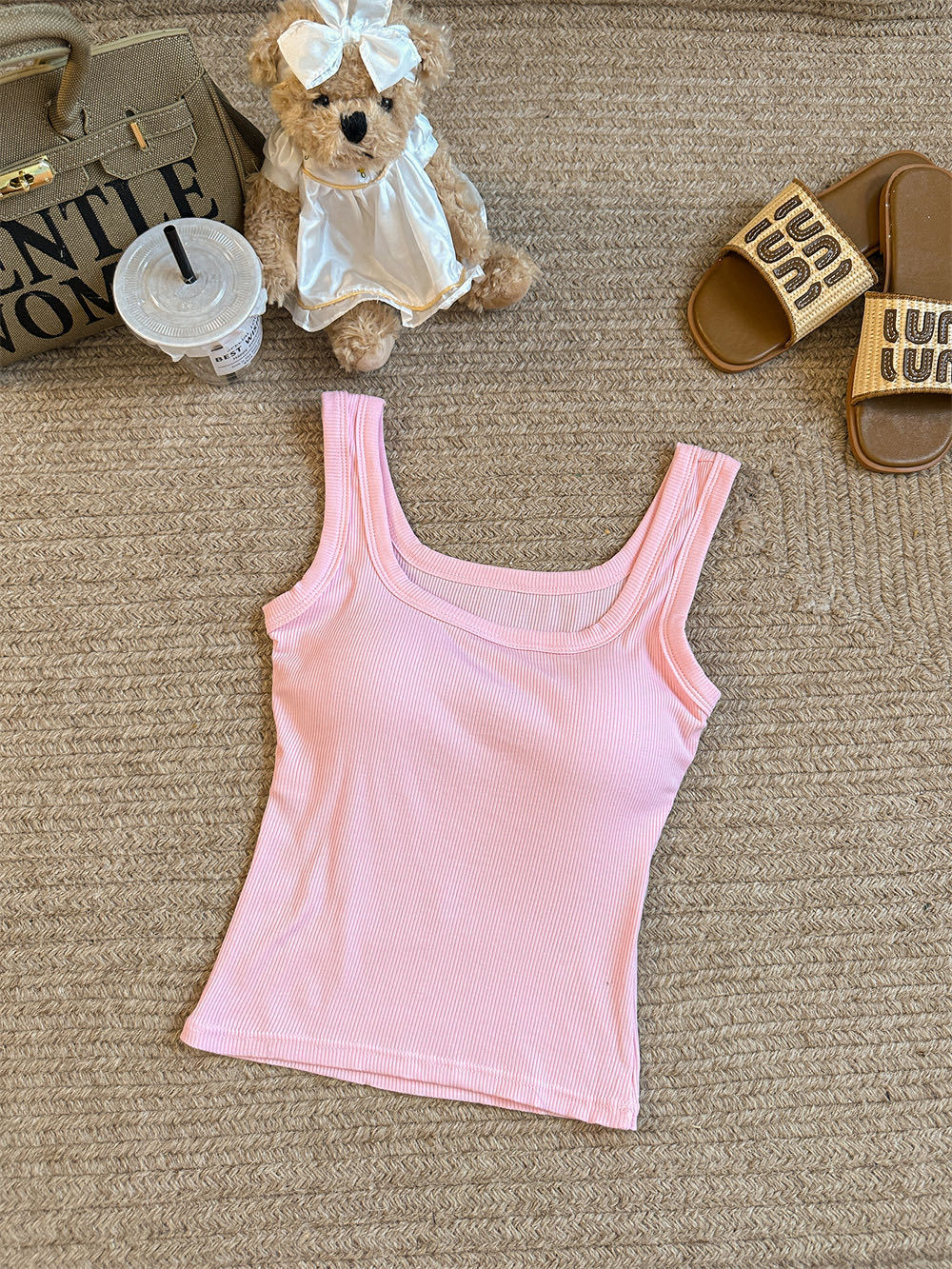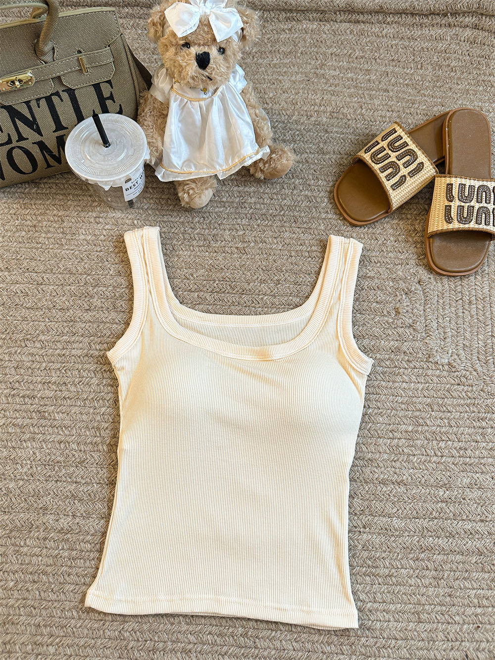 민소매 카미 솔 여성 여름 2024 새로운 스타일 슬림 핏 솔리드 컬러 내외베이스 셔츠탑 가슴 패드스토어 가기