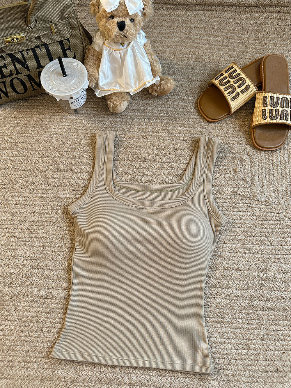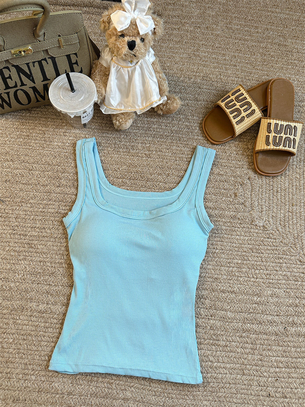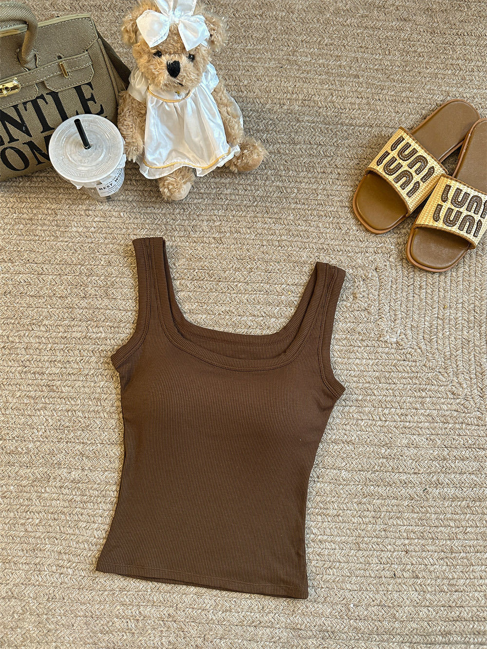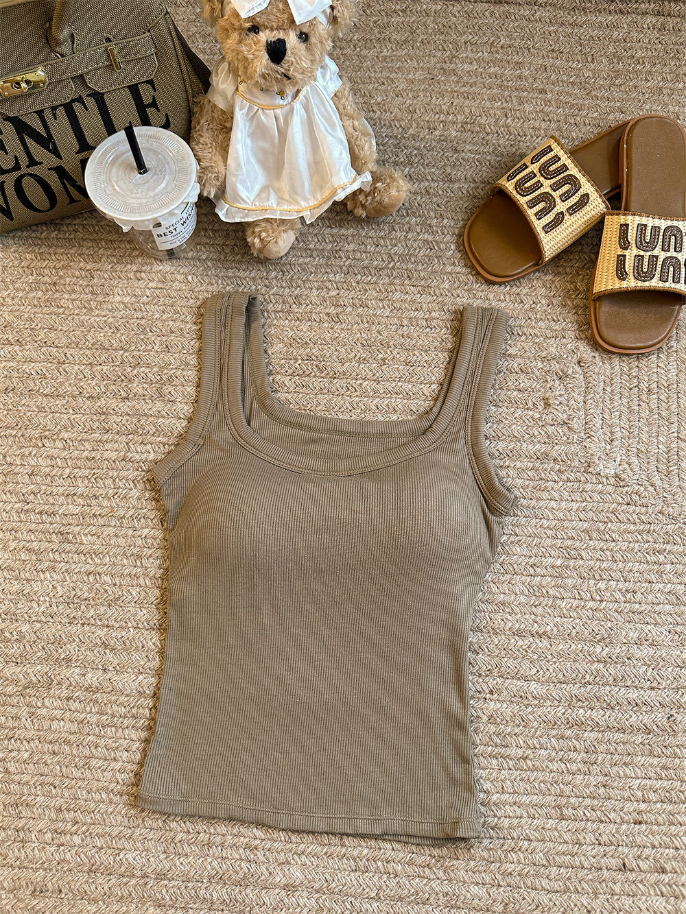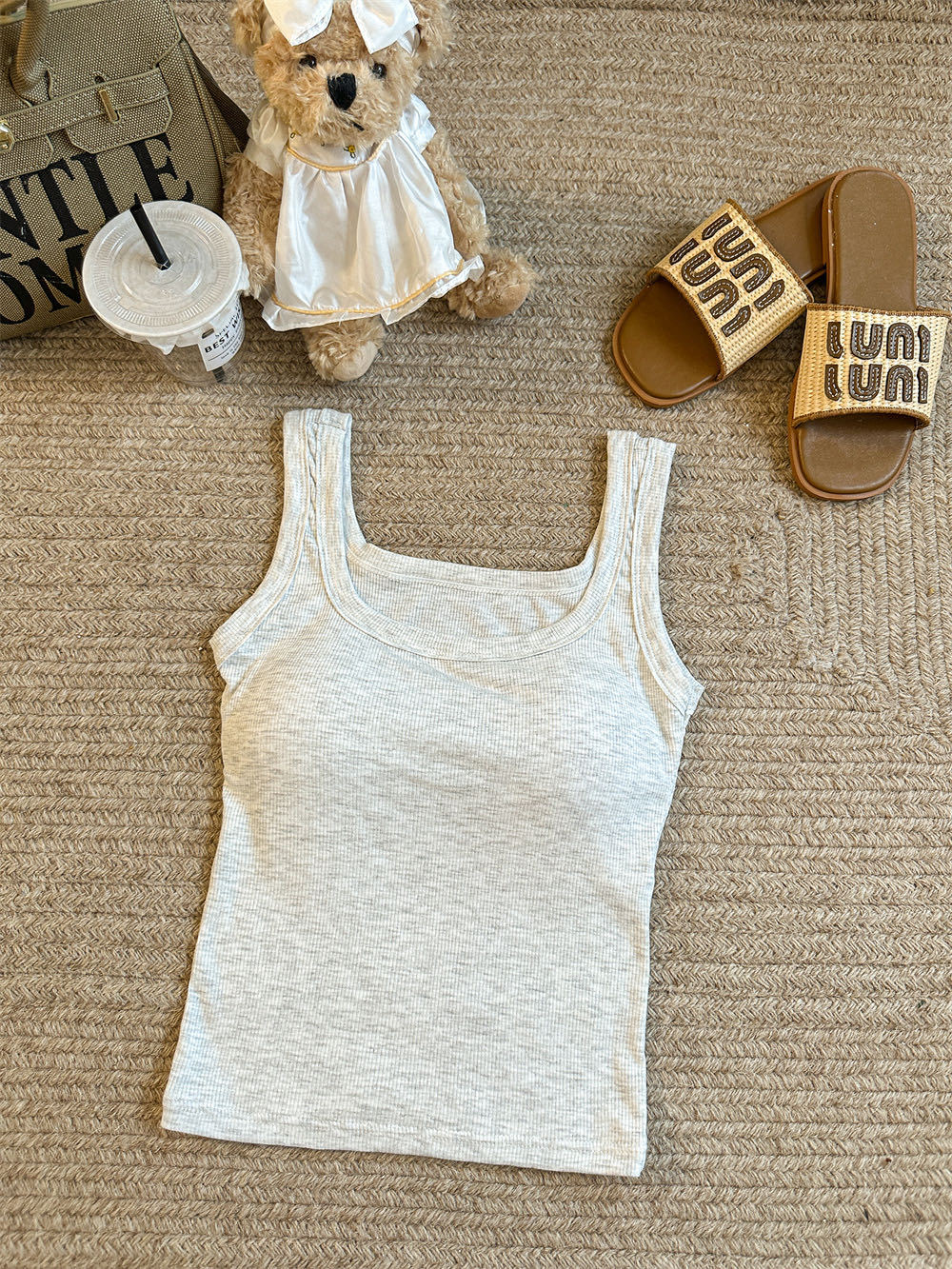민소매 카미 솔 여성 여름 2024 새로운 스타일 슬림 핏 솔리드 컬러 내외베이스 셔츠탑 가슴 패드스토어 가기