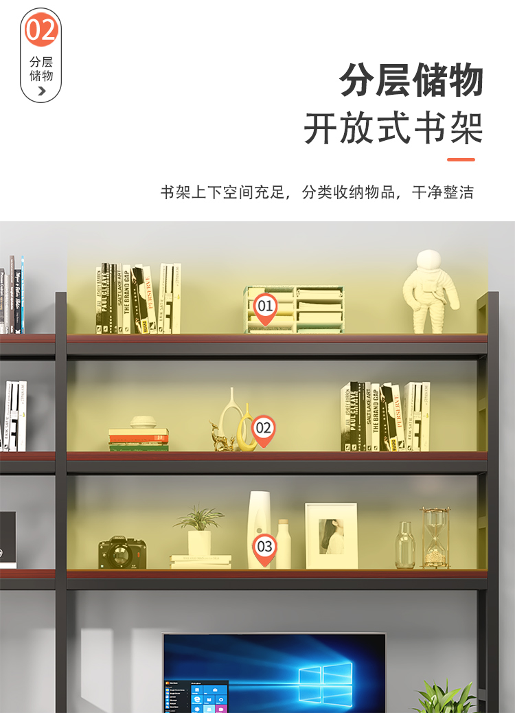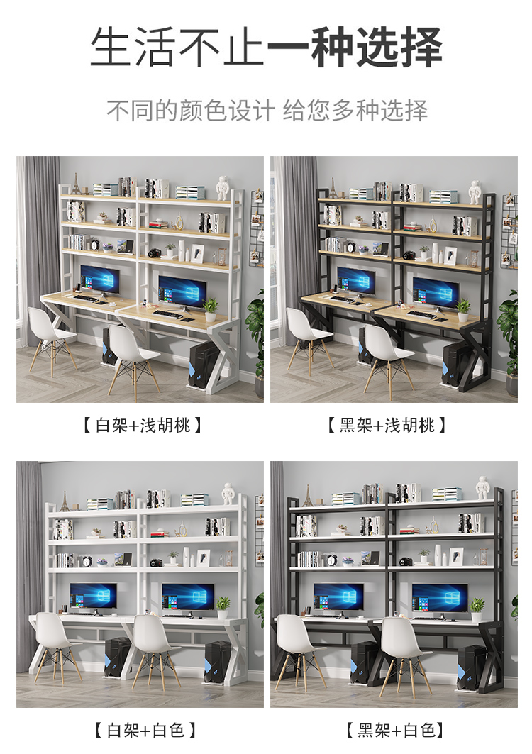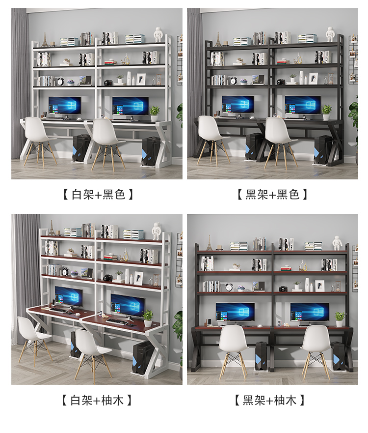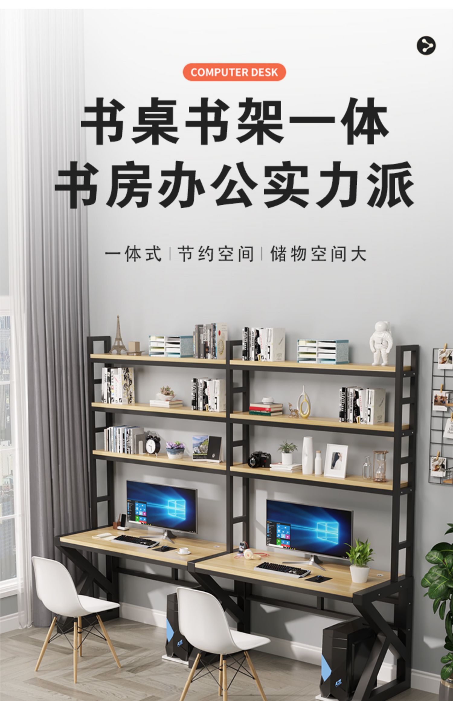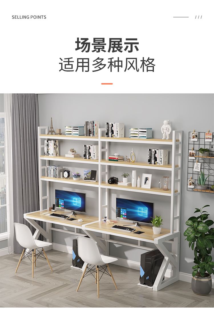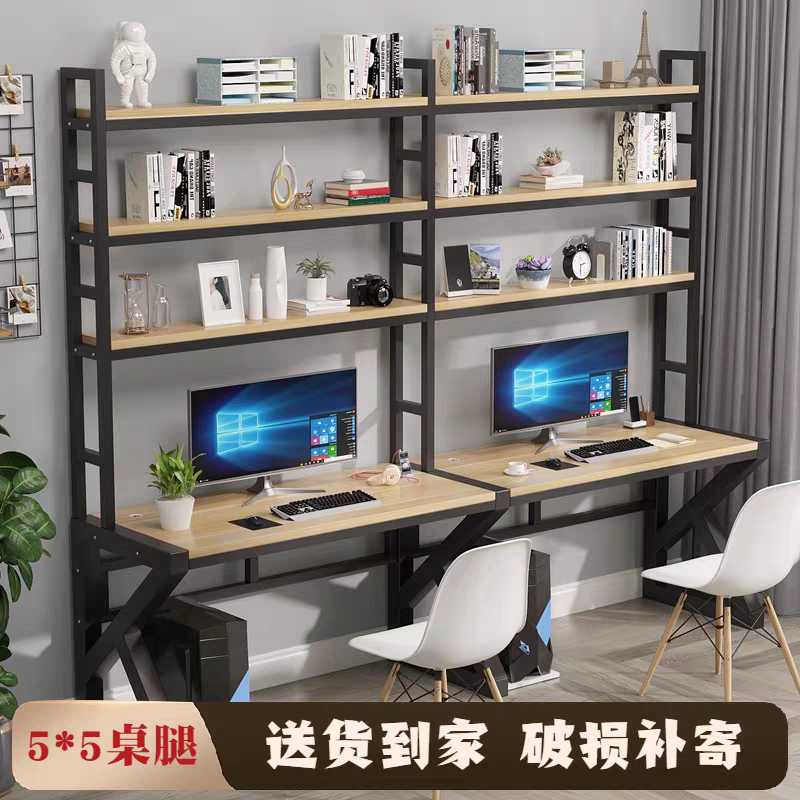 9C 더블 컴퓨터 데스크 데스크탑 홈 데스크 책장 통합 전체 벽 간단한 학습 책장 테이블 쓰기스토어 가기