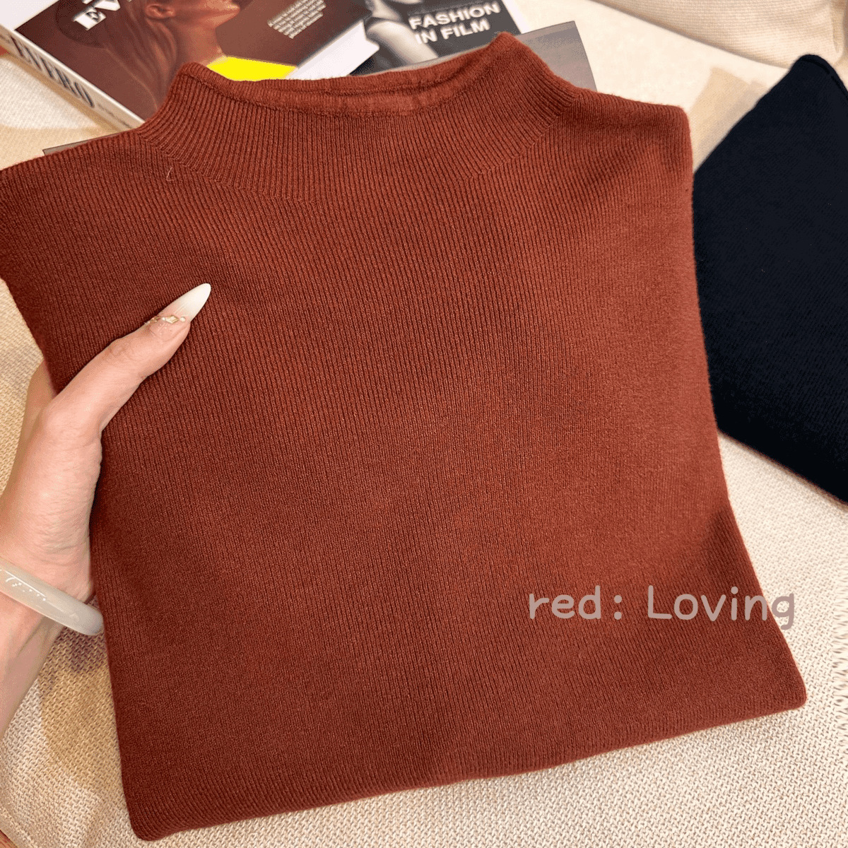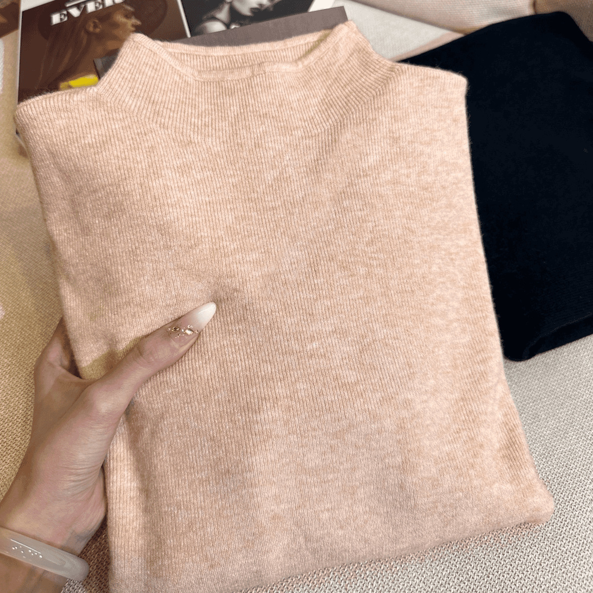 • 오트밀 컬러/여성 가을 스타일/초가을 고급 탑/하이 칼라 밑단 셔츠/초가을 탑/스웨터/매칭