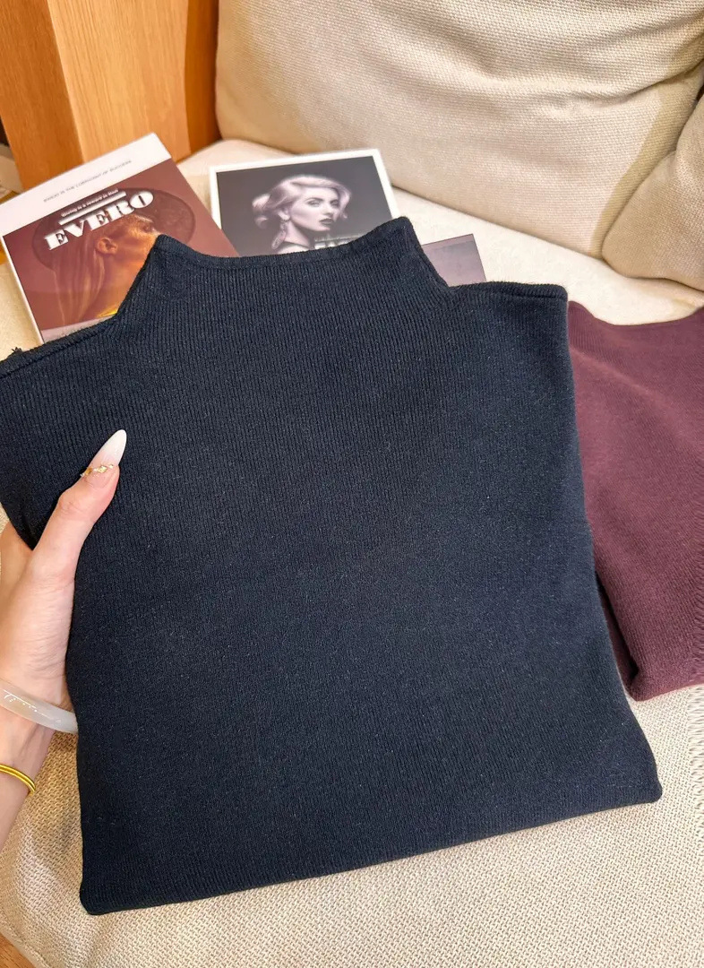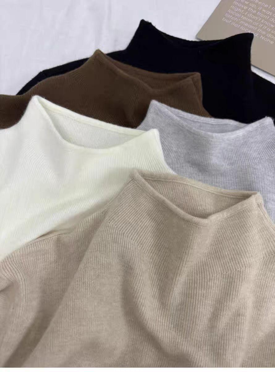 2025 가을 한국 스타일 작은 스탠드 칼라 부드러운 니트 긴팔 이너웨어 여성 겨울 스웨터 심플 상의스토어 가기