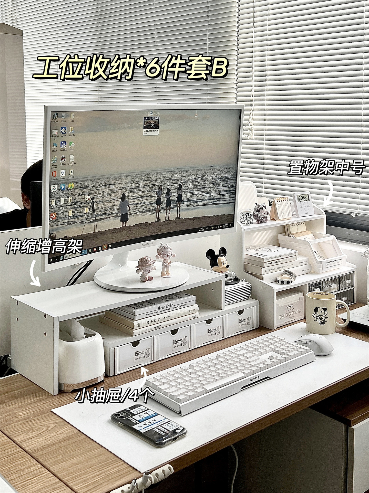 사무실 책상 보관 랙 데스크톱 컴퓨터 높은 랙 소녀 워크 스테이션 마무리 아티팩트 책상 보관 상자 좋은 것들스토어 가기