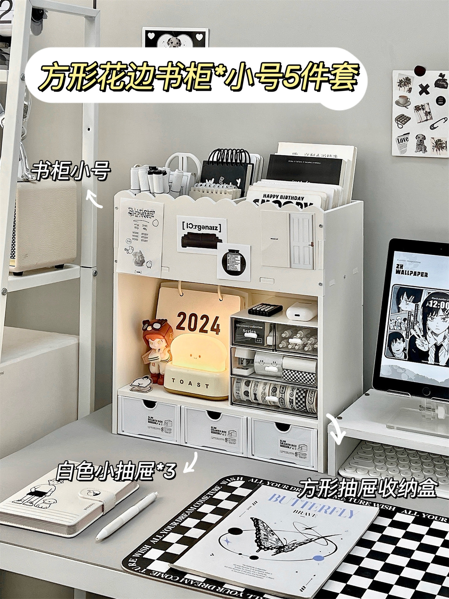 • 사각 레이스 책장*소형+흰색 작은 서랍/3