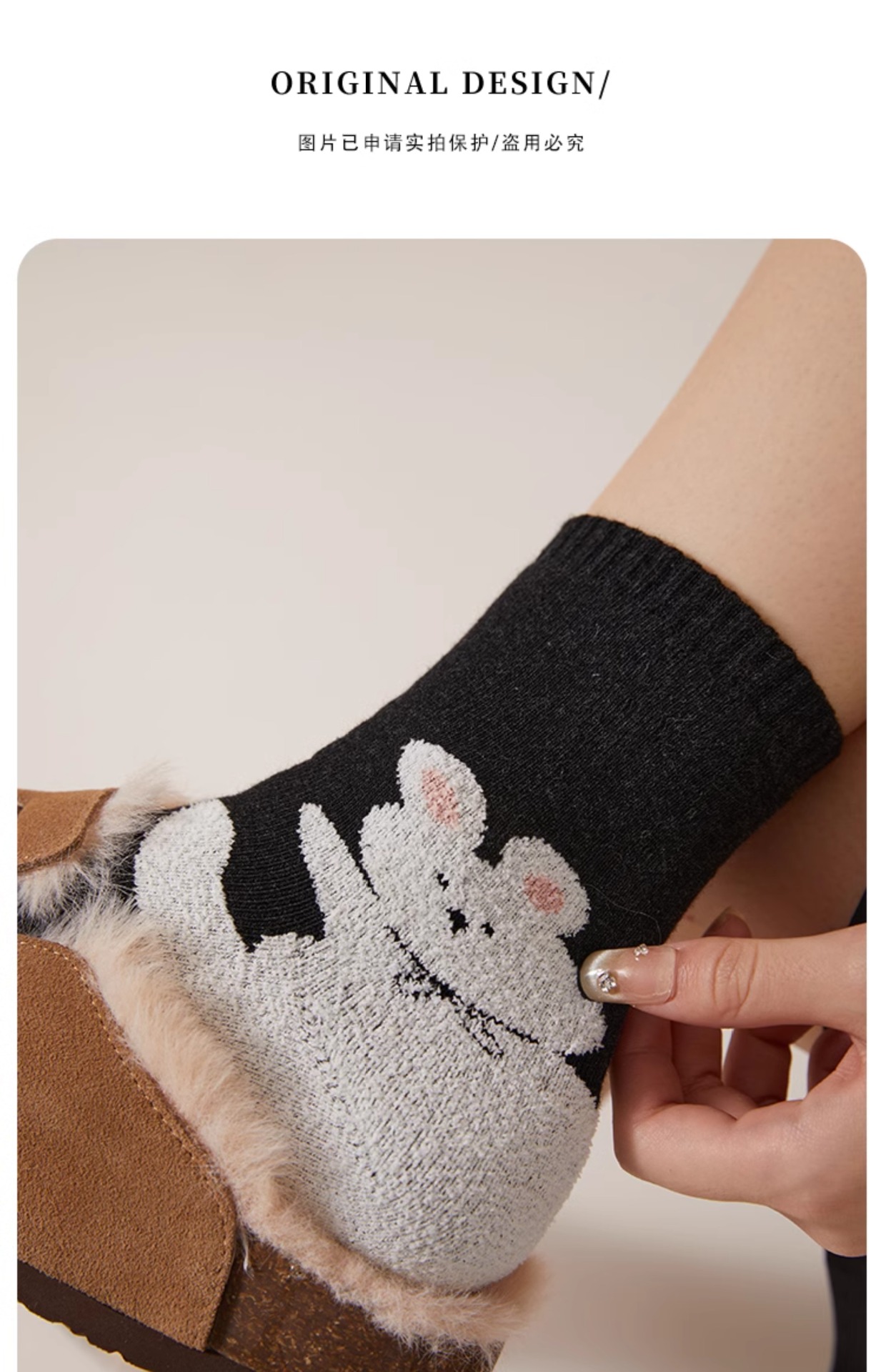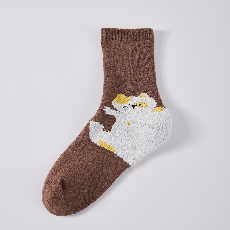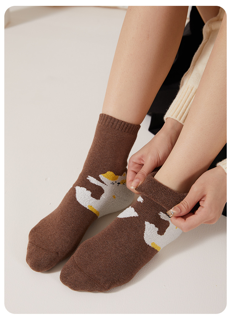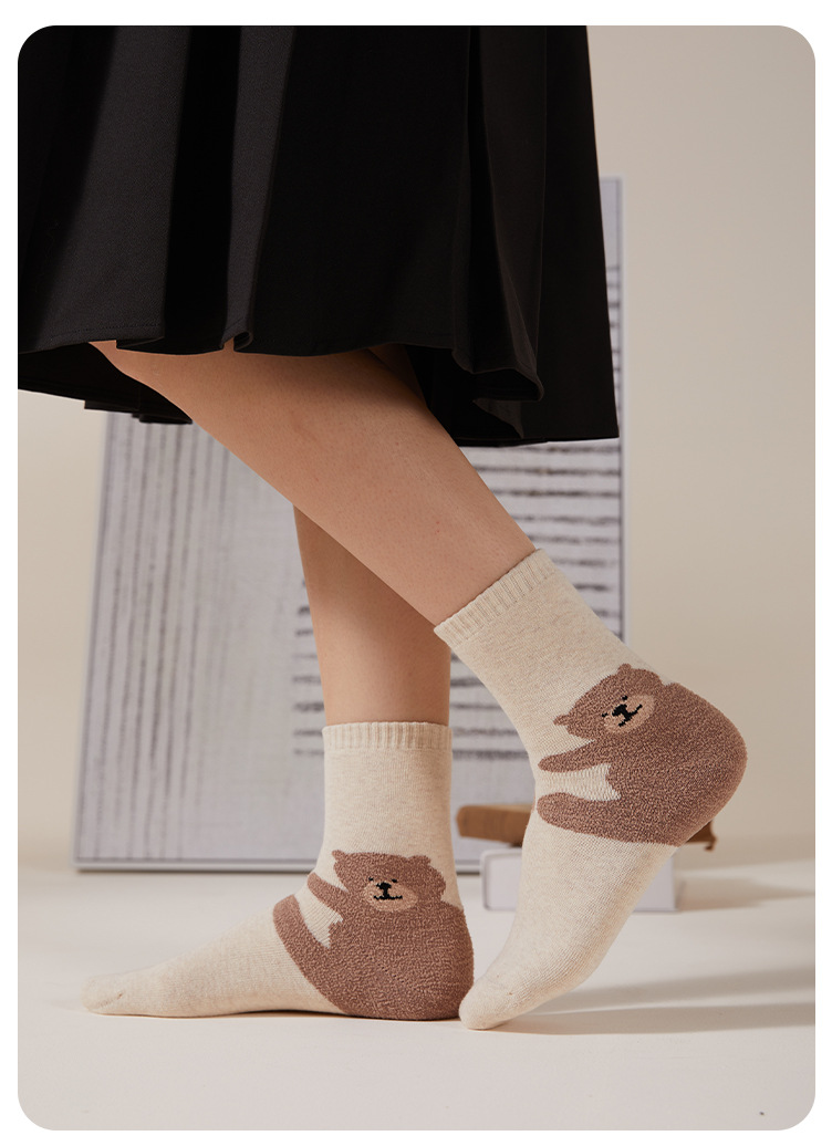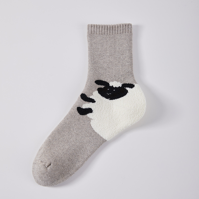 동대문 가을과 겨울 중간 튜브 양말 귀여운 만화 동물 테리 양말 따뜻한 스타킹 Birkenth 신발 회색 양말