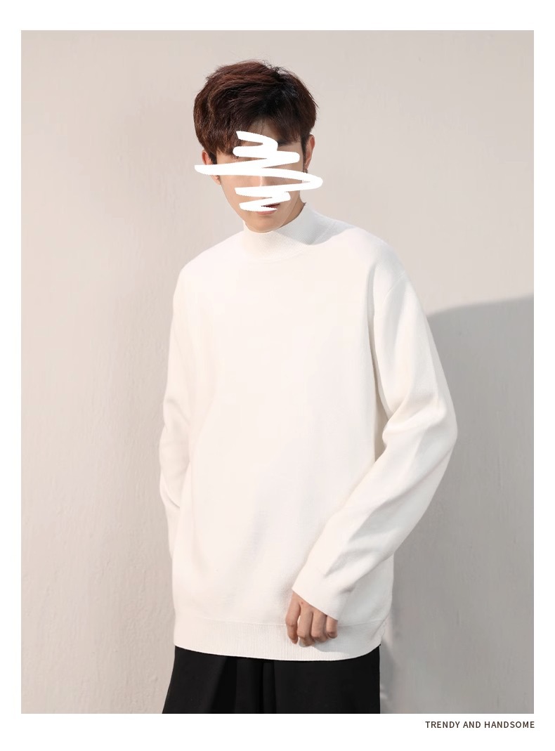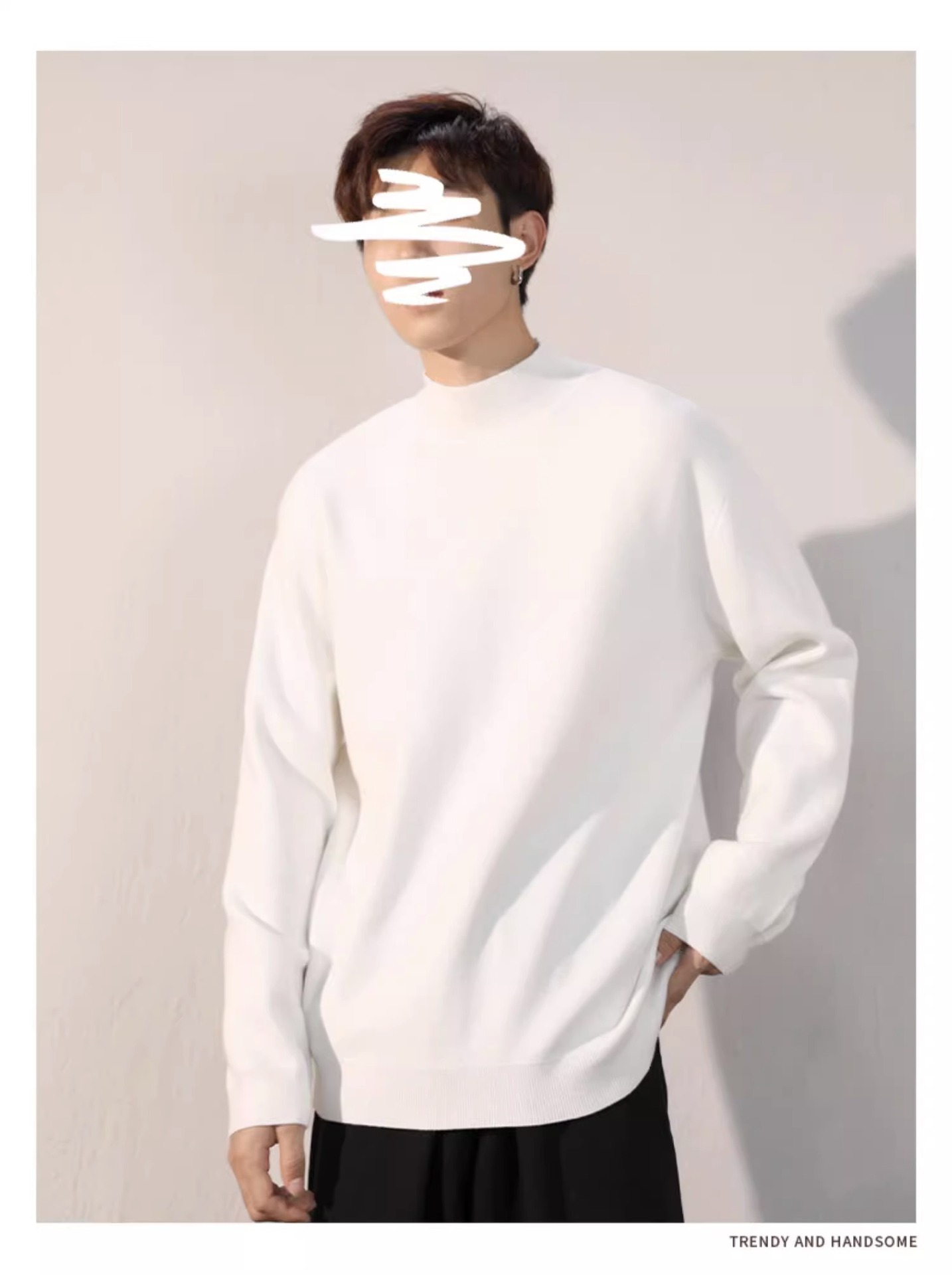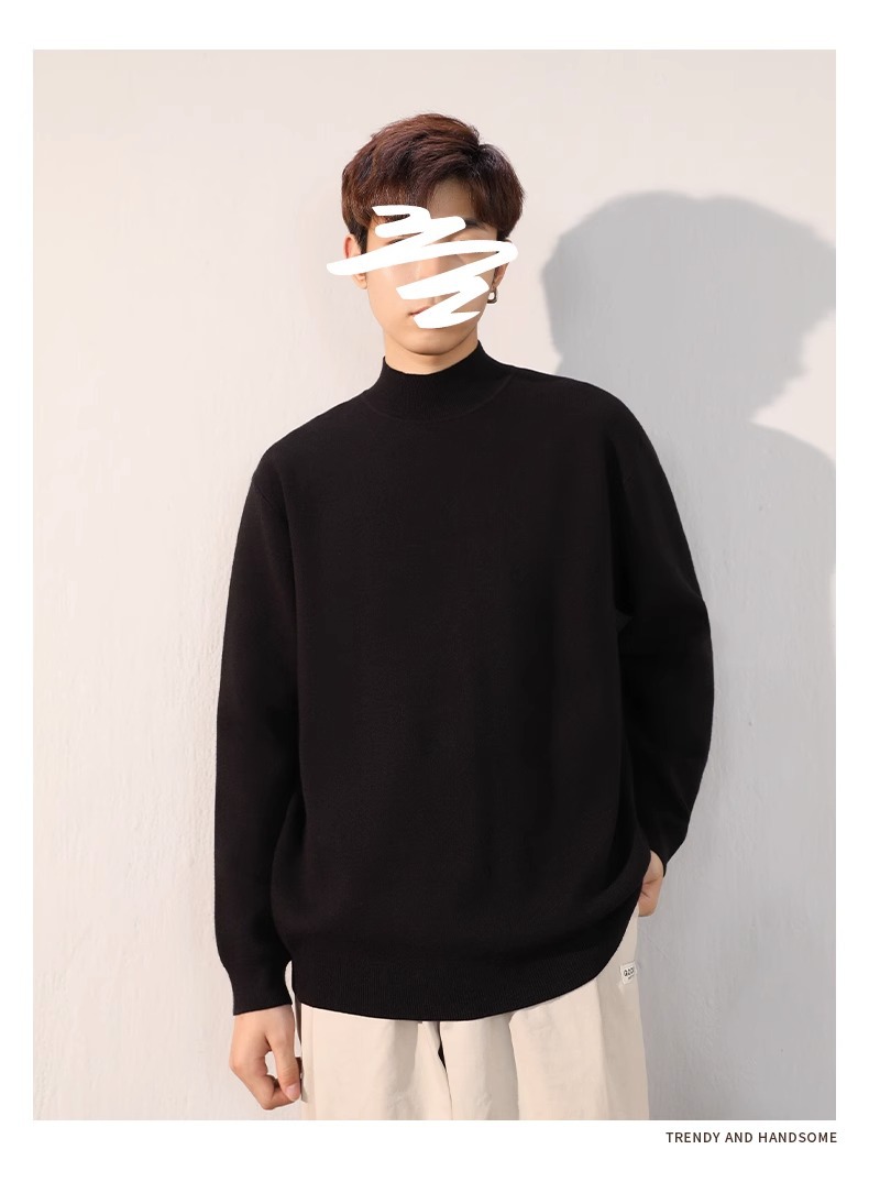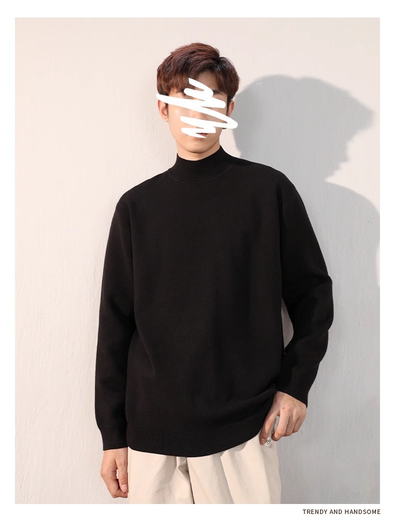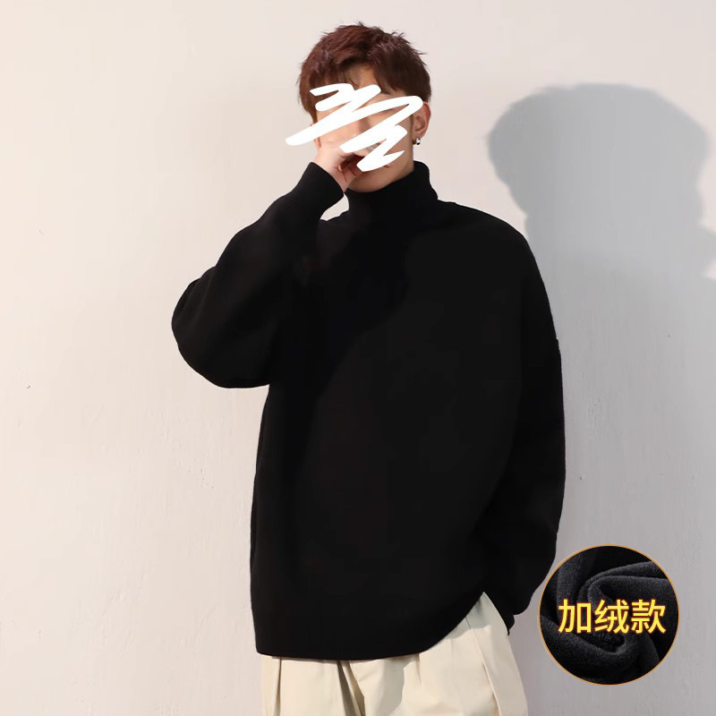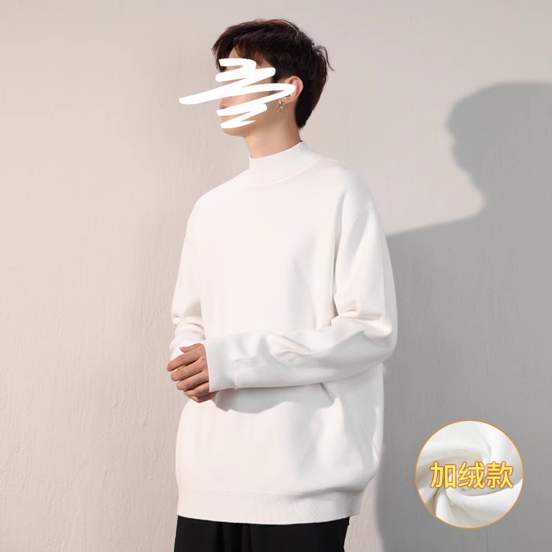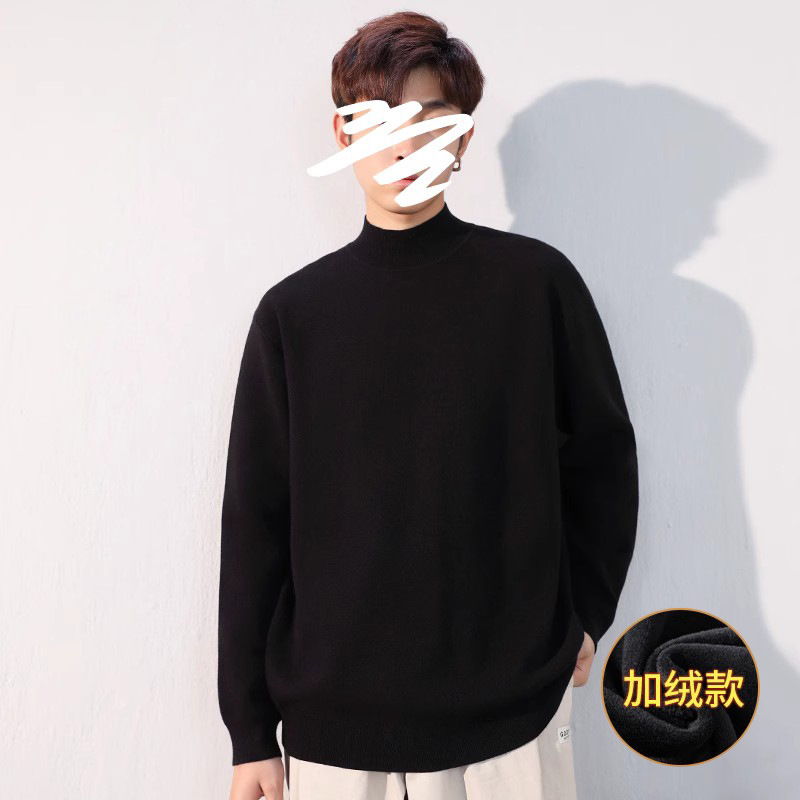 남자 단색 스웨터 2024 가을과 겨울 새로운 기모 두꺼운 따뜻한 칼라 검은 기본 셔츠 옷 조수스토어 가기