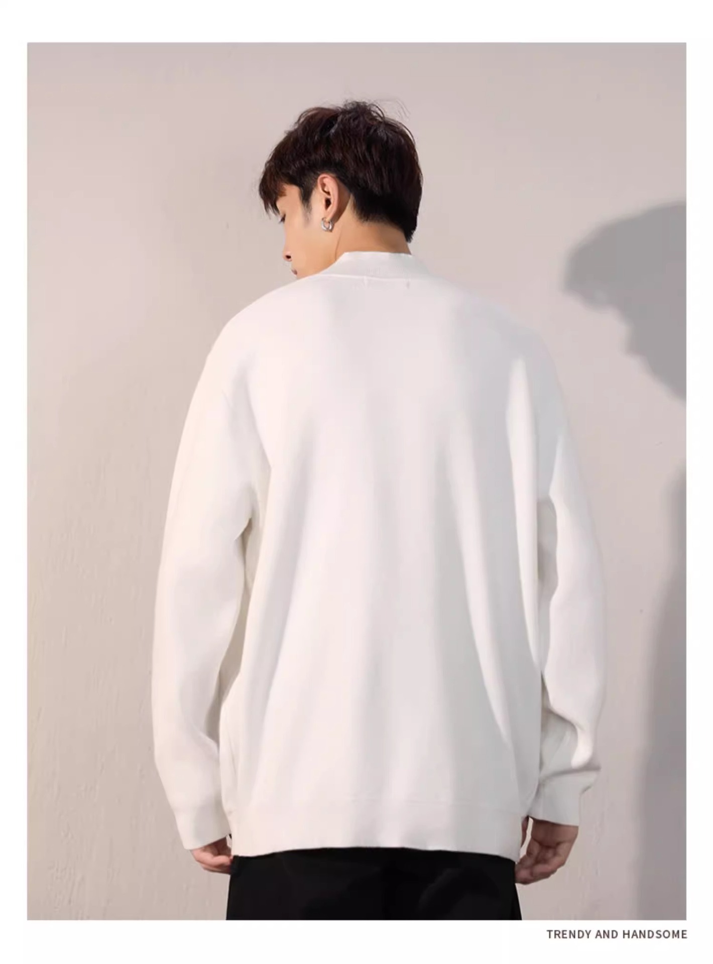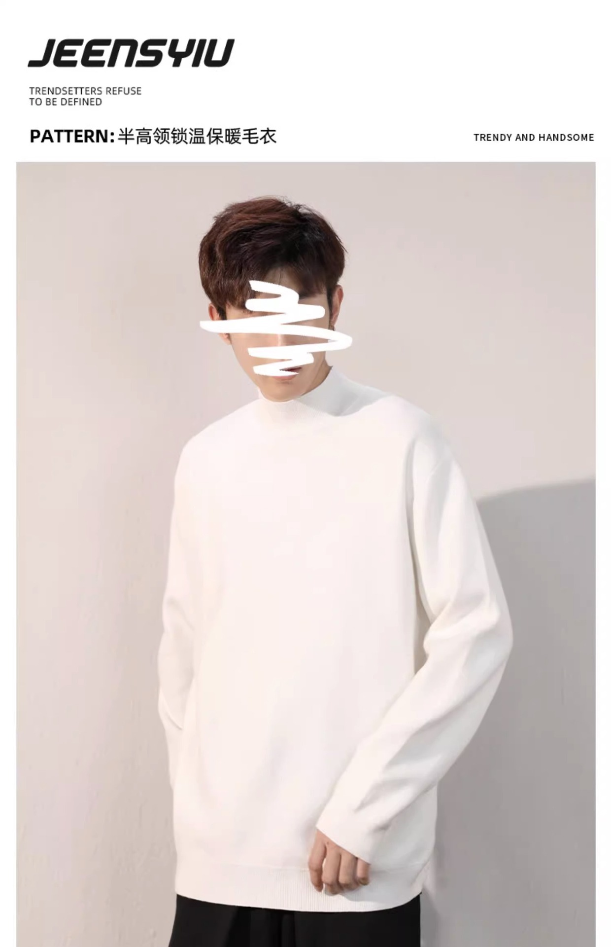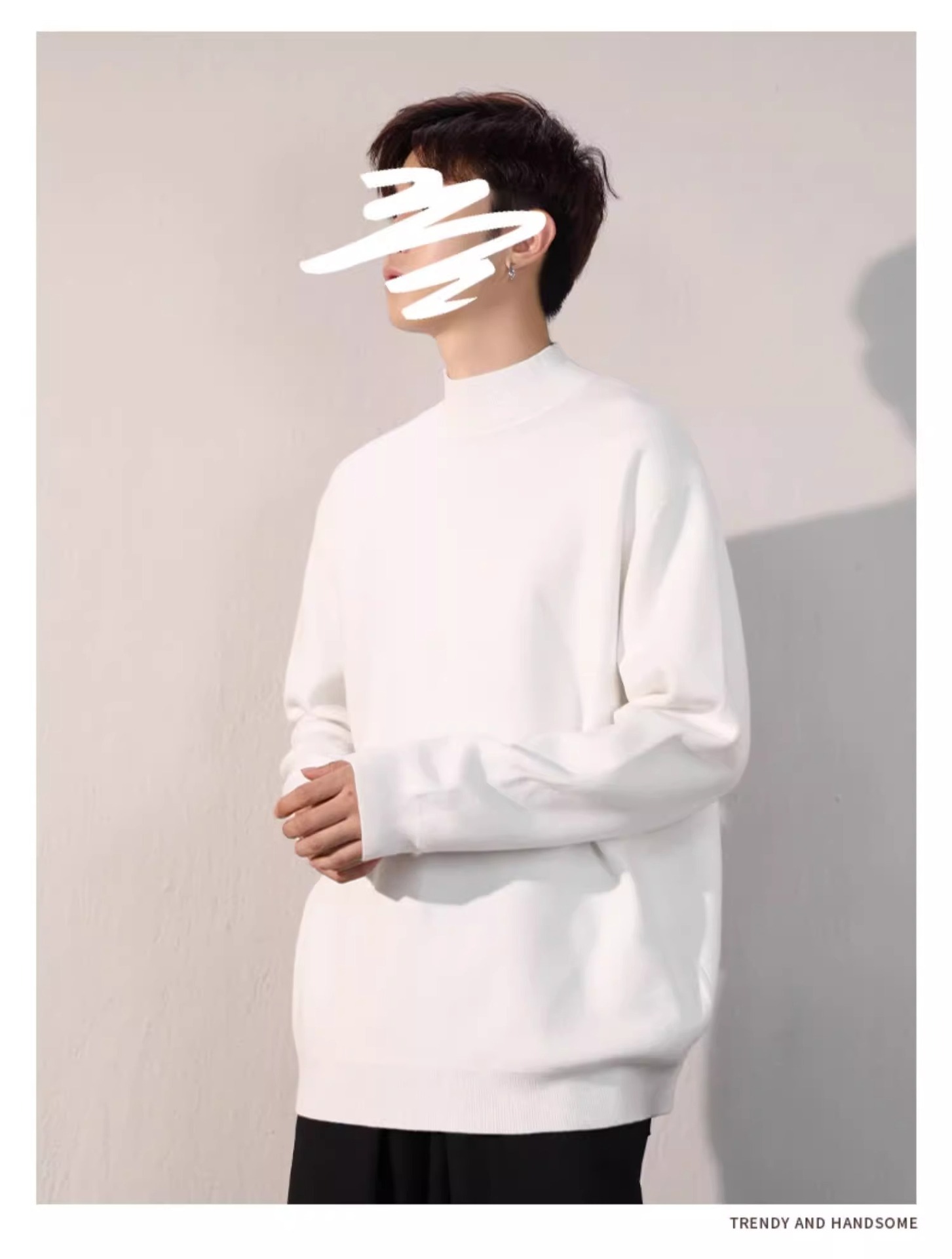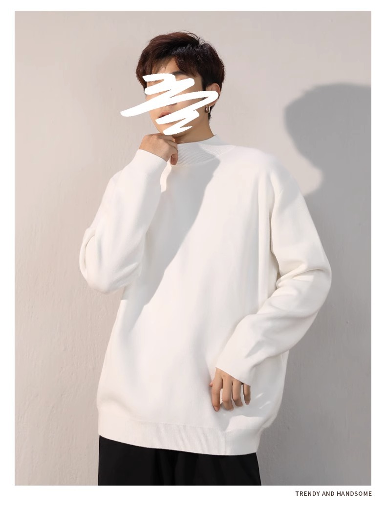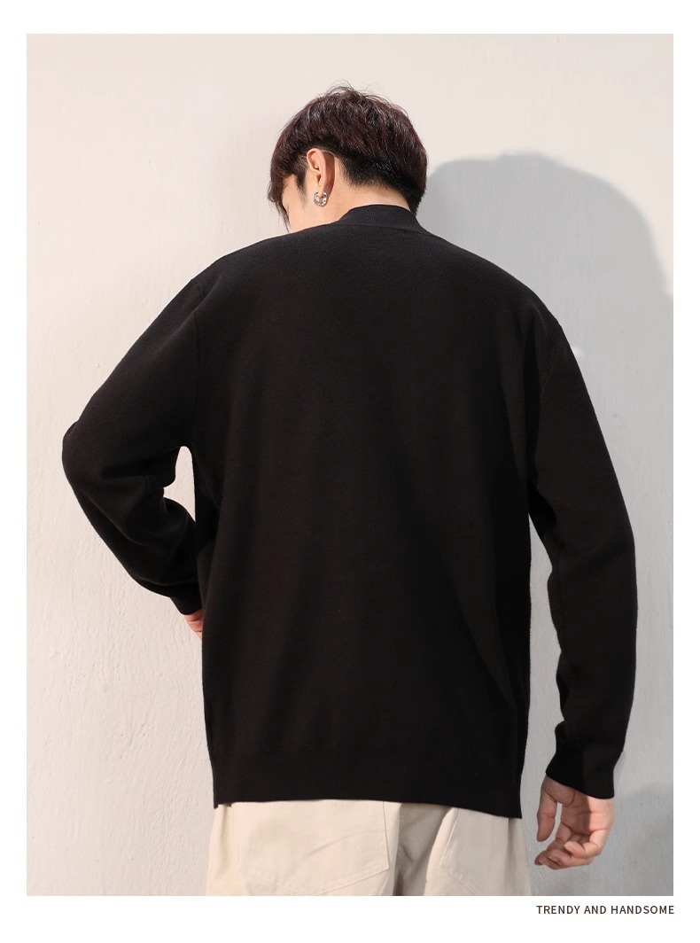 남자 단색 스웨터 2024 가을과 겨울 새로운 기모 두꺼운 따뜻한 칼라 검은 기본 셔츠 옷 조수스토어 가기