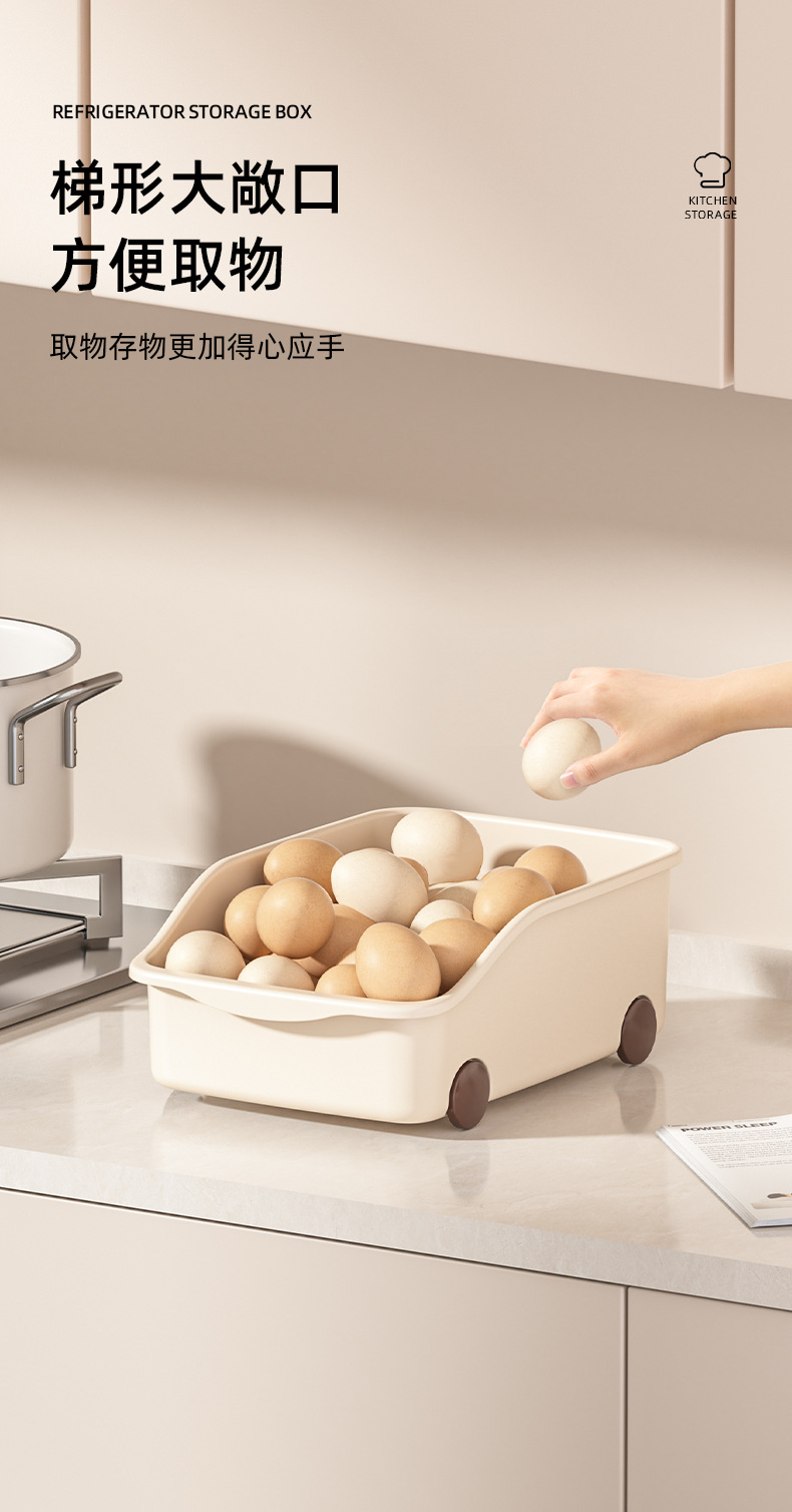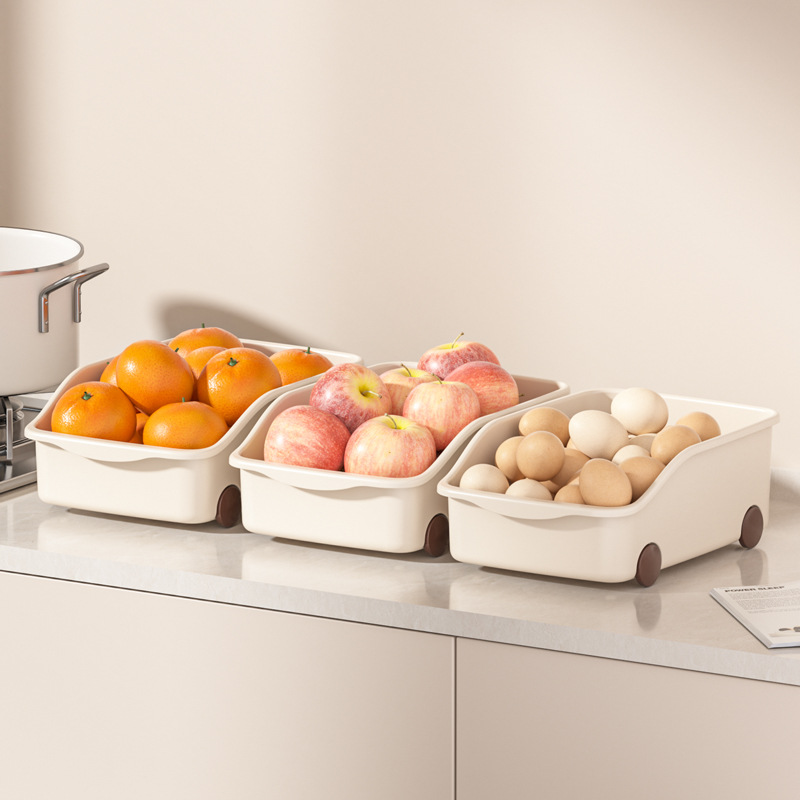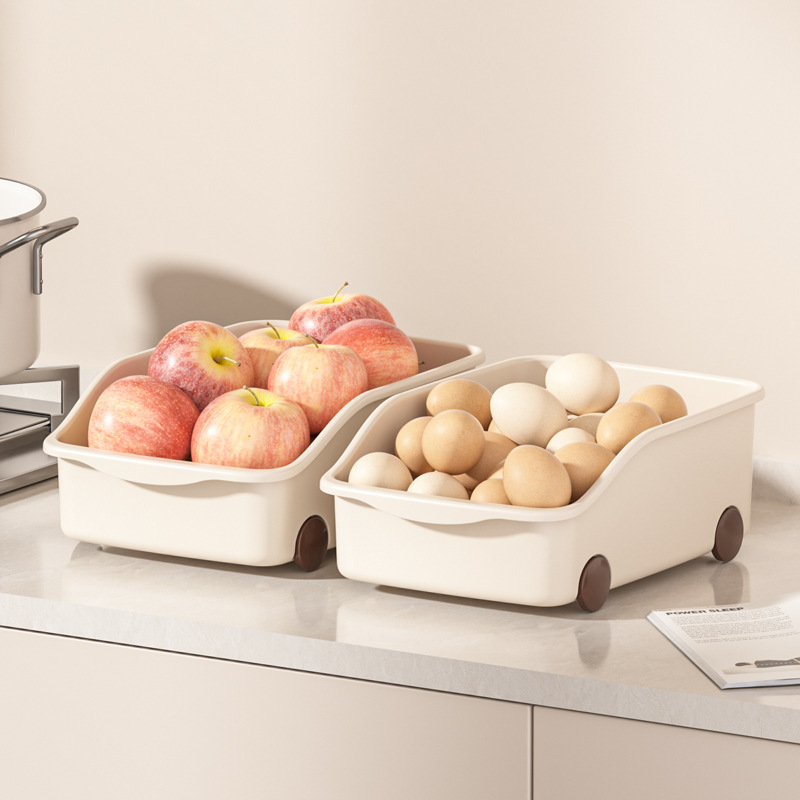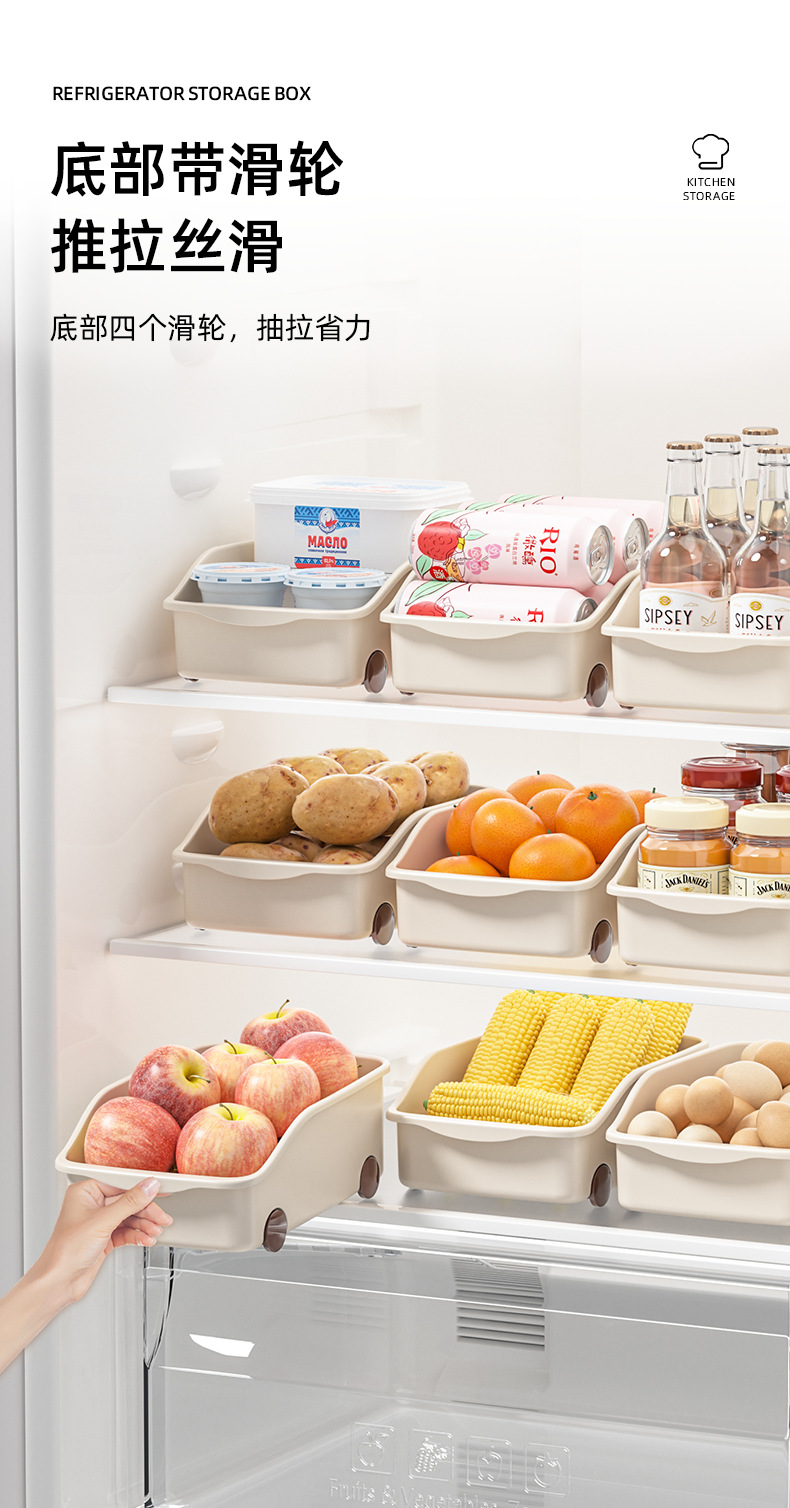25년형 신형 캐비닛 수납함 두꺼운 PP 소재 슬라이드 휠 부착 주방 냉장고 양념 보관함 수납함