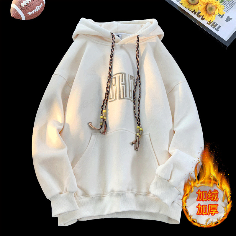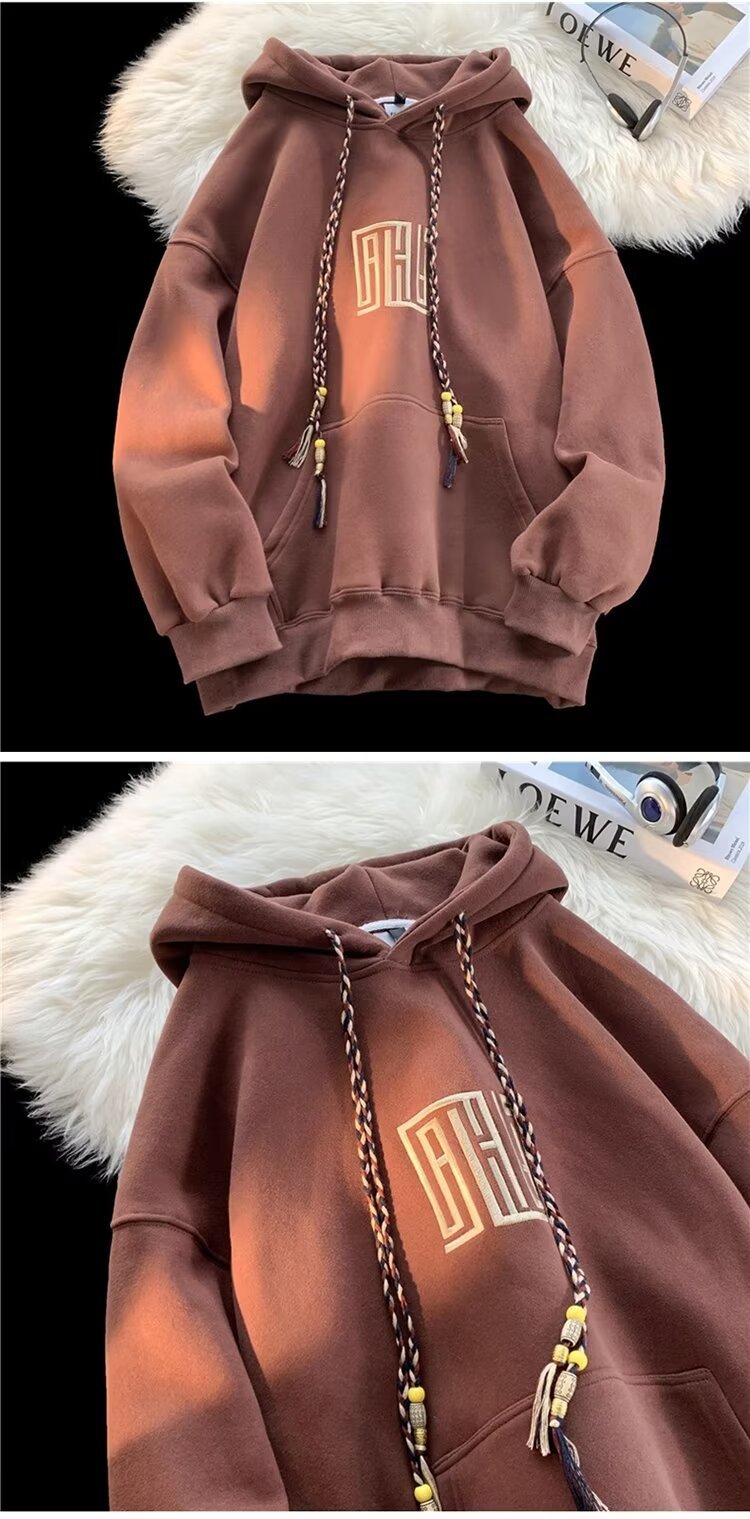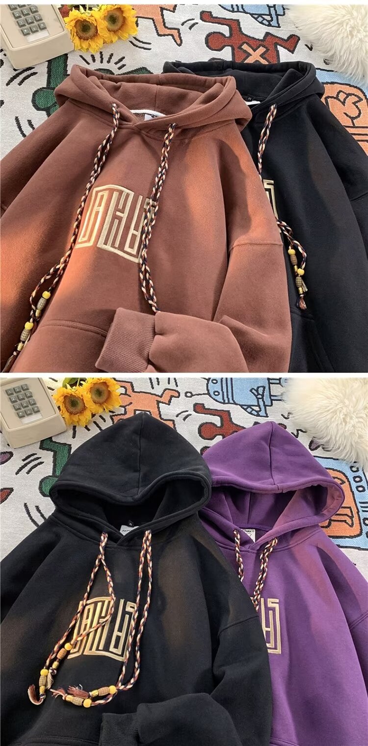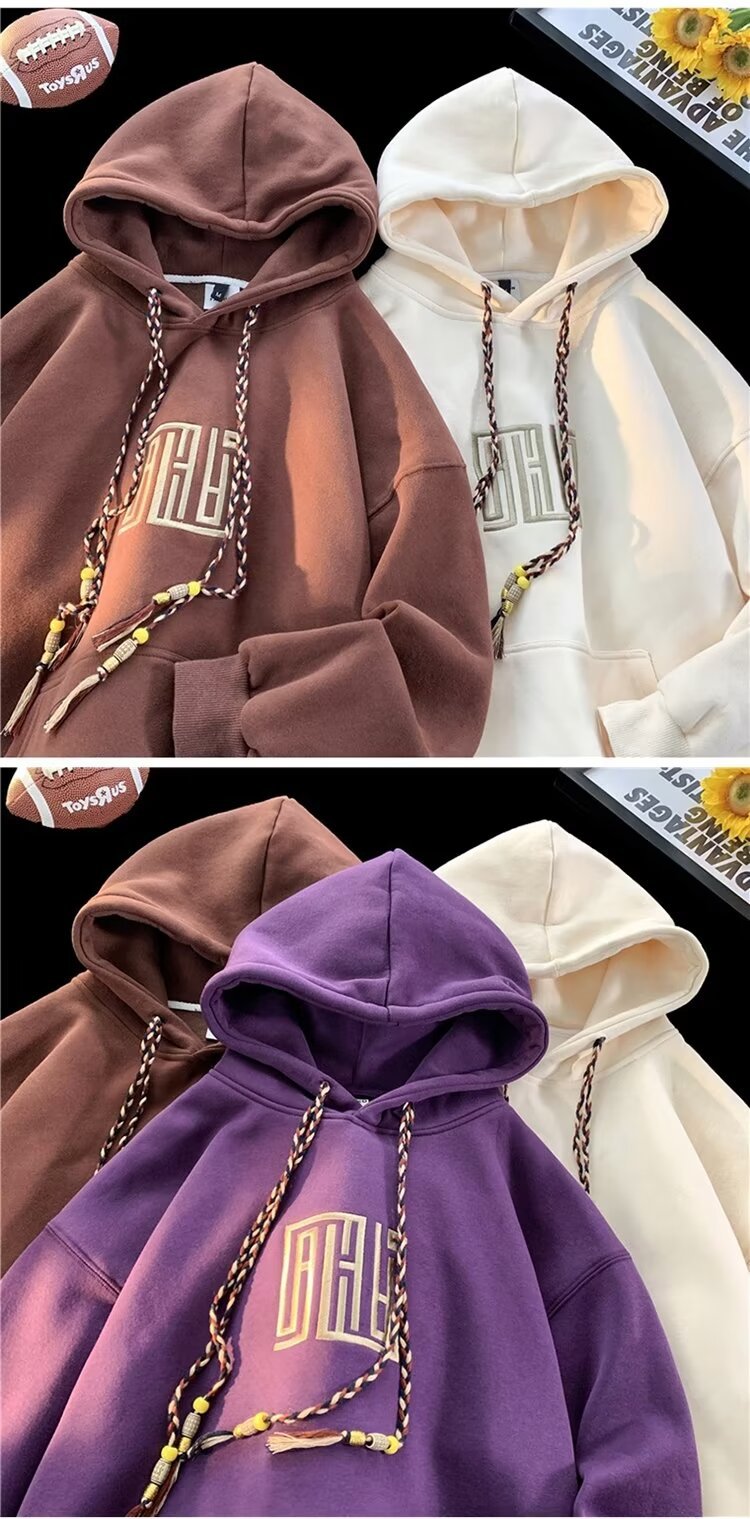 보라색 무거운 미국 후드 남성 스웨트 셔츠 가을과 겨울 새로운 자수 루즈 레트로 패션 브랜드 기모 따뜻한 재킷