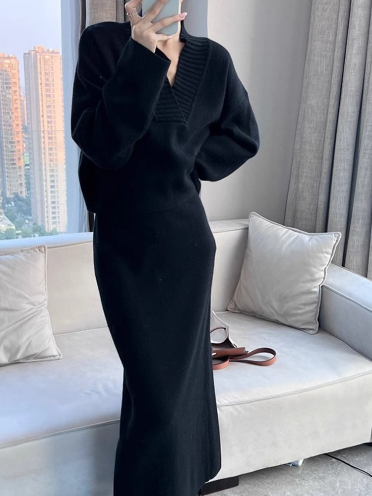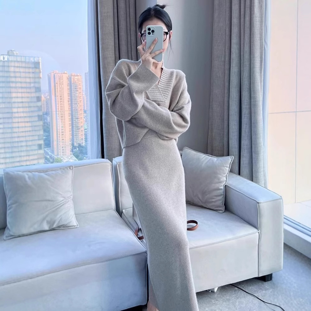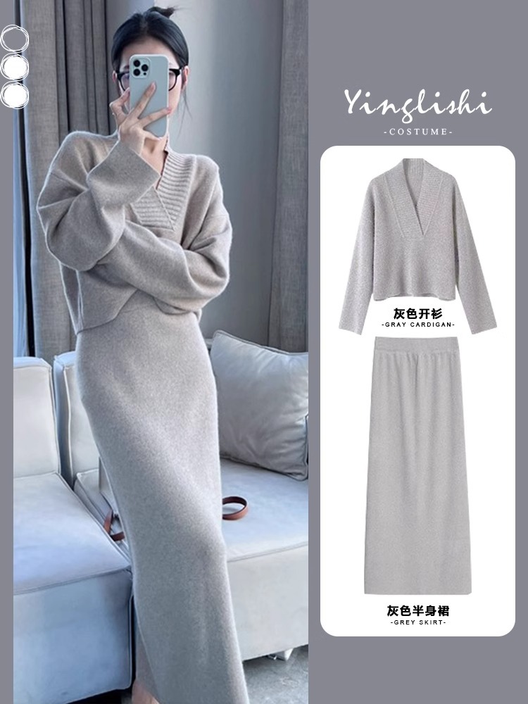 2025년 가을 여성 의류 차 스타일 패셔너블한 작은 향기 스타일 고급 니트 스웨터 정장 드레스스토어 가기