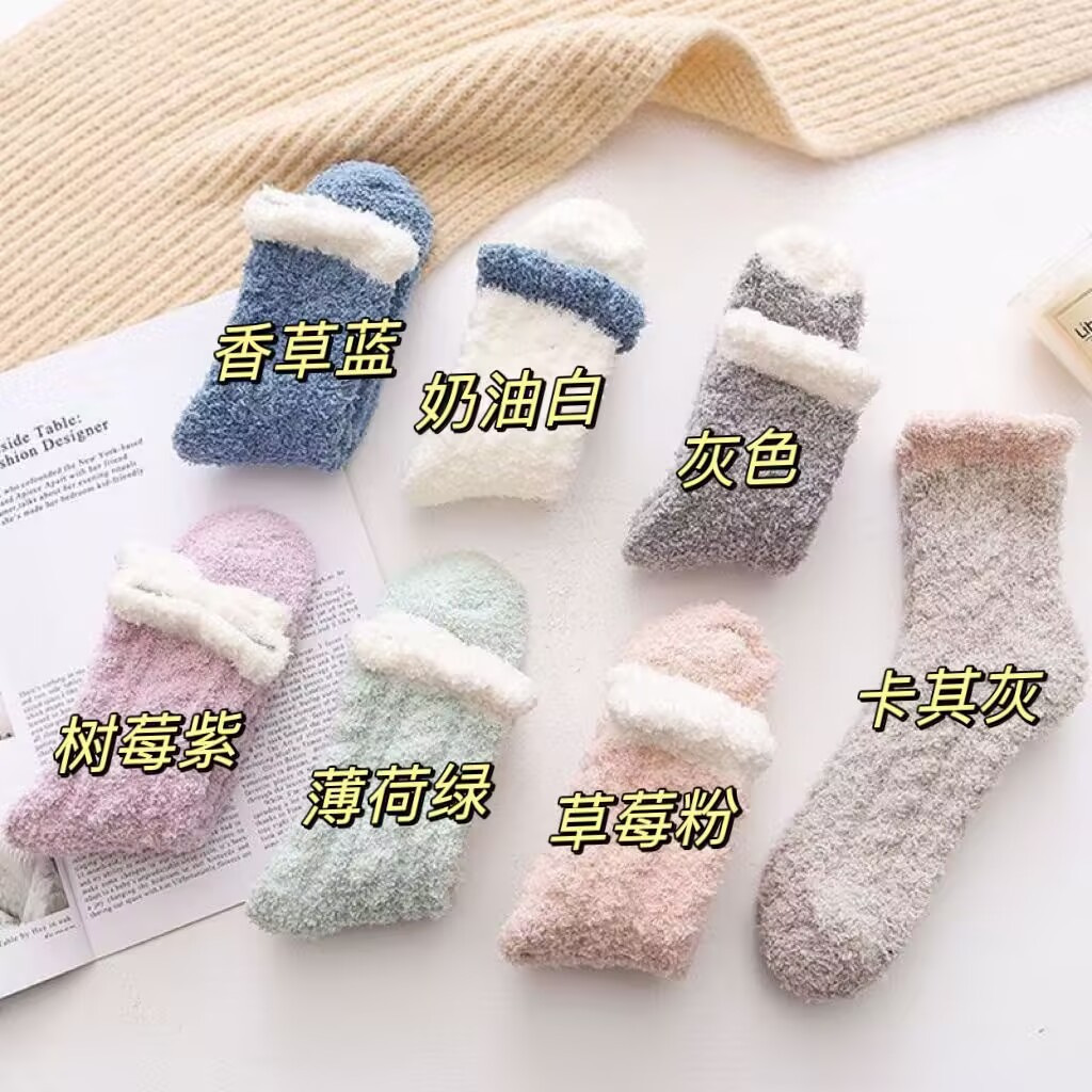 가을과 겨울 소녀 산호 양털 따뜻한 양말 어린이 기모 홈 탈취제 바닥 양말 방냉기 봉제 수면 문 양말