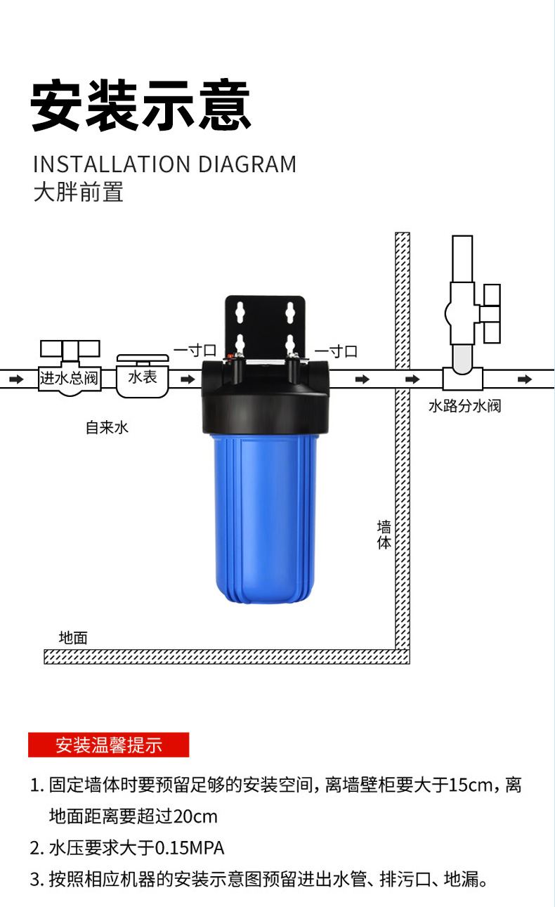 10 인치/20 인치 큰 지방 필터 병 전체 집 수돗물 정화 프론트 블루 병 큰 흐름 정수기 필터 병스토어 가기
