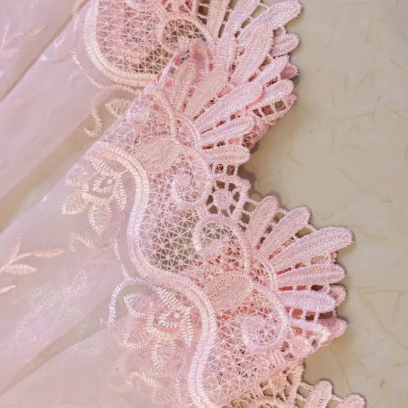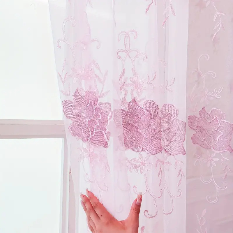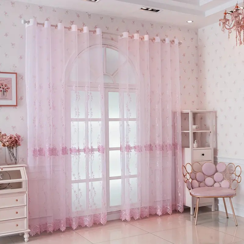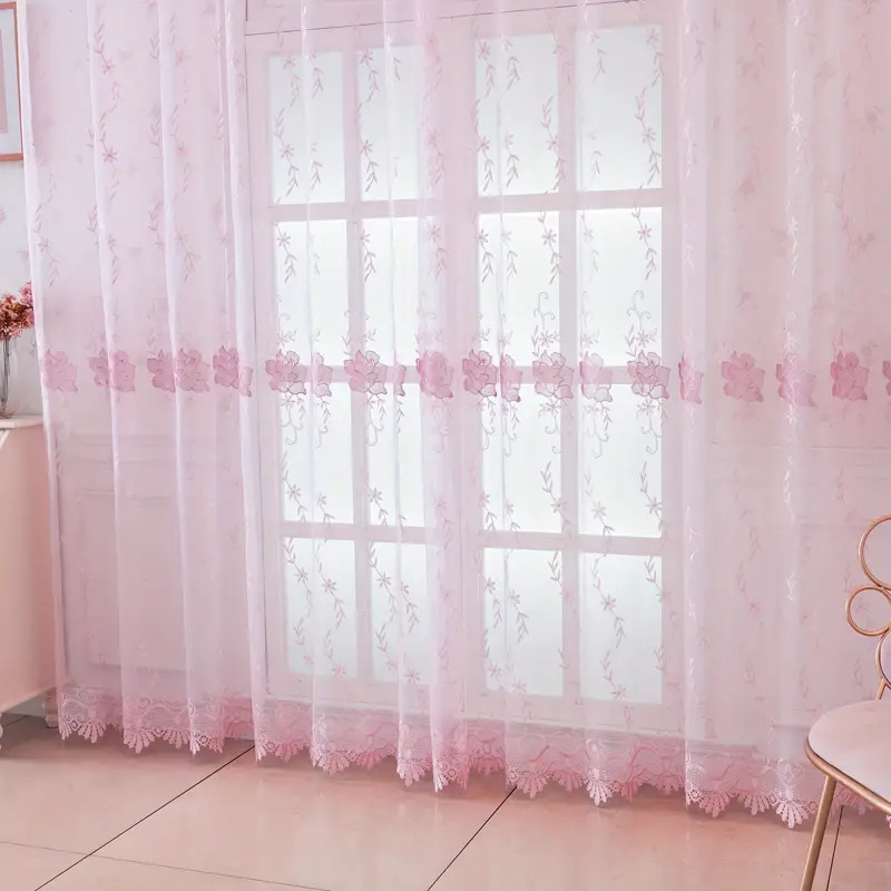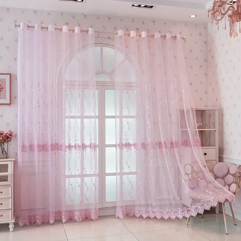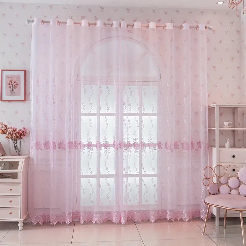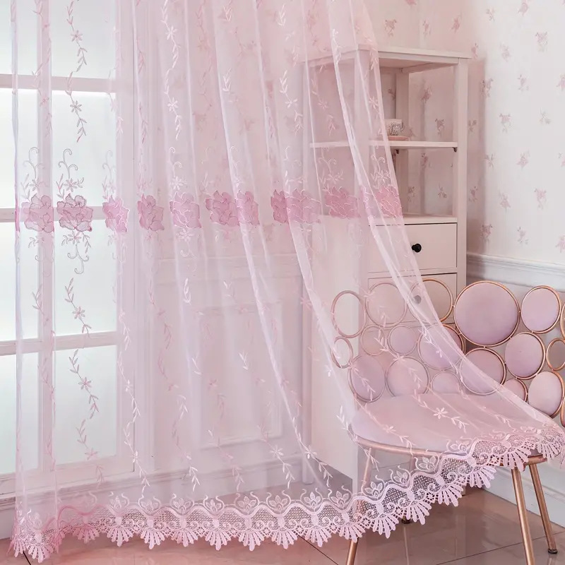 자수 수용성 핑크 창 화면 투명 커튼 거실 침실 발코니 국경 끝 커튼 공장 재고 도매스토어 가기