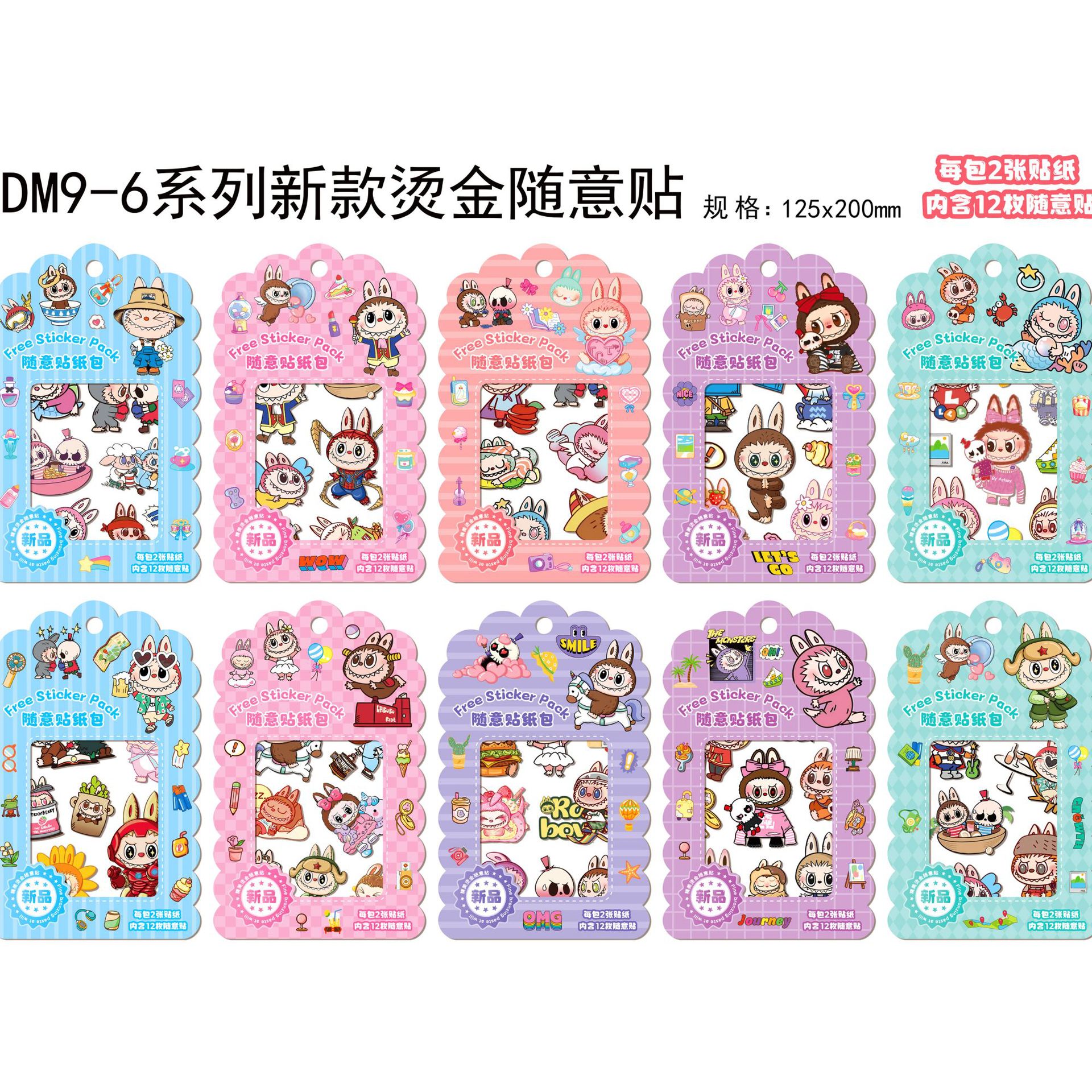 DM9-6 국경 간 새로운 Rabu Bronzing 랜덤 스티커 창조적 인 높은 가치 애완 동물 스티커 LABUBU 만화 스티커스토어 가기