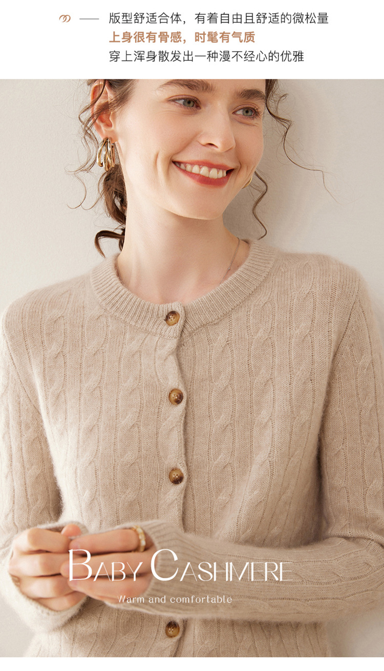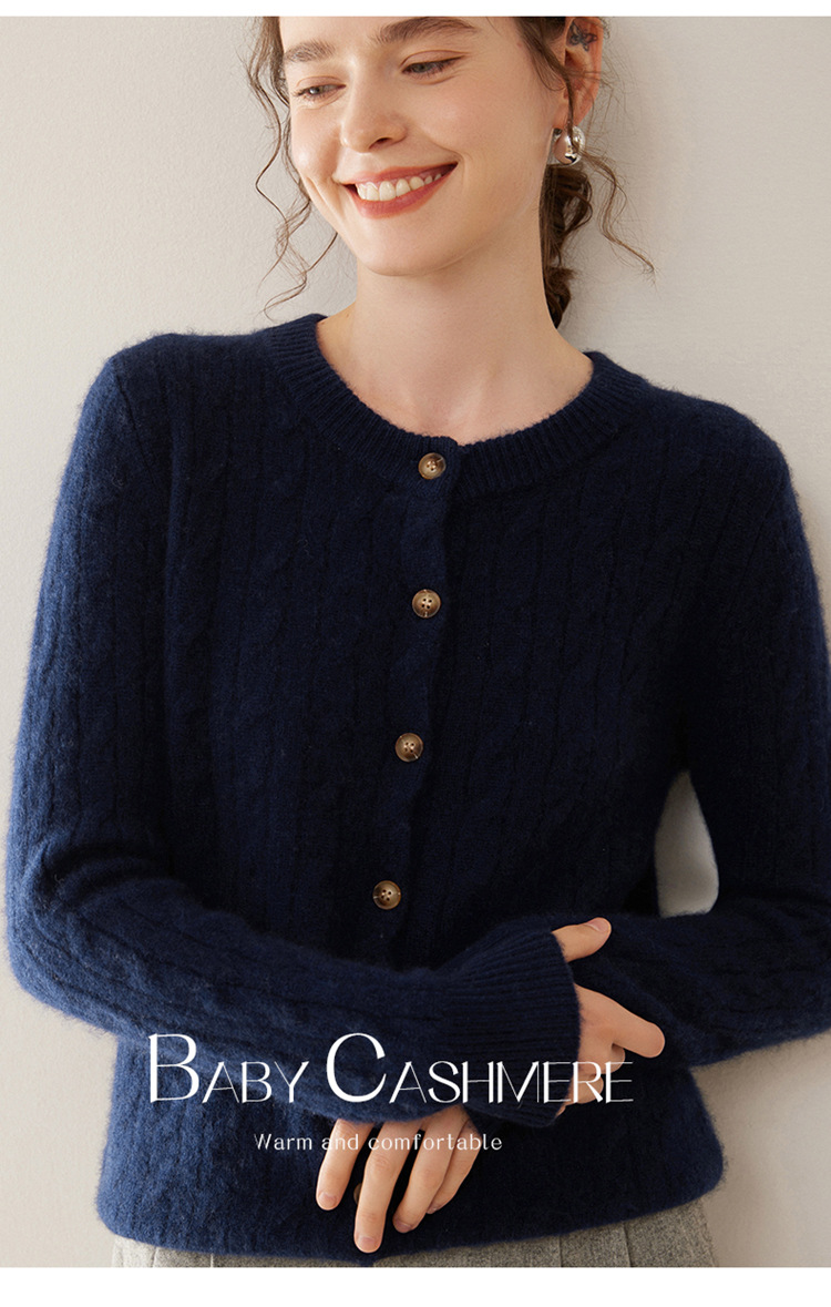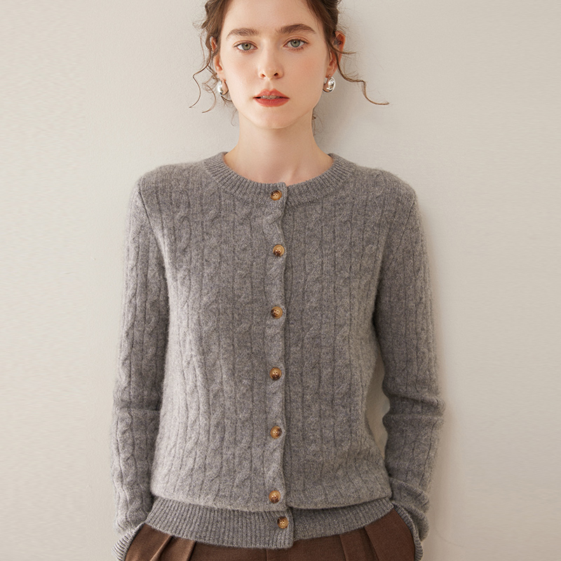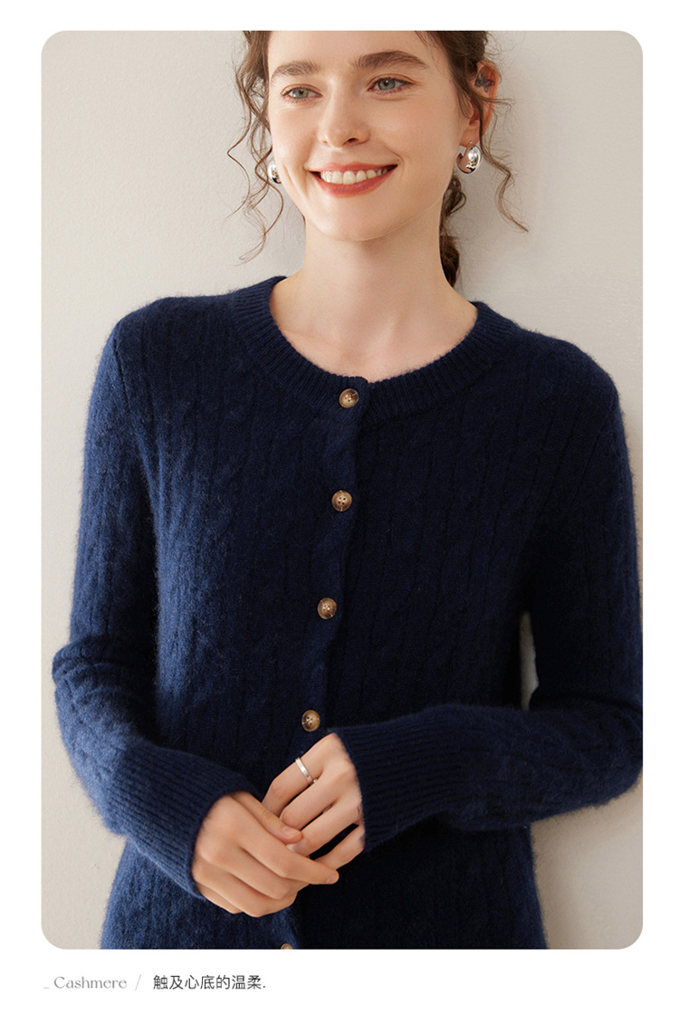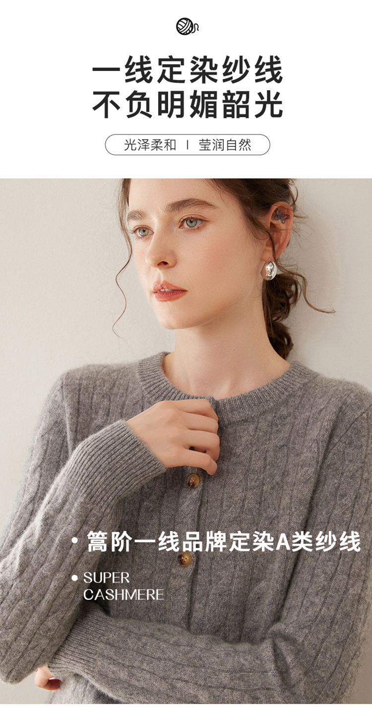 오르도스시 7침 이중사 두꺼운 100% 순수 캐시미어 여성용 스웨터, 라운드넥 가디건, 여성용 코트, 여성용 스웨터