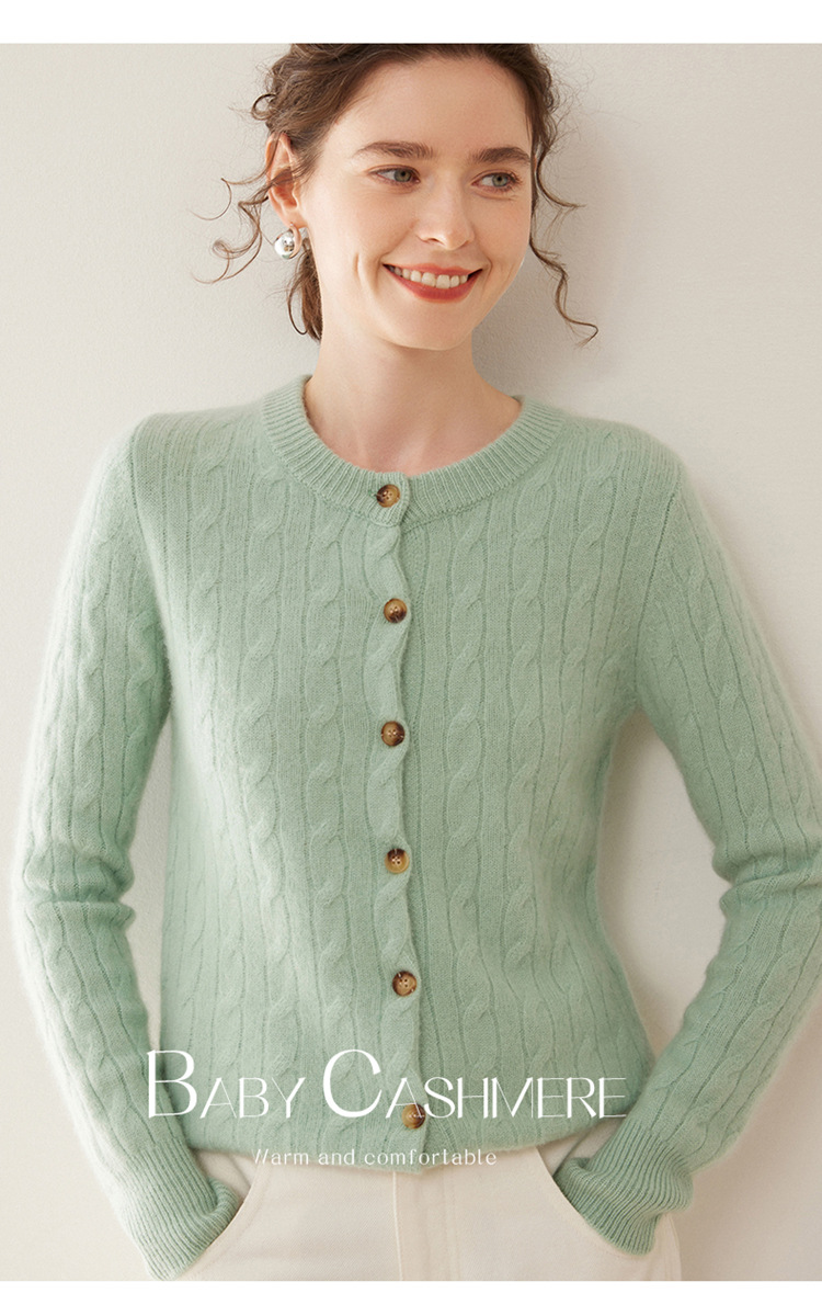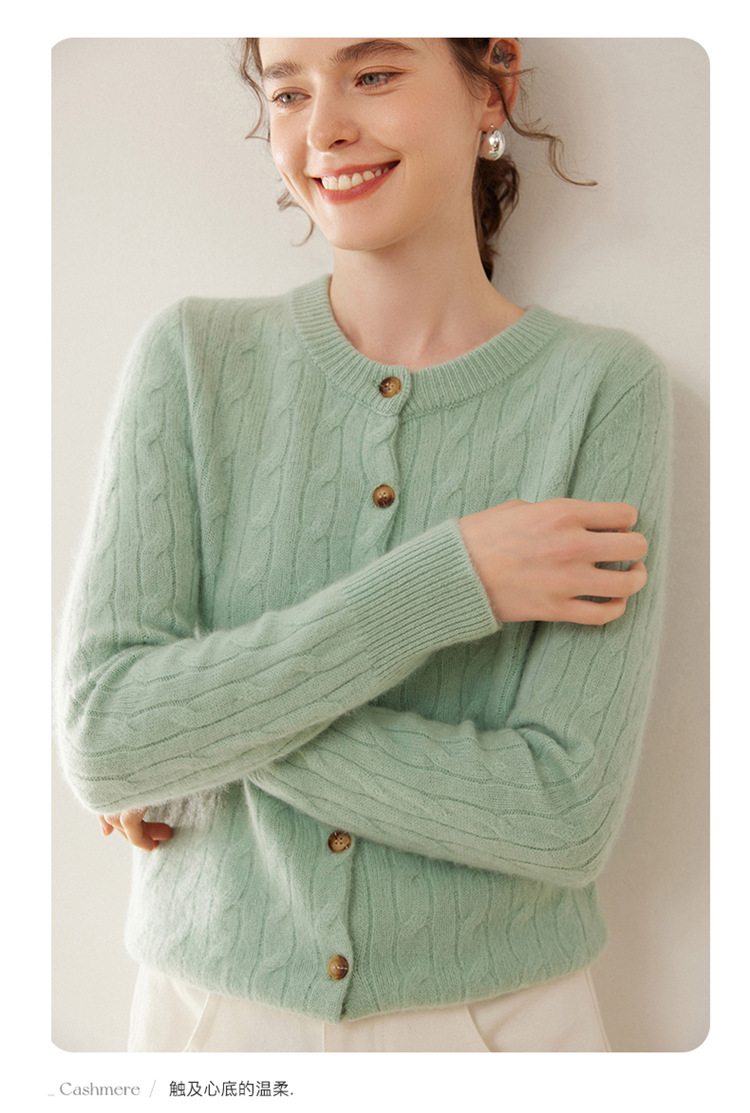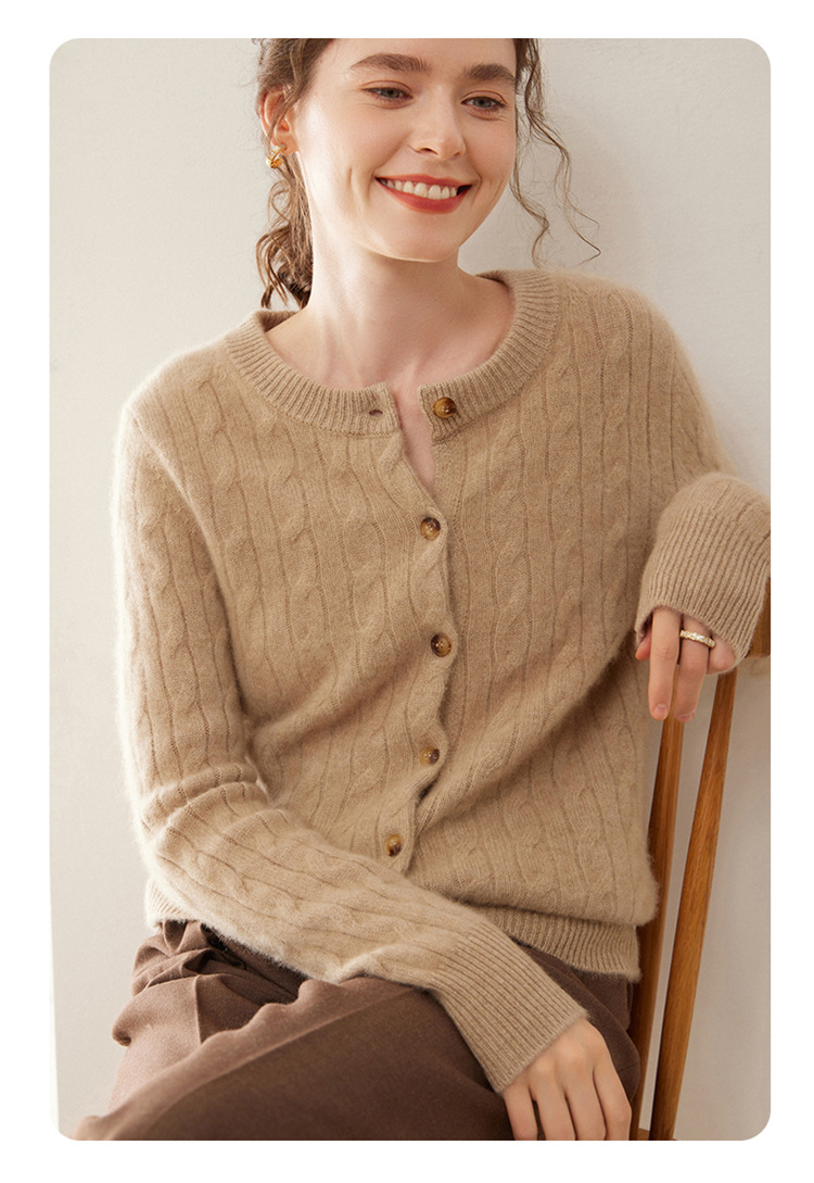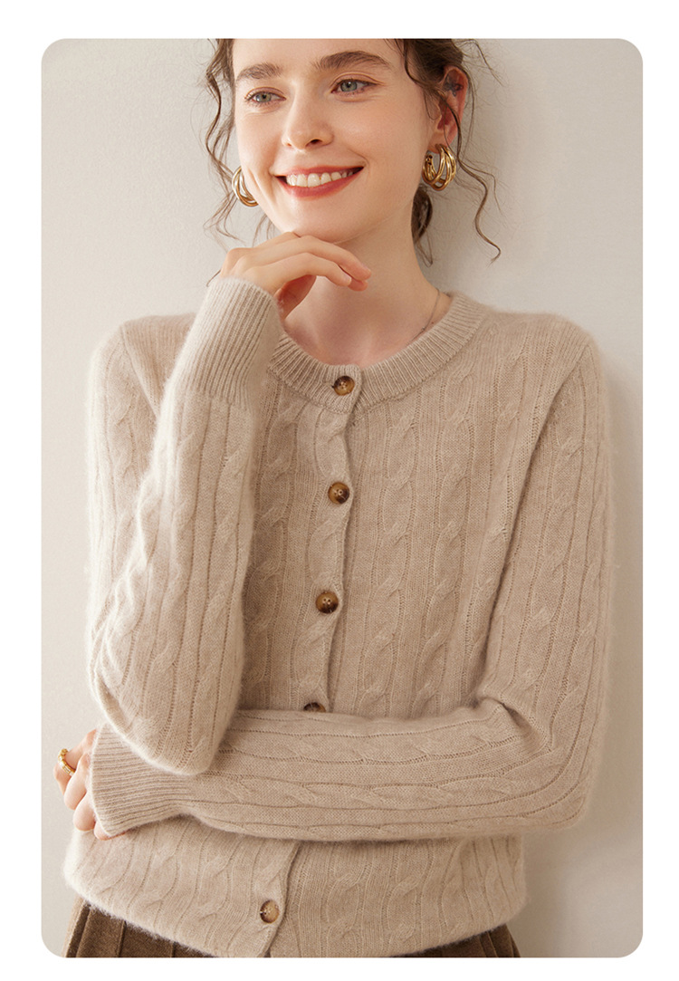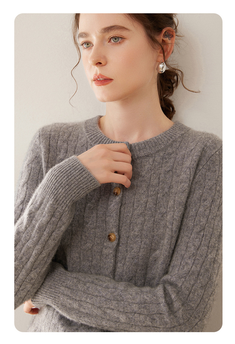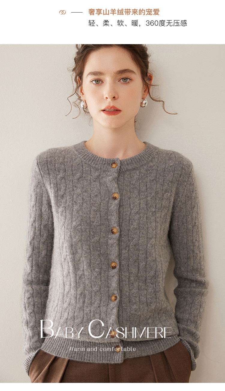 오르도스시 7침 이중사 두꺼운 100% 순수 캐시미어 여성용 스웨터, 라운드넥 가디건, 여성용 코트, 여성용 스웨터