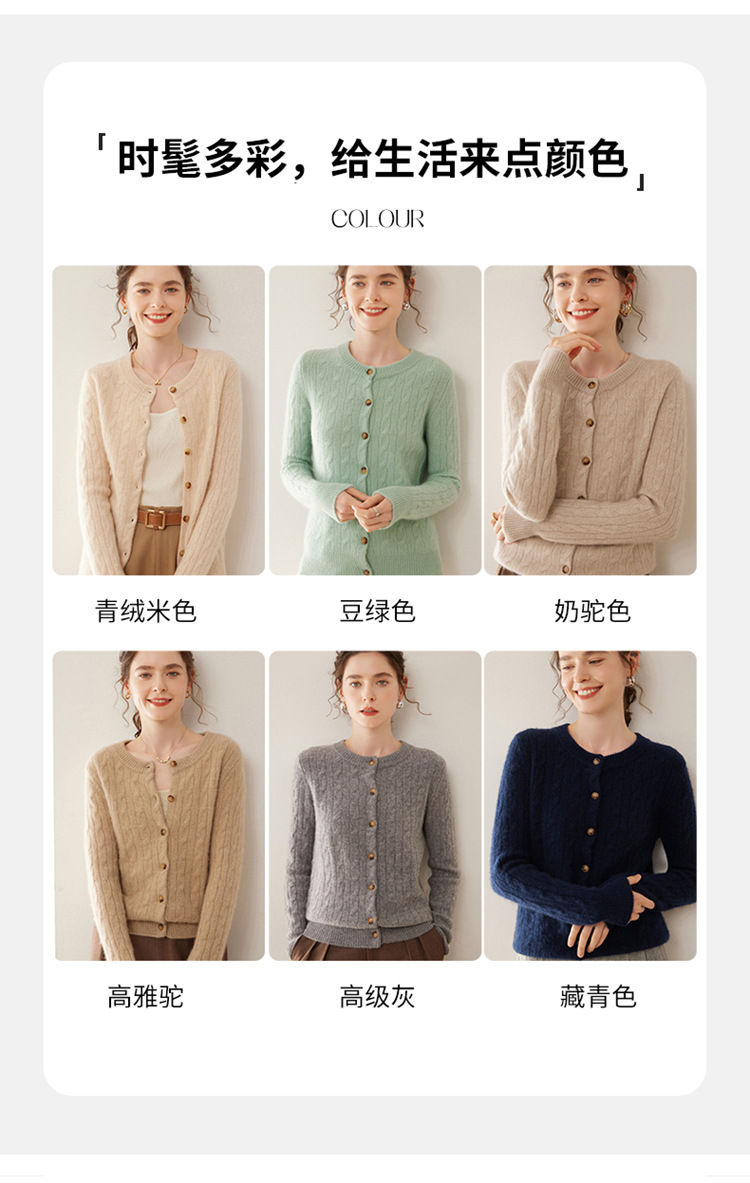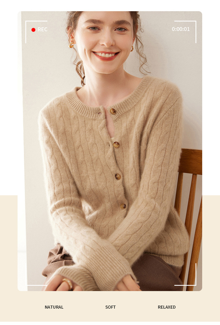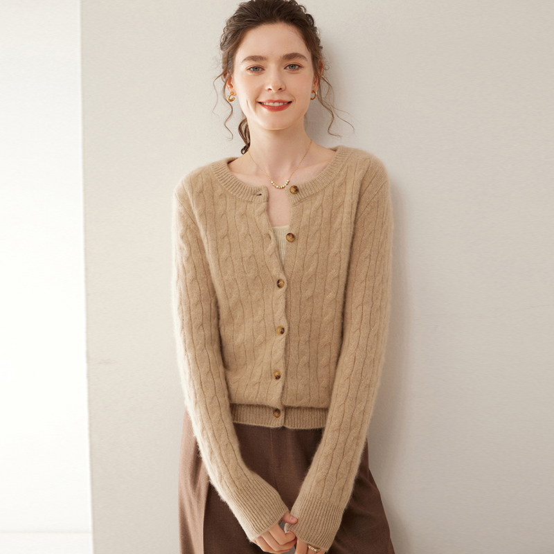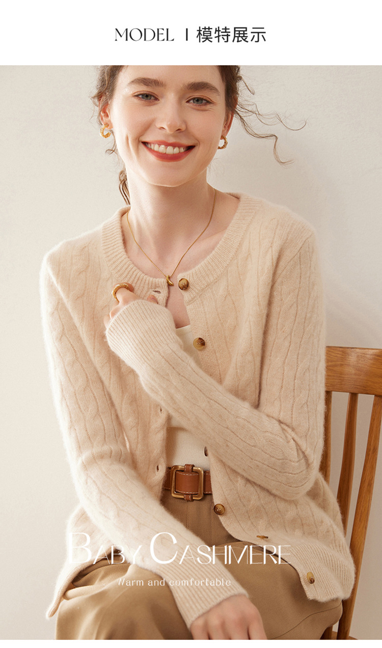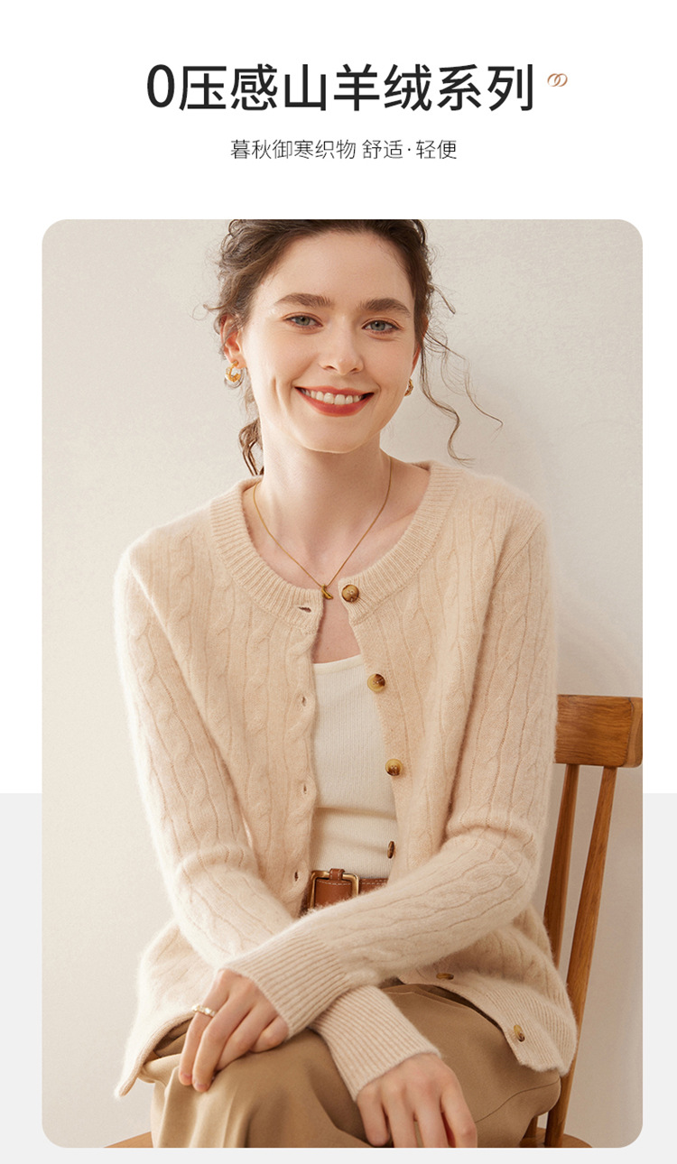 오르도스시 7침 이중사 두꺼운 100% 순수 캐시미어 여성용 스웨터, 라운드넥 가디건, 여성용 코트, 여성용 스웨터스토어 가기