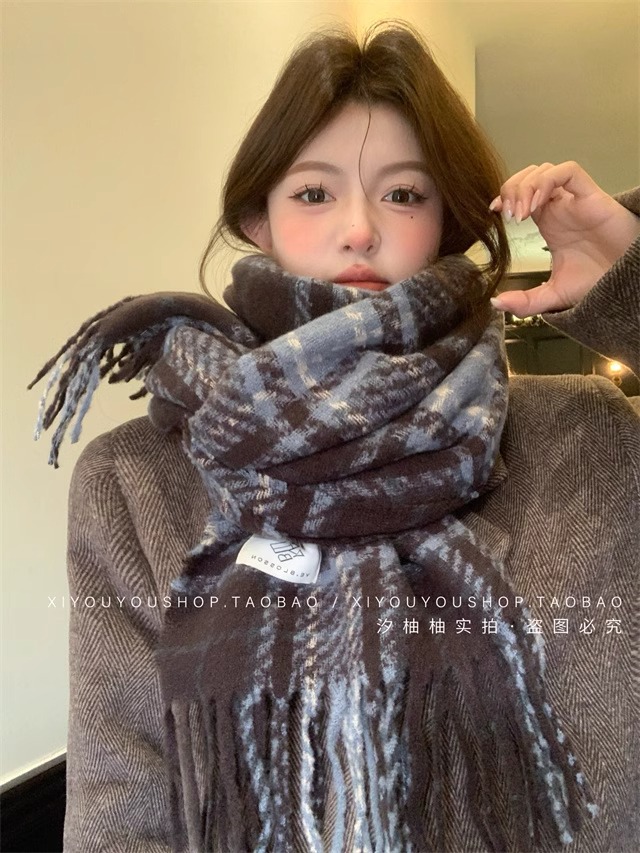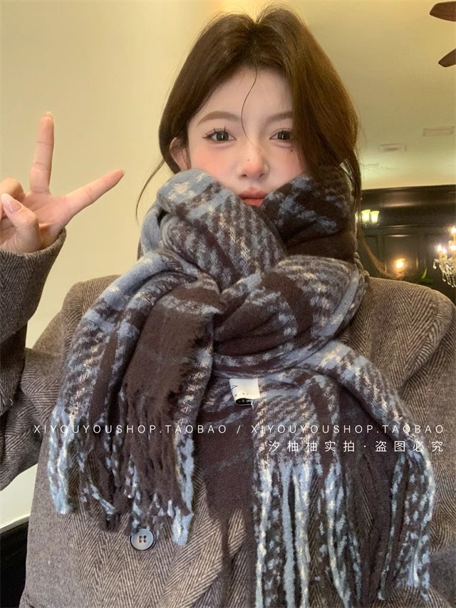 가을과 겨울 스카프 여자 2024 새로운 한국 패션 올 매치 분위기 두꺼운 긴 스카프 목도리 하이 엔드 감각스토어 가기