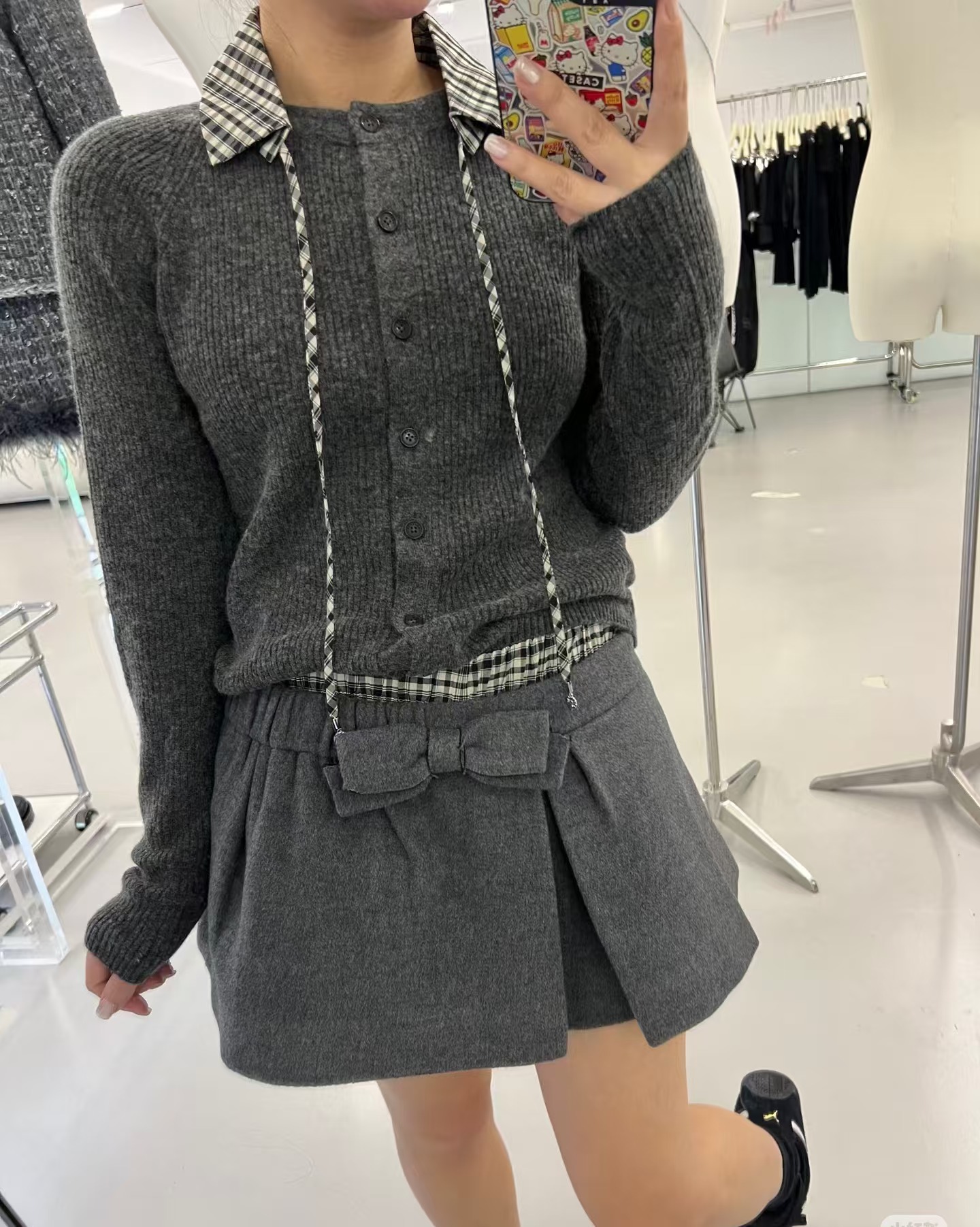 SHE U 13 라인 낮은 허리 양모 버드 불규칙한 스커트 24 가을/겨울 레깅스 활 짧은 치마
