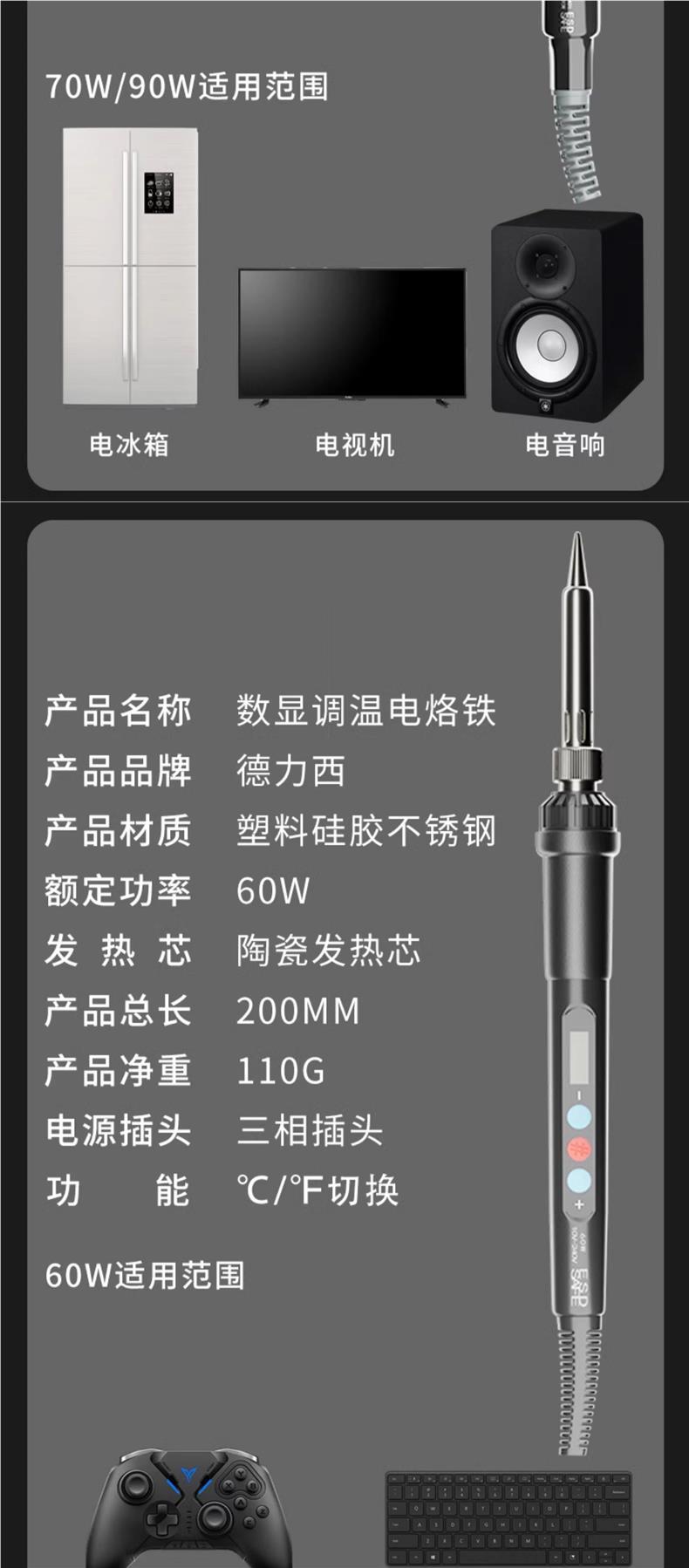 • 60w 지능형 온도 조절(디지털 디스플레이, 빠른 가열 및 일정한 온도)에는 [무료 화상 방지 커버]가 기본으로 제공됩니다.