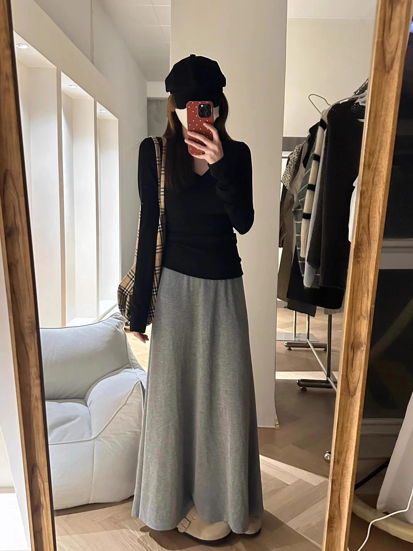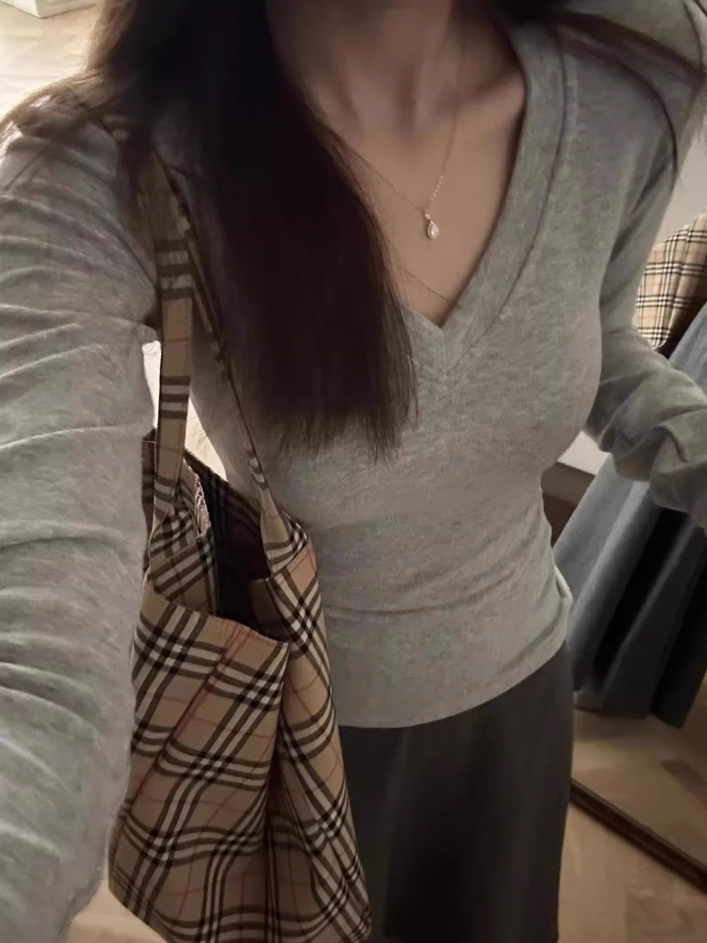 [팩토리 아울렛] 어깨 허리 라인 V 넥 긴 소매 티셔츠 여성용 가을 순수한 욕망 슬림 스파이스 소녀 타이트 내부 탑스토어 가기