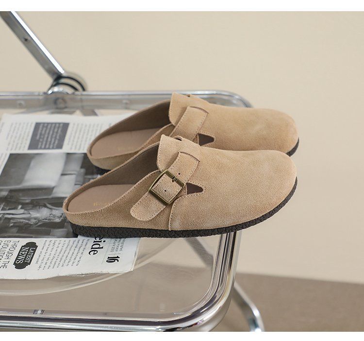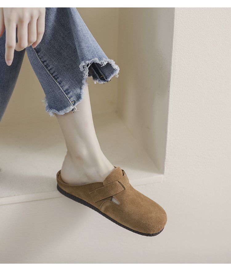 평평한 Birkenneth 신발 Baotou 슬리퍼 외부 착용 둥근 발가락 작은 가죽 신발 2024 가을 새 슬립 온 게으른 싱글 레이어 신발 여성용