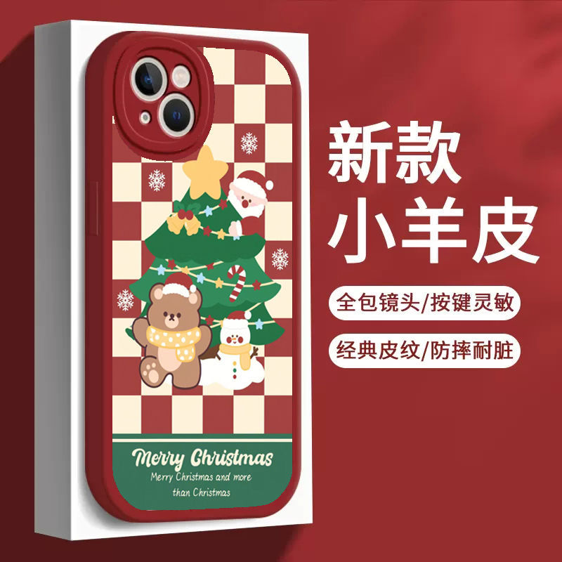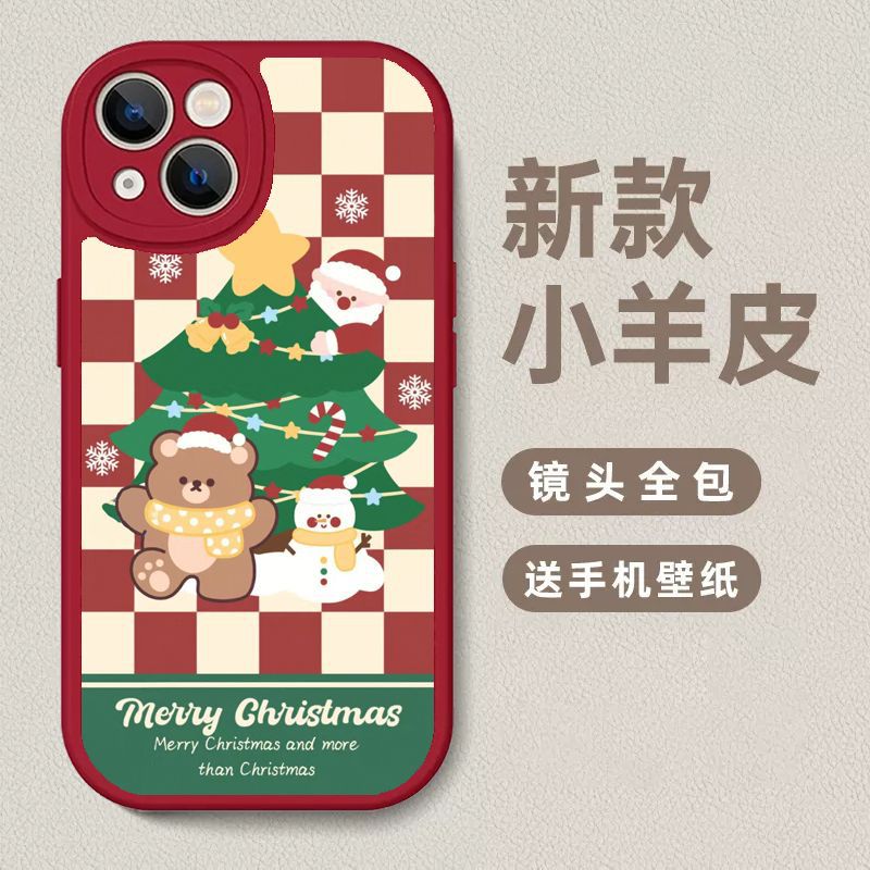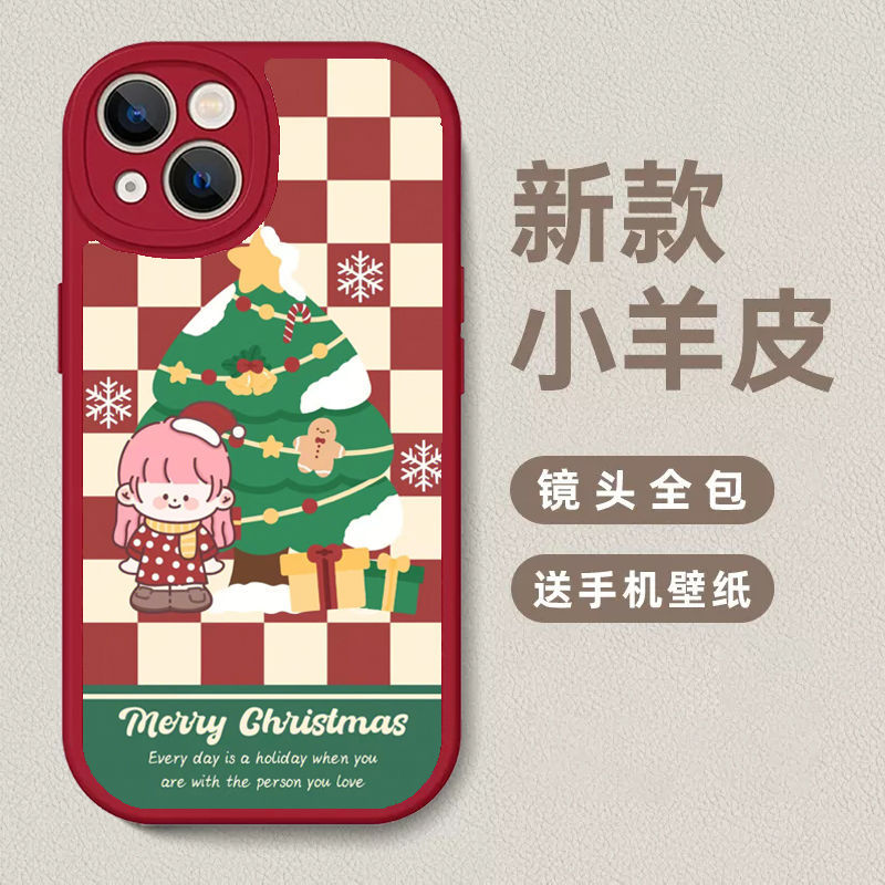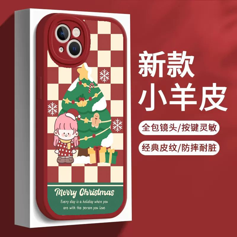 圣诞节女孩苹果16pro手机壳华为p50小羊皮手机壳15//14plus/13/12