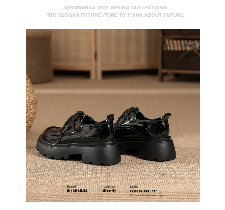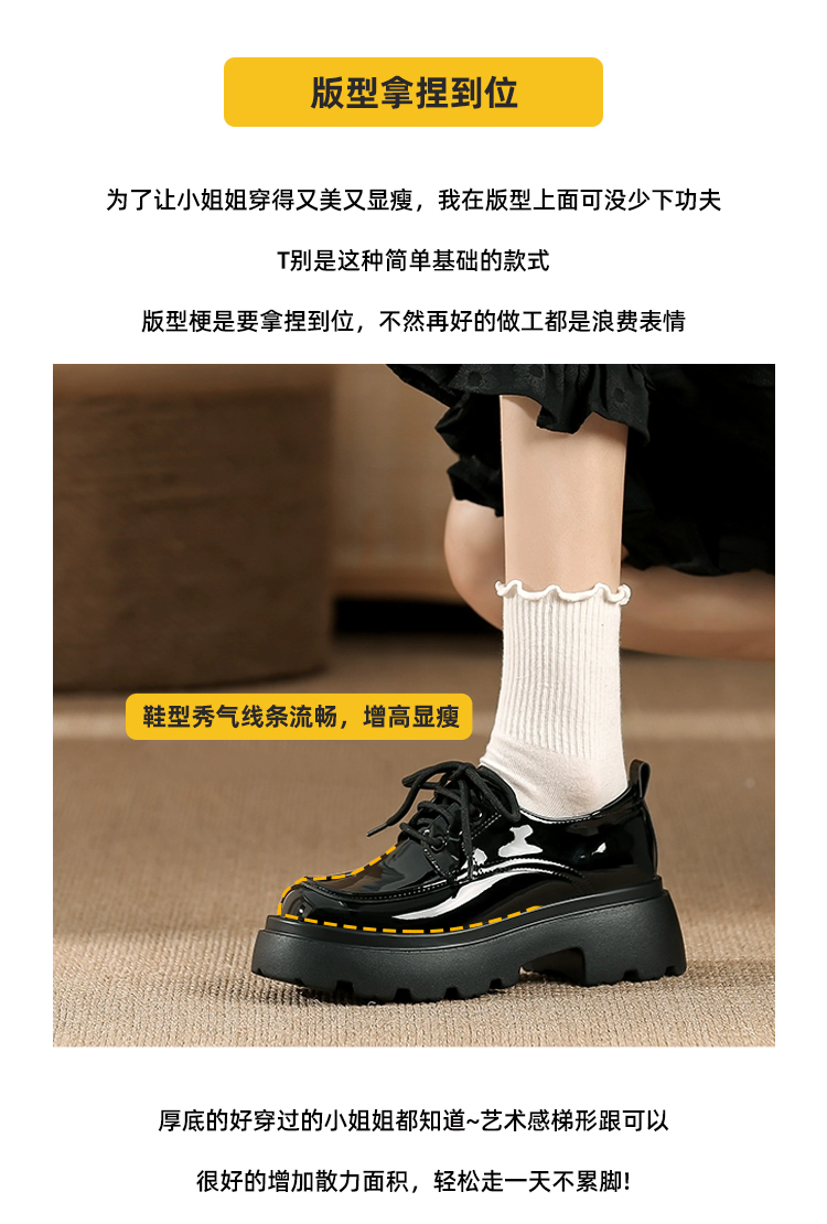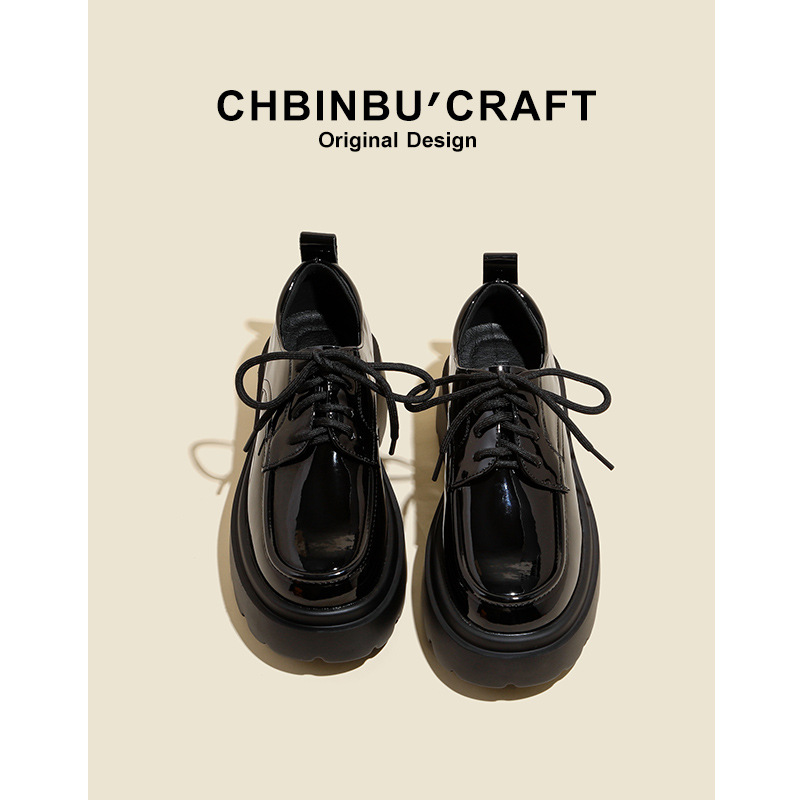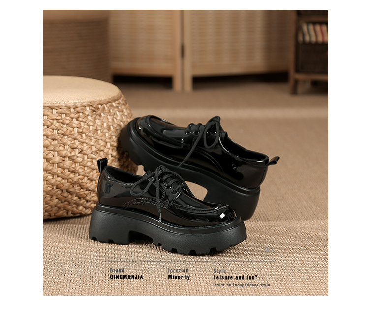 여성 두꺼운 밑창 로퍼 2025 새로운 봄과 가을 검은 색 특허 가죽 올 매치 두꺼운 밑창 영국식 가죽 작은 가죽 신발스토어 가기