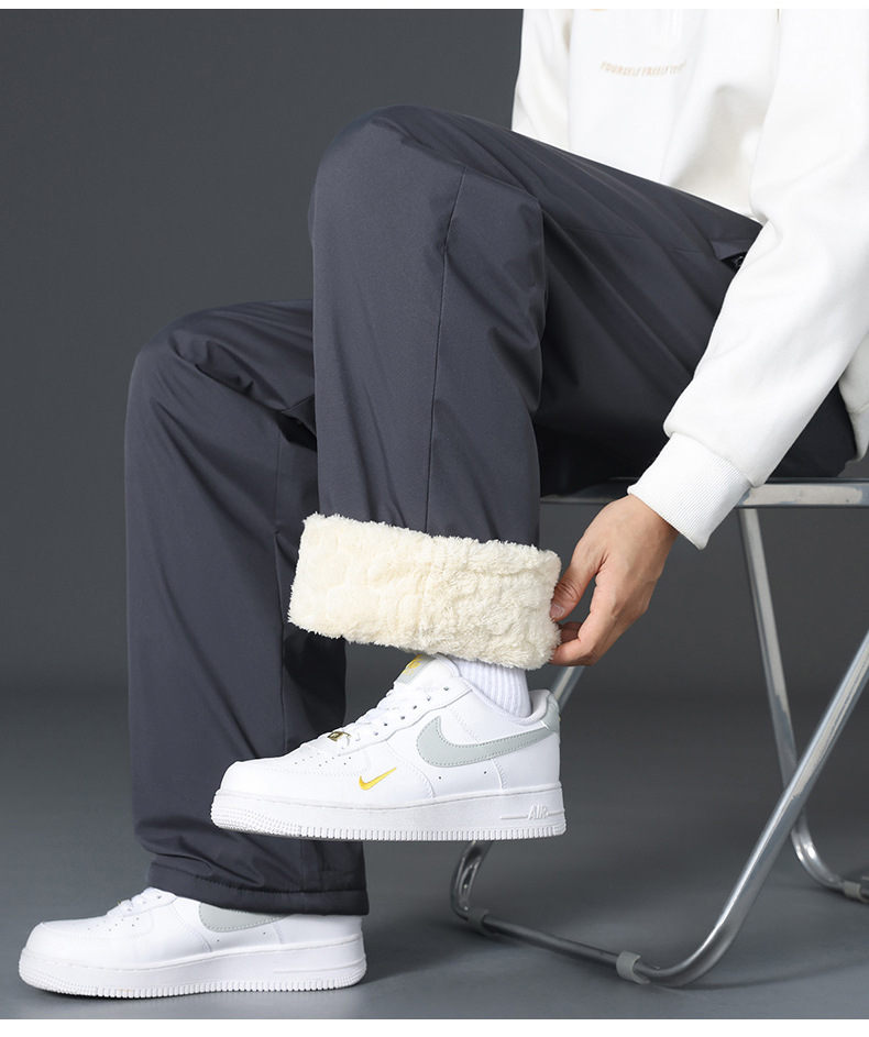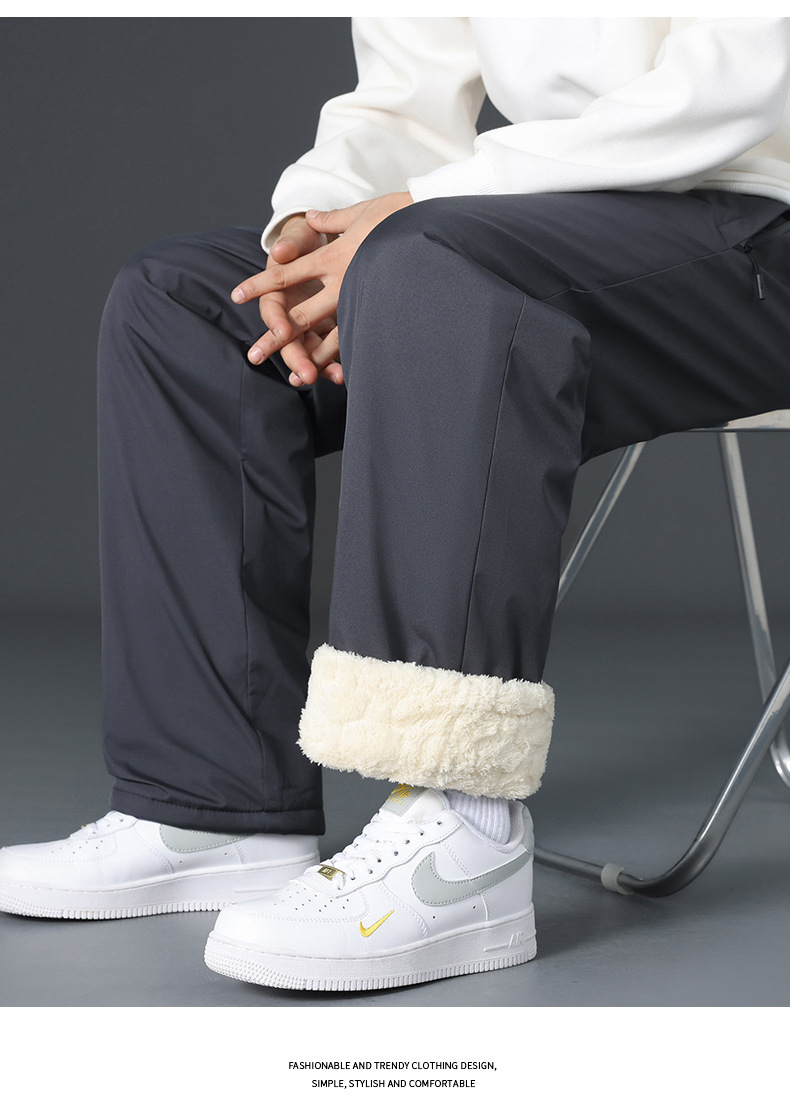 그래 핀 무릎 바지 남자의 겨울 외부 착용 기모 두꺼운 캐주얼 바지 겨울 눈 방풍 따뜻한 바지