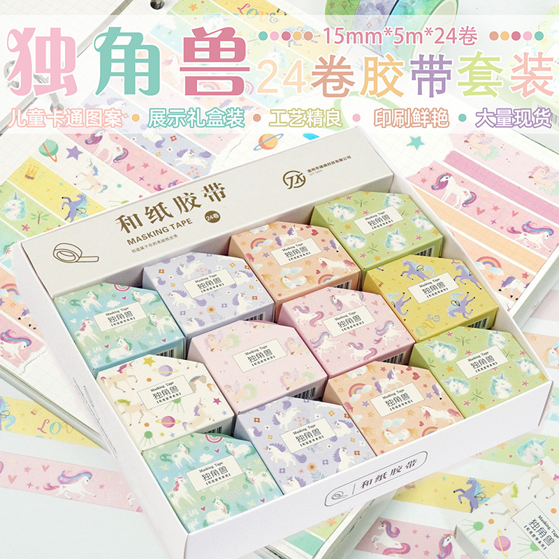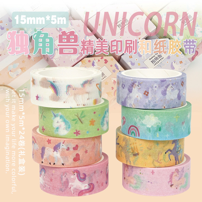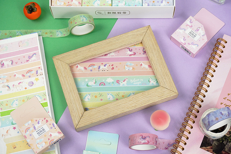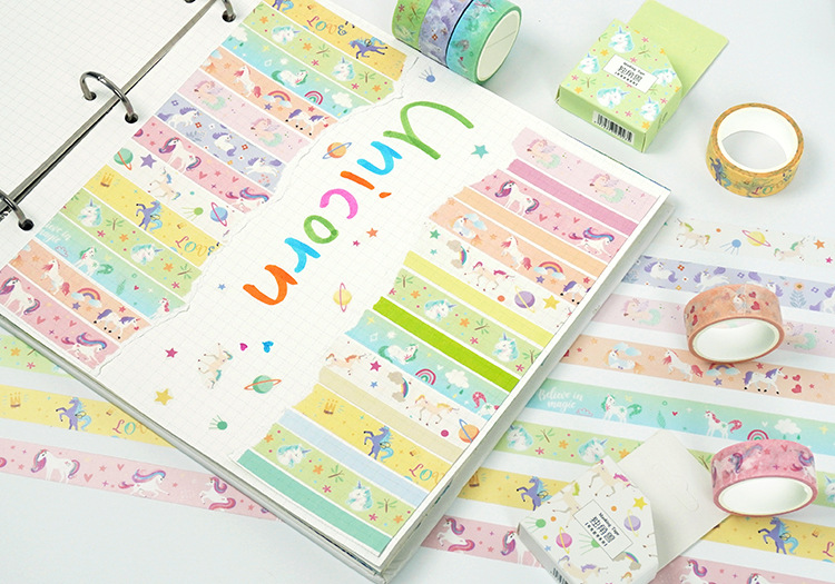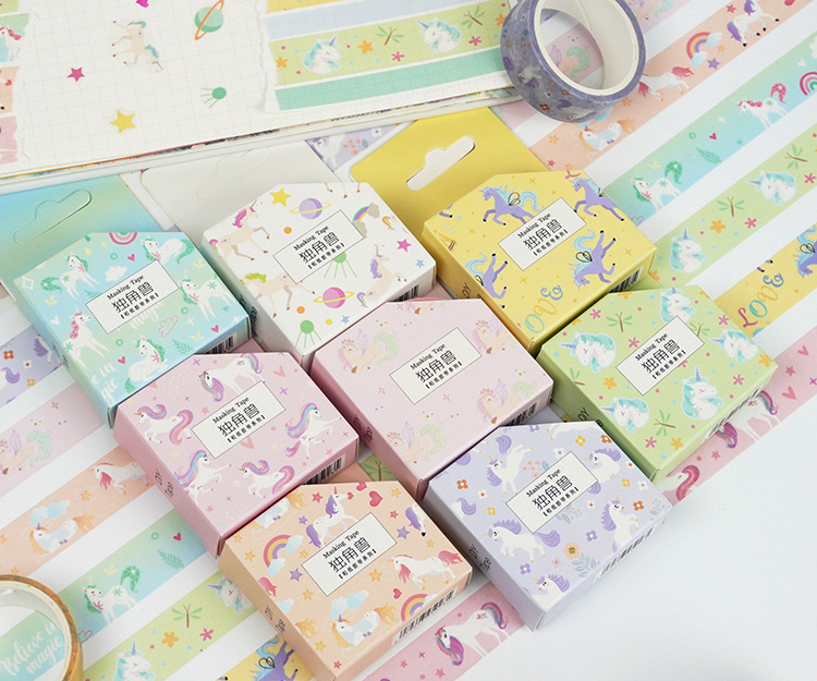 국경 도매 귀여운 컬러 유니콘과 종이 테이프 세트 아마존 공급 DIY 장식 손 계정 테이프스토어 가기