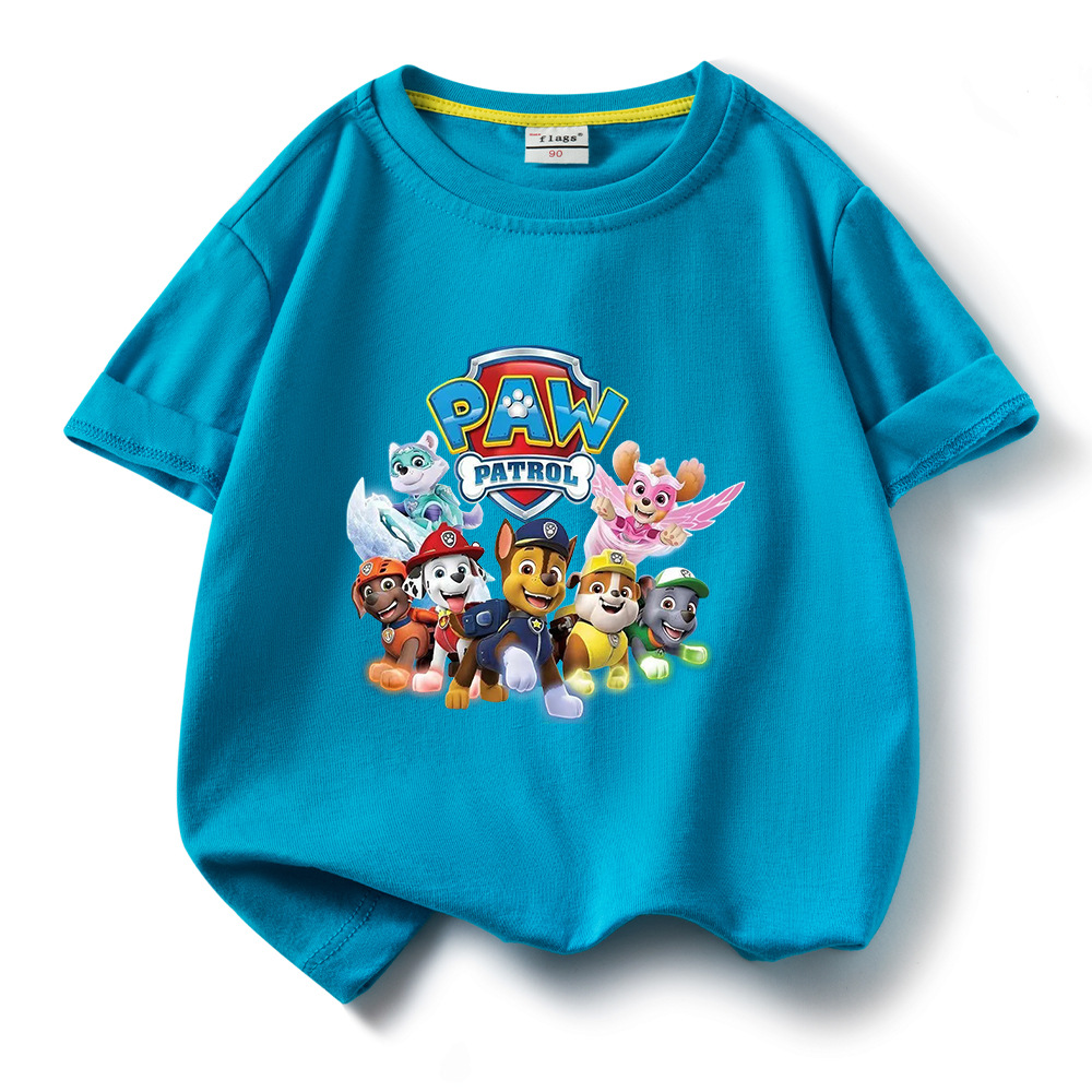 Paw Paw 팀 옷 소년과 소녀 티셔츠 어린이 반팔 탑 2025 새로운 패션 여름 순수 코튼 여름 티셔츠 T스토어 가기
