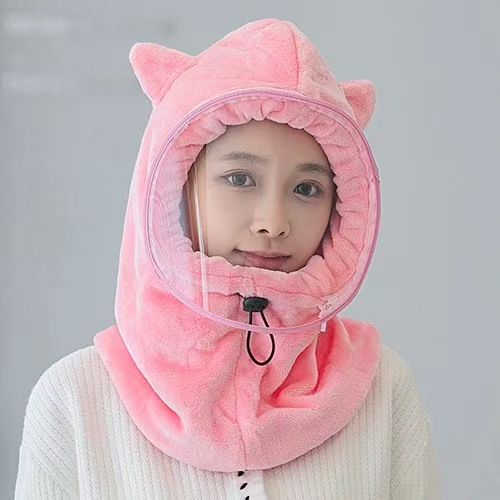 모자 여성의 가을과 겨울 방풍 방화 사이클 풀오버 모자 마스크 스카프 통합 귀 보호 기모 따뜻한 곰 모자