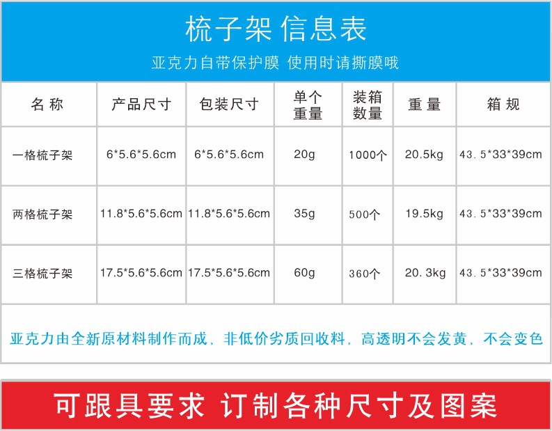 三格包装尺寸:17.5*5.6*5.6cm 重量: 60g