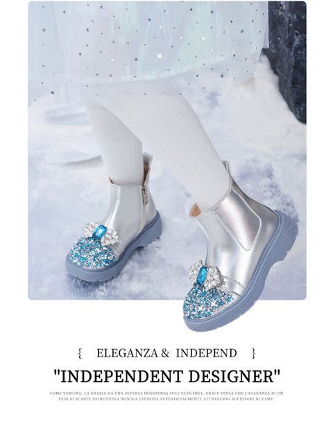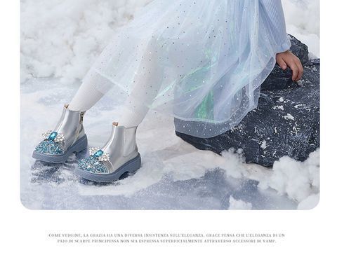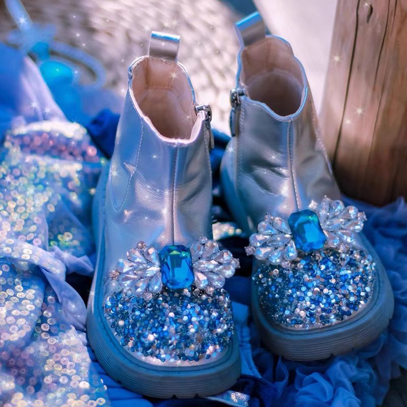 여자 마틴 부츠 아이샤 크리스탈 신발 부츠 짧은 부츠 2024 가을과 겨울 새로운 기모 두 면화 공주 바람 가죽 부츠