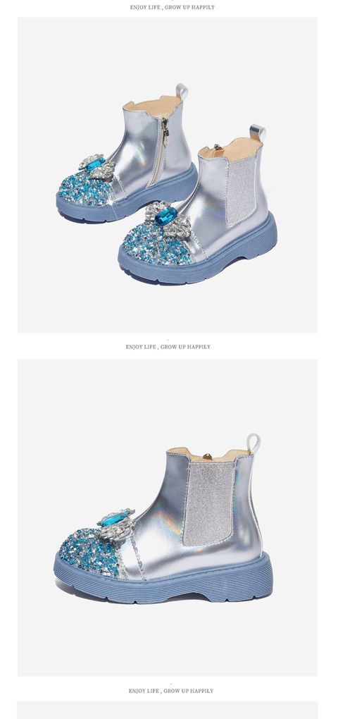 여자 마틴 부츠 아이샤 크리스탈 신발 부츠 짧은 부츠 2024 가을과 겨울 새로운 기모 두 면화 공주 바람 가죽 부츠스토어 가기