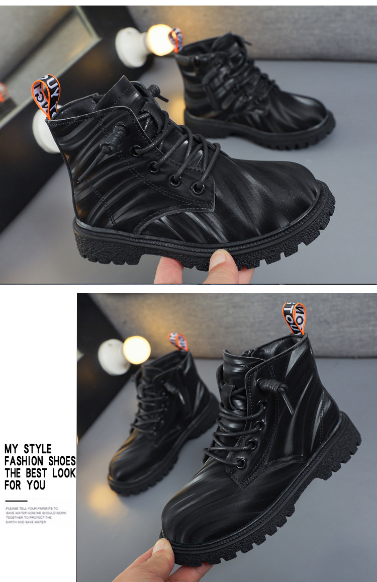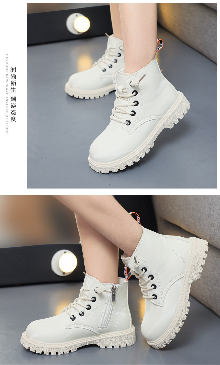 마틴 부츠 어린이 코튼 부츠 소년 2024 겨울 새 양모 따뜻한 두꺼운 가죽 마틴 부츠
