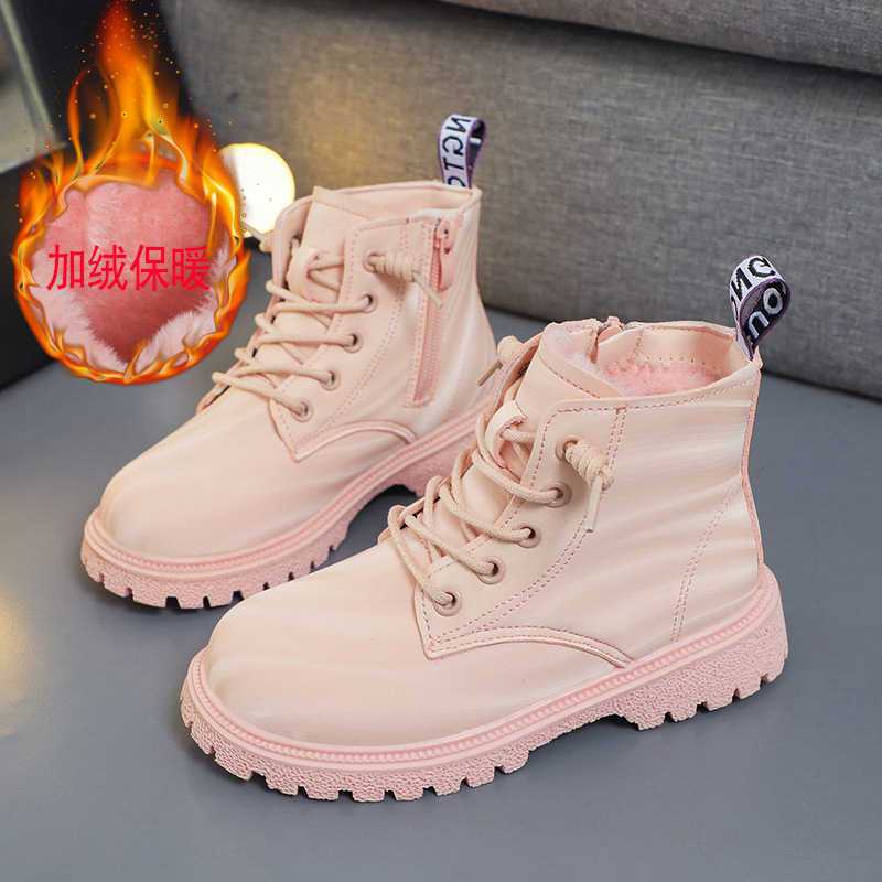 마틴 부츠 어린이 코튼 부츠 소년 2024 겨울 새 양모 따뜻한 두꺼운 가죽 마틴 부츠스토어 가기