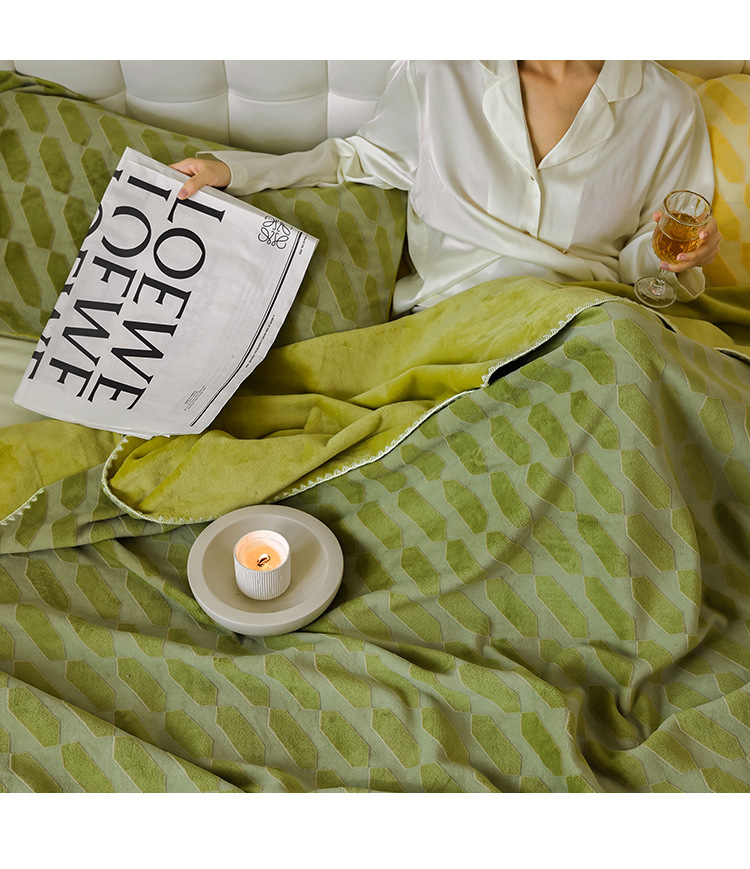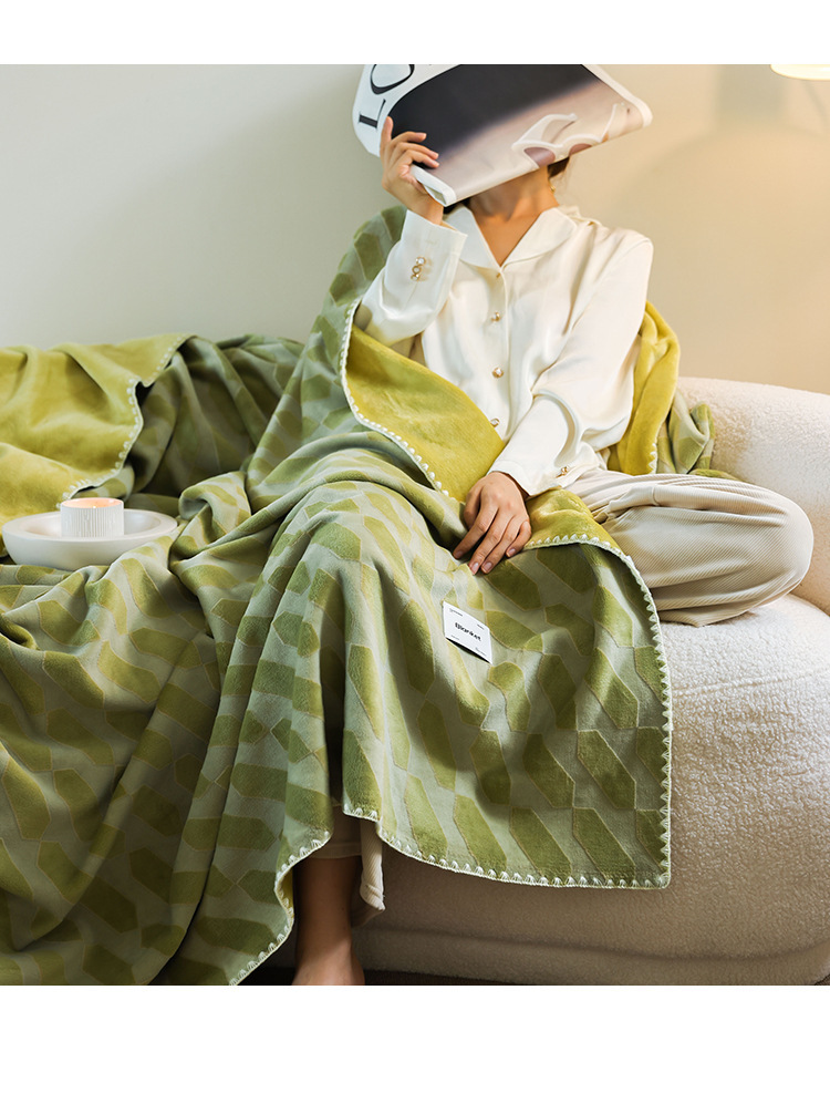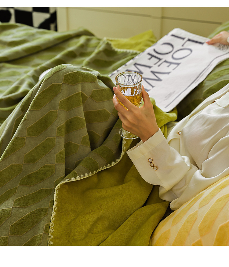 • 입체적으로 썩은 양털 담요-파파야 그린-부구