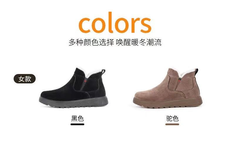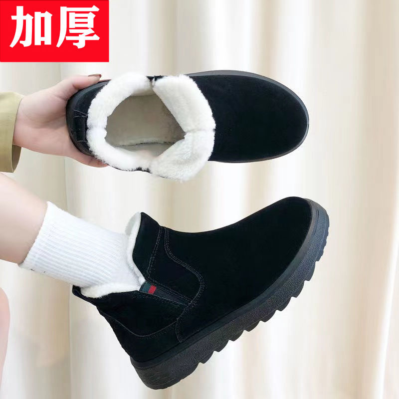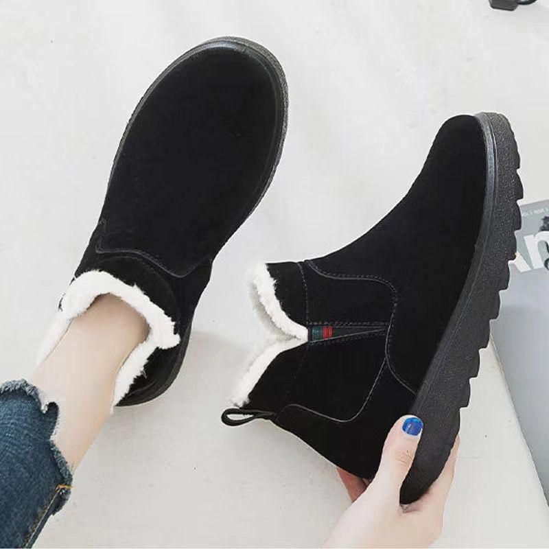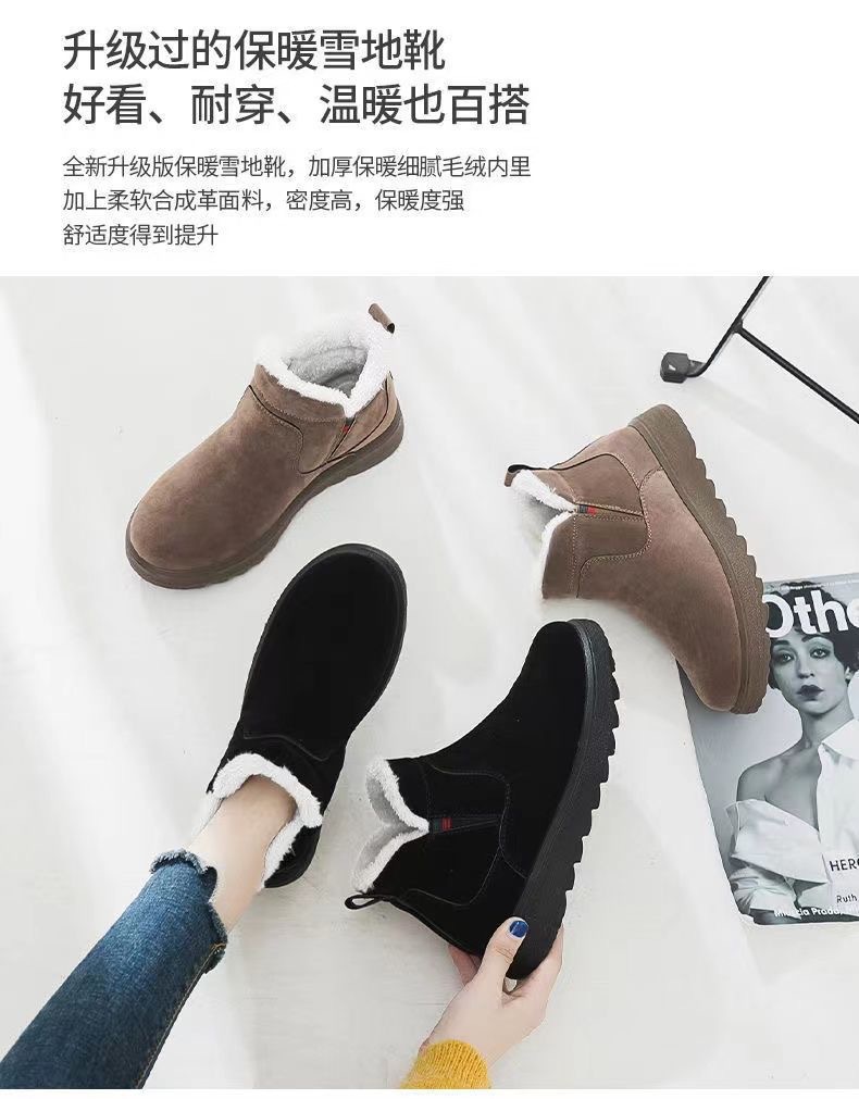 빈티지 스웨이드 쇼트 부츠 두꺼운 따뜻한 스노우 부츠 2024 겨울 새로운 미끄럼 방지 코튼 슈즈 슬립 온 여성용 코튼 부츠스토어 가기