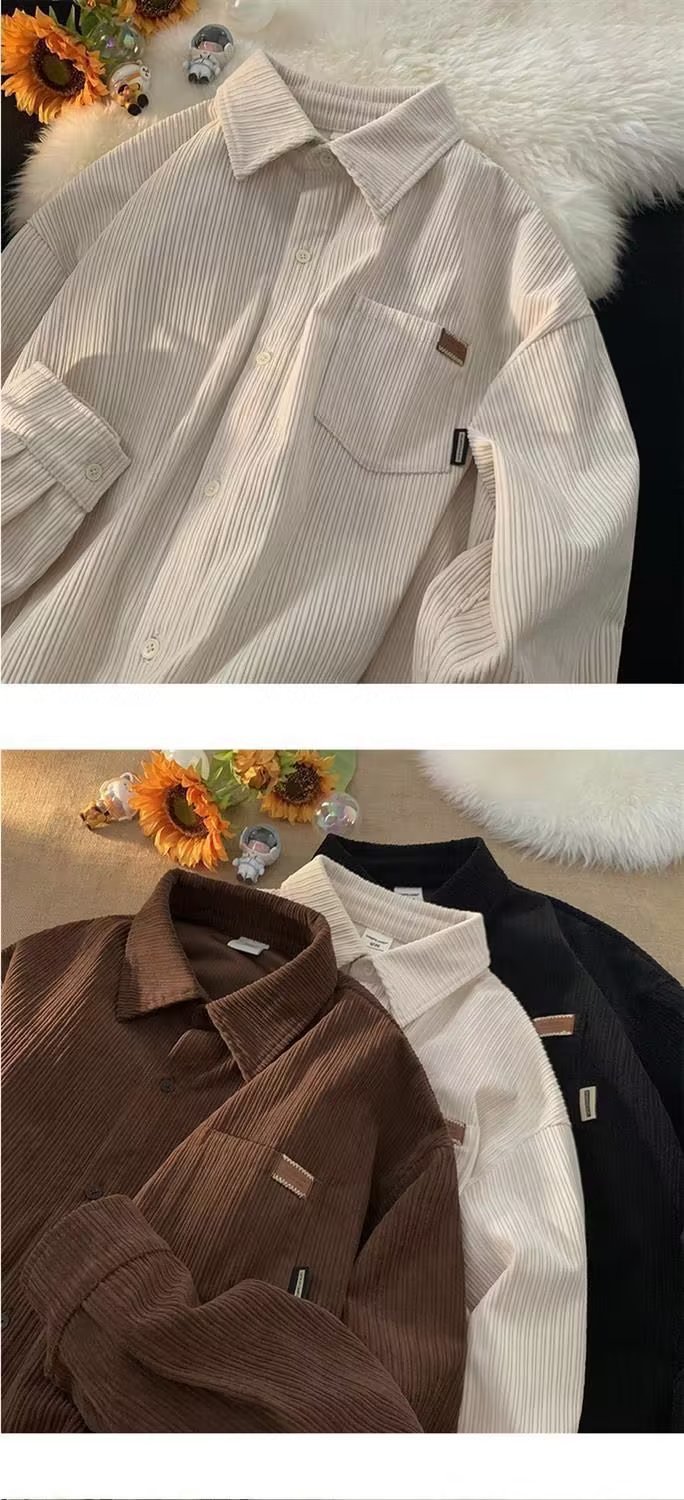 긴 소매 코듀로이 셔츠 남자의 봄과 가을 느슨한 미국 빈티지 Ins 유행 가을 남자 셔츠 코트 남자스토어 가기