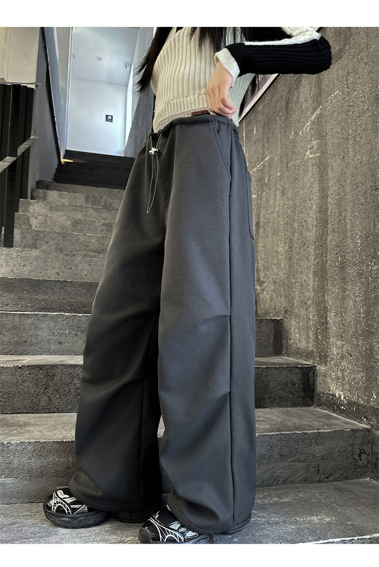 소녀 캐주얼 바지 2024 겨울 새 기모 두껍게 큰 어린이 패션 서양식 트렌디 쿨 조커 와이드 레그 팬츠스토어 가기