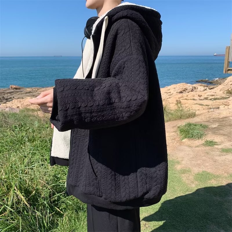 가을과 겨울 새로운 스타일 스웨터 남자 한국 스타일 패셔너블 브랜드 루즈 후드 탑 미국 스타일 하이 스트리트 캐주얼 카디건 스웨터 남성복스토어 가기