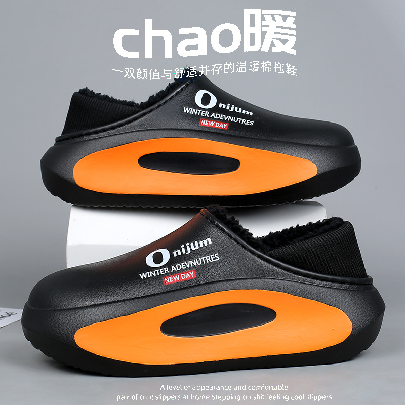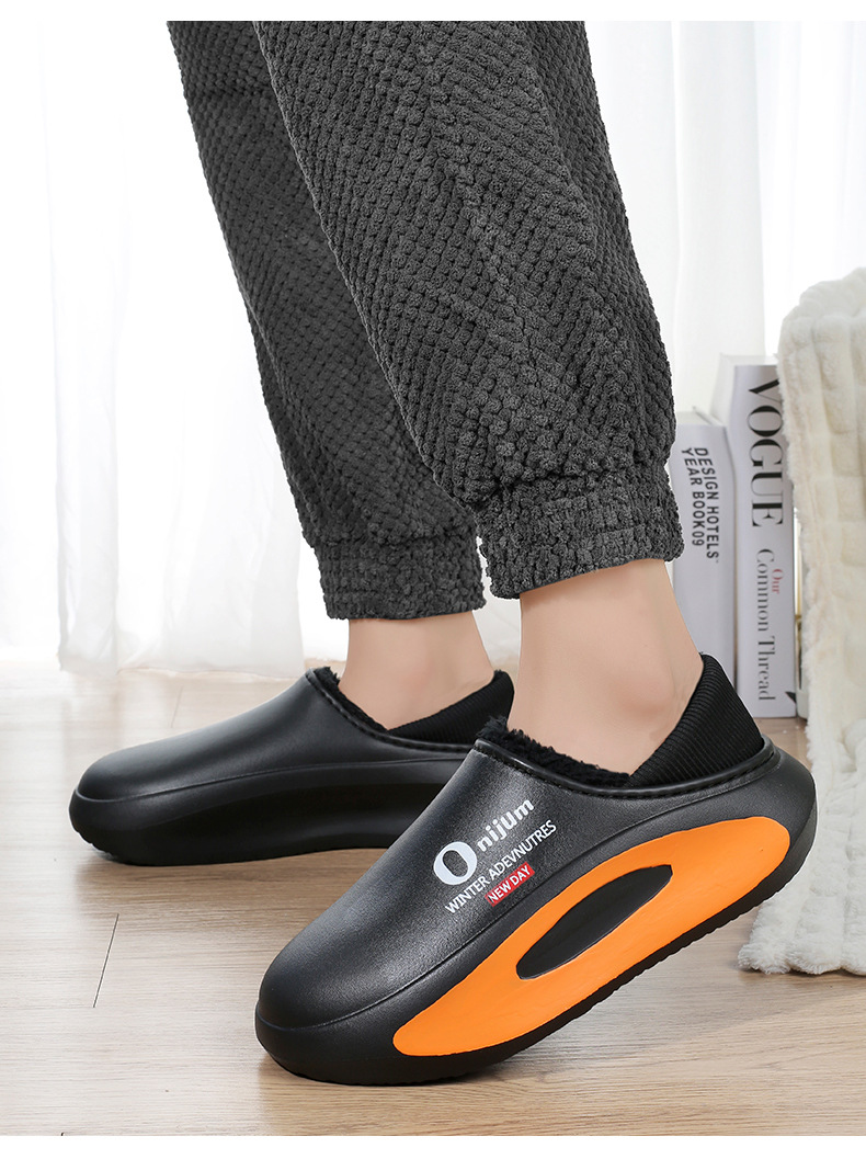 커플의 코튼 슈즈 겨울 새로운 의상 따뜻한 두꺼운 밑창 남성용 신발 기모 냉간 젠장 백 힐 코튼 슬리퍼 여성용 신발